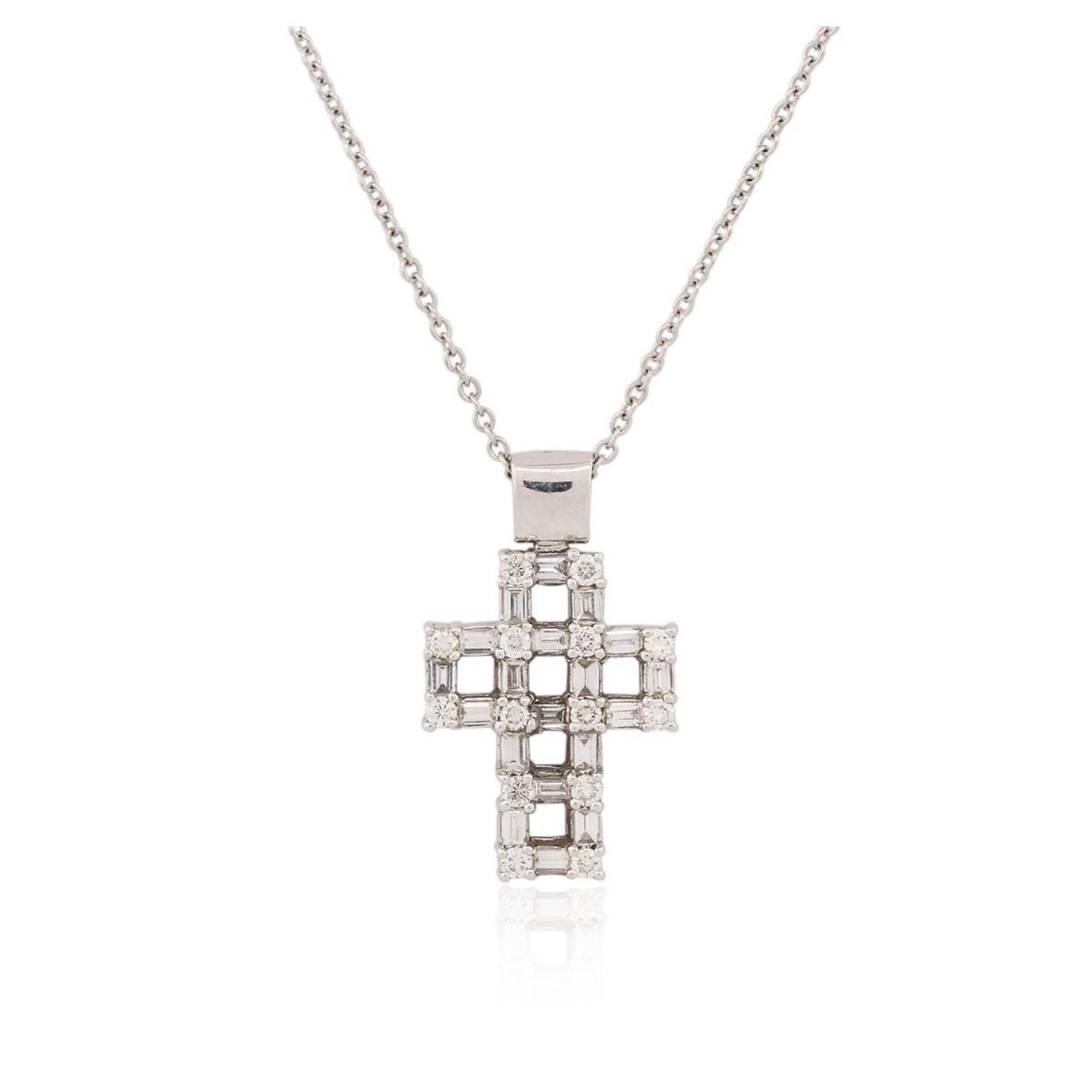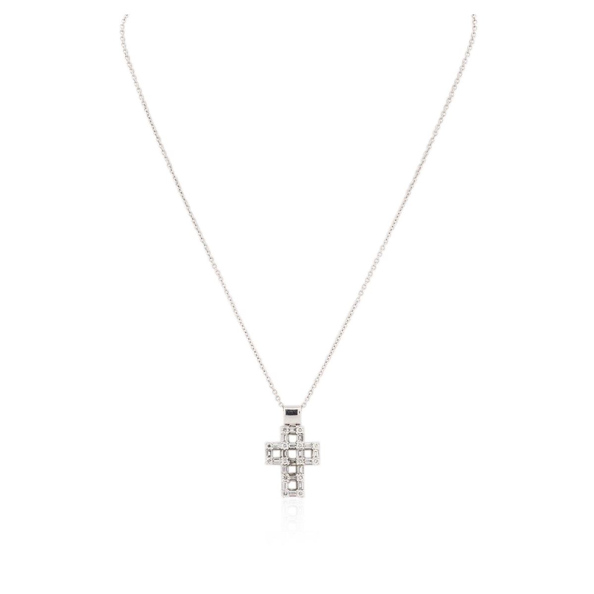 One cross pendant with chain featuring: 14KT white gold weighing 8.10 grams containing diamonds with a total weight of 1.33ct.