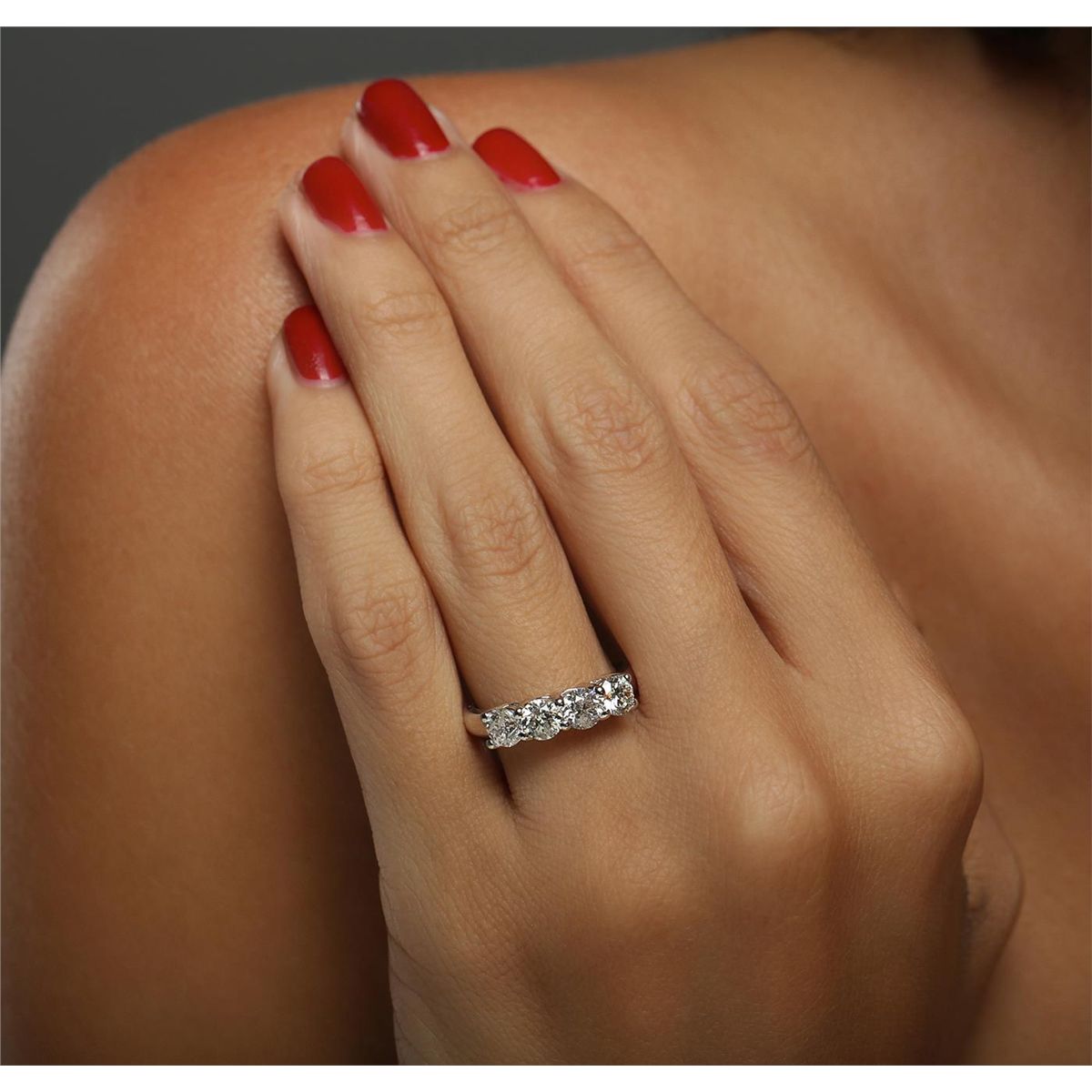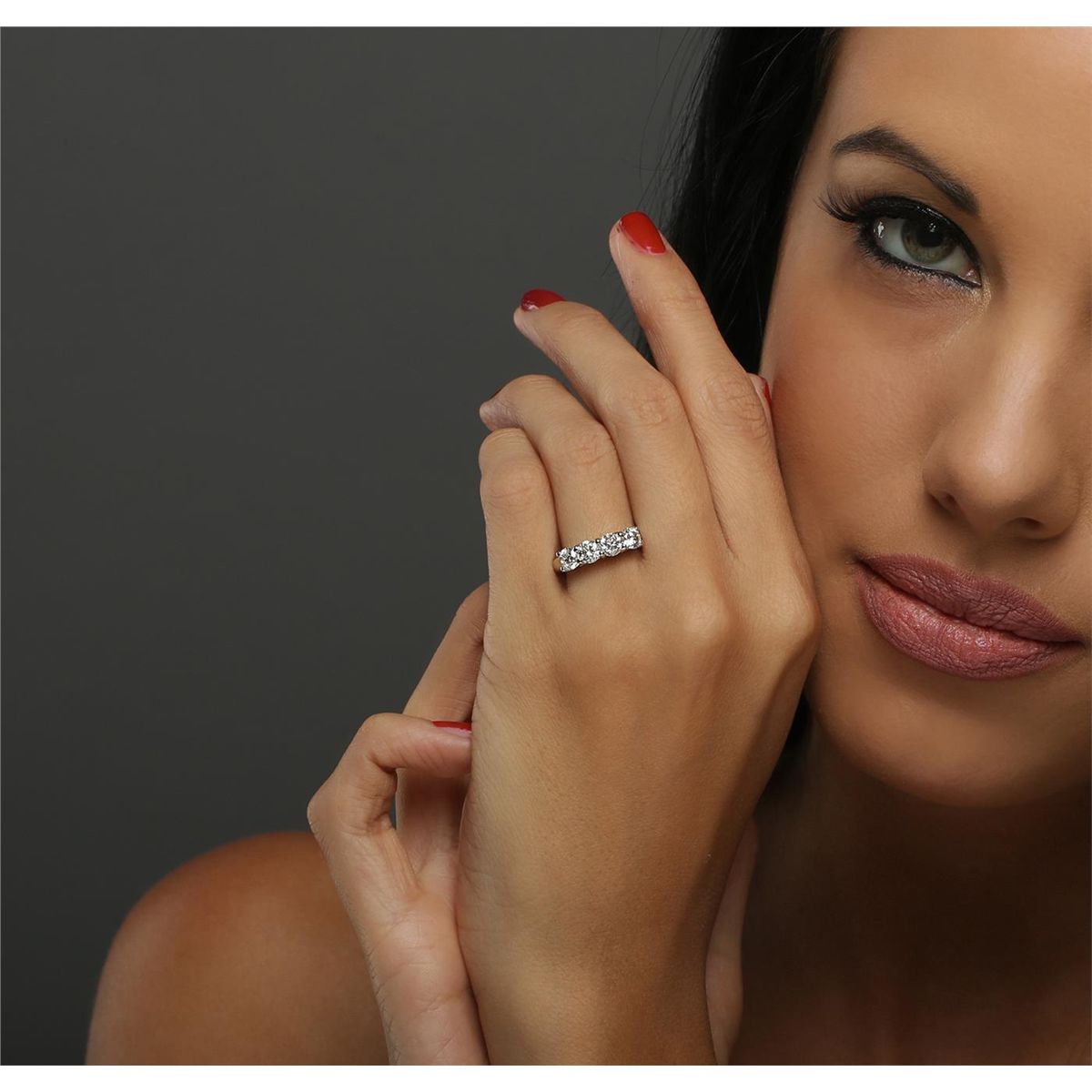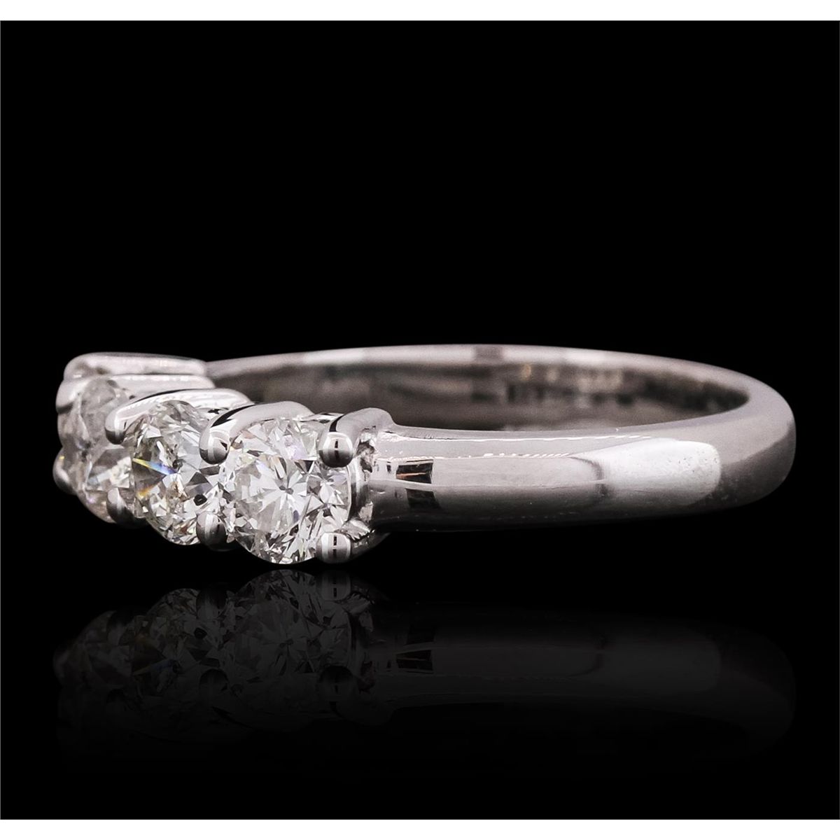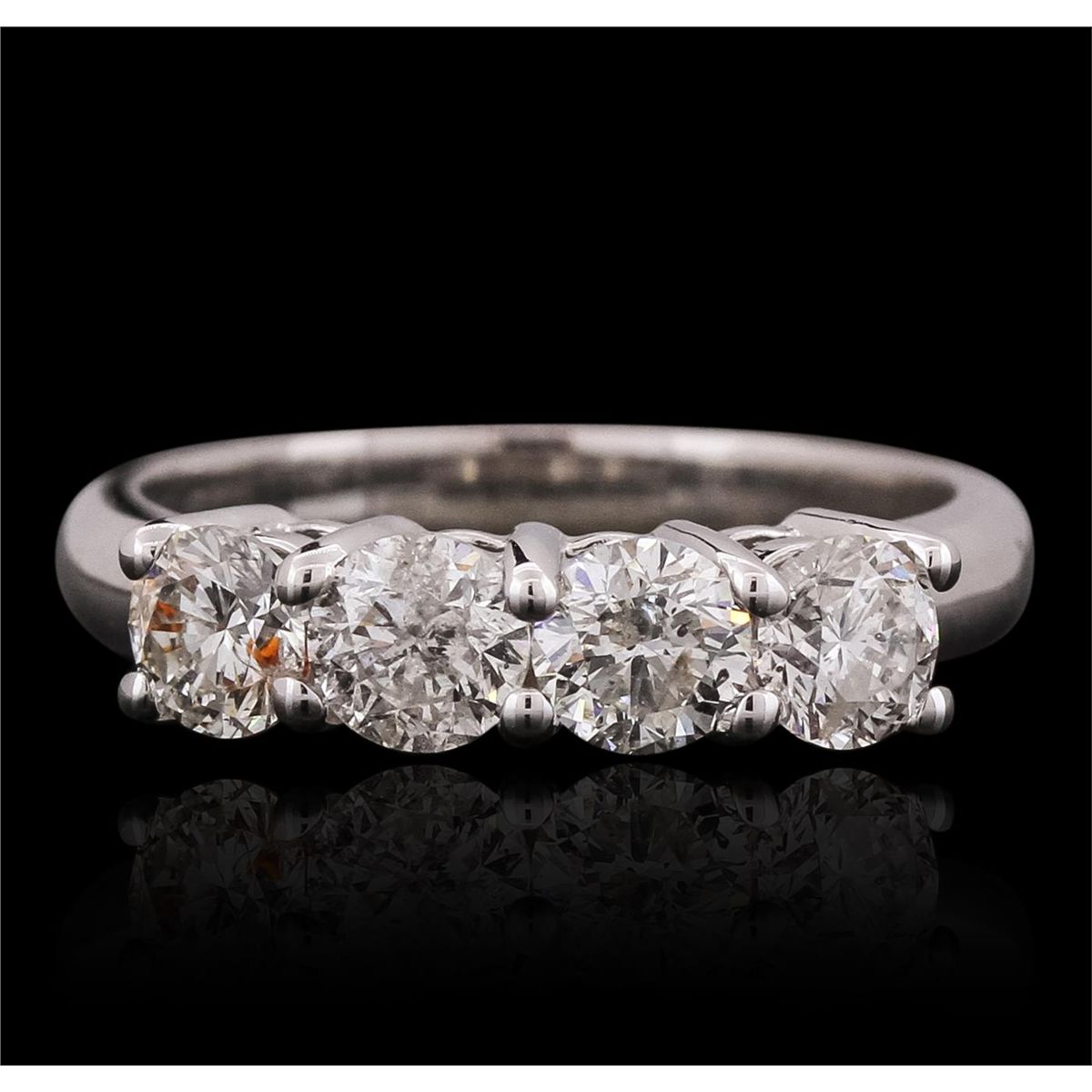 One electronically tested 14KT white gold ladies cast anniversary ring with a bright polish finish. Identified with markings of "14K". Condition is new. Containing: Four prong set round brilliant cut diamonds, measuring 4.50 - 4.50 x 2.70mm (depth est.) approximate total weight of 4 Stones = 1.33ct. Clarity: I-1 to I-2. Color: H - J, Cut is Good. All diamonds are graded in the mounting, unless otherwise stated. Total Weight of Diamonds 1.33ct. Total Weight of Ring 4.30 grams. GGL Appraised at $6,100.00.