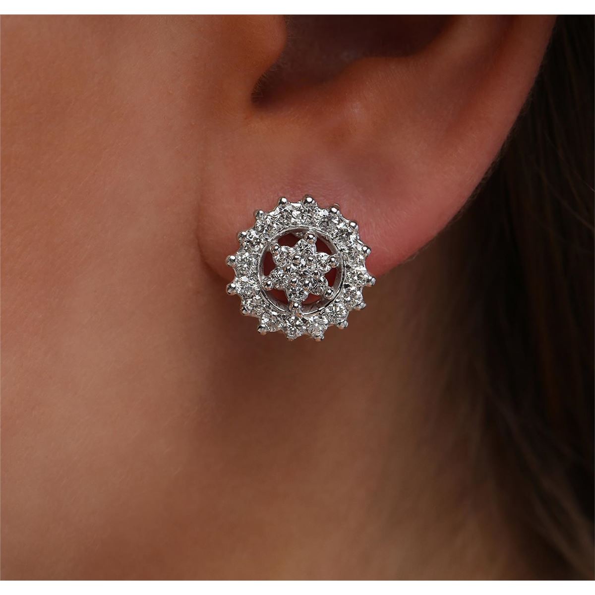 One pair electronically tested 14KT white gold ladies combination cast & assembled diamond earrings with lever backs with a bright polish finish. Identified with markings of "14K". Condition is new. Containing: Forty-Six prong set round brilliant cut diamonds, measuring 2.00 - 2.00 x 1.20mm (depth est.) approximate total weight of 46 Stones = 1.34ct. Clarity: SI-1 to I-1. Color: I - J, Cut is Good. All diamonds are graded in the mounting, unless otherwise stated. Total Weight of Diamonds 1.34ct. Total Weight of Earrings 6.80 grams. GGL Appraised at $4,930.00.