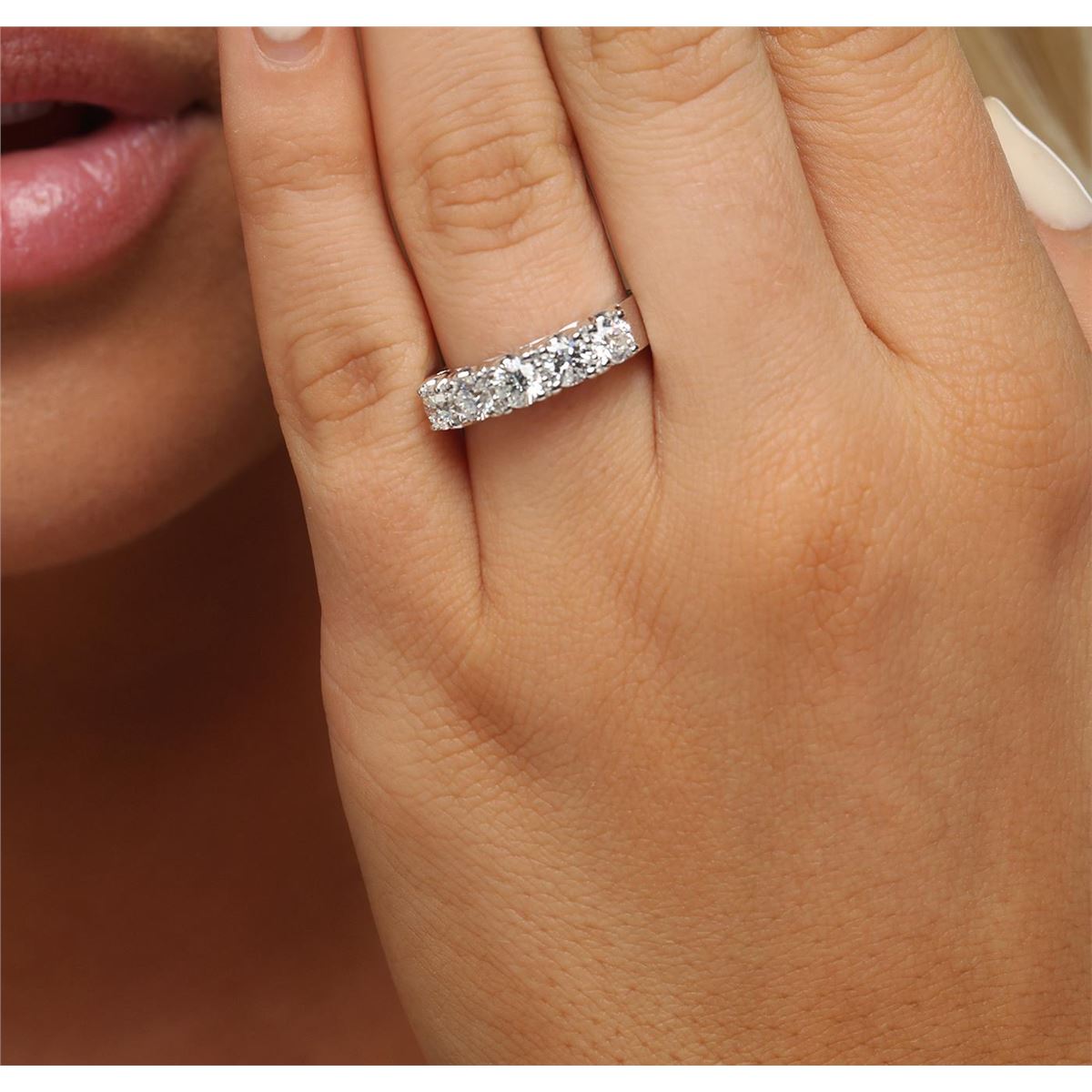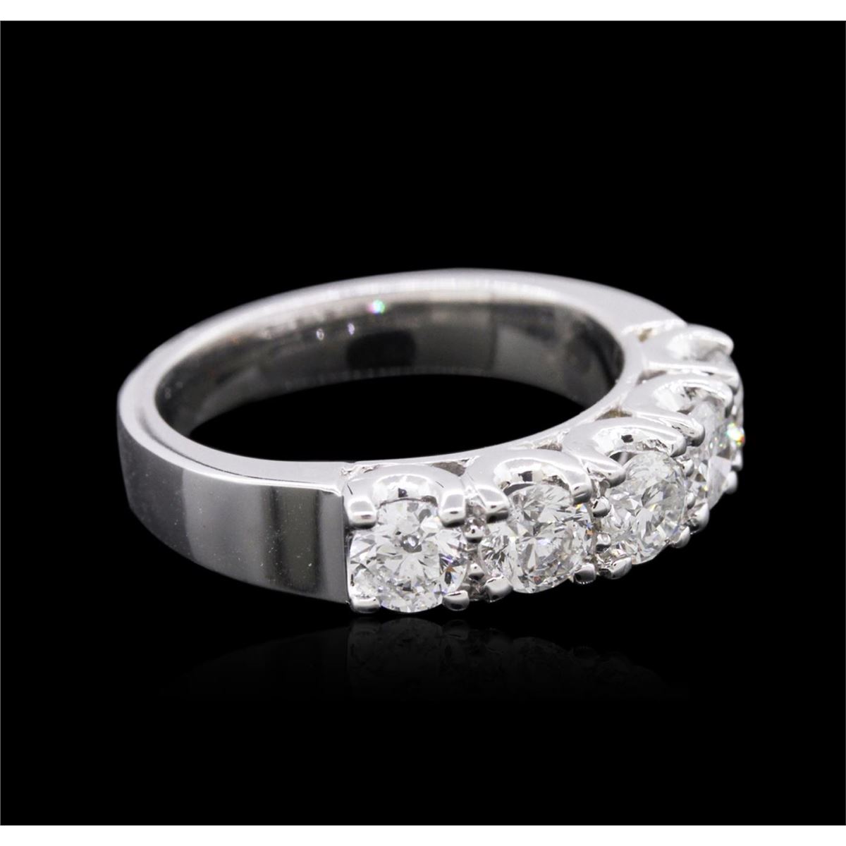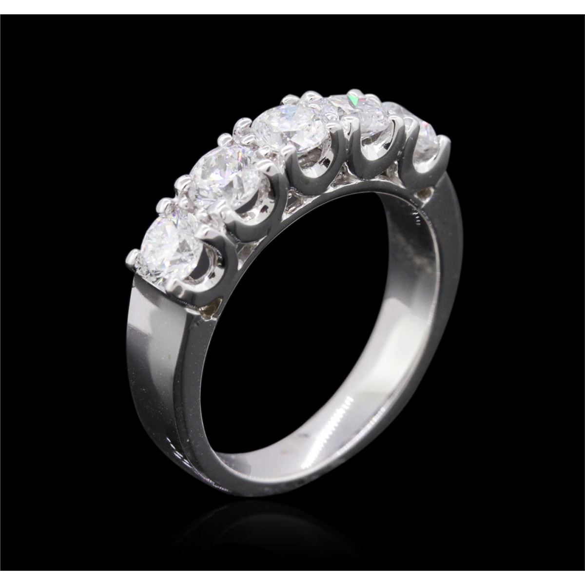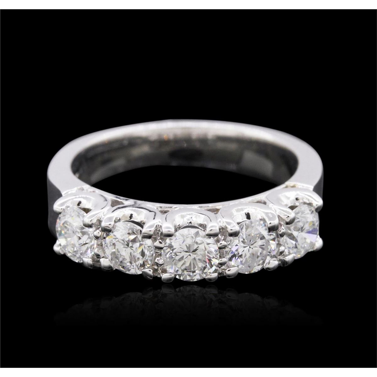 One electronically tested 14KT white gold ladies combination cast & assembled diamond ring with a flat shank with a bright polish finish. Identified with markings of "14K". Condition is new. Containing: Five prong set round brilliant cut diamonds, measuring 4.20 - 4.20 x 2.52mm (depth est.) approximate total weight of 5 Stones = 1.36ct. Clarity: SI-2 to I-1. Color: H - I, Cut is Good. All diamonds are graded in the mounting, unless otherwise stated. Total Weight of Diamonds 1.36ct. Total Weight of Ring 5.90 grams. GGL Appraised at $5,075.00.