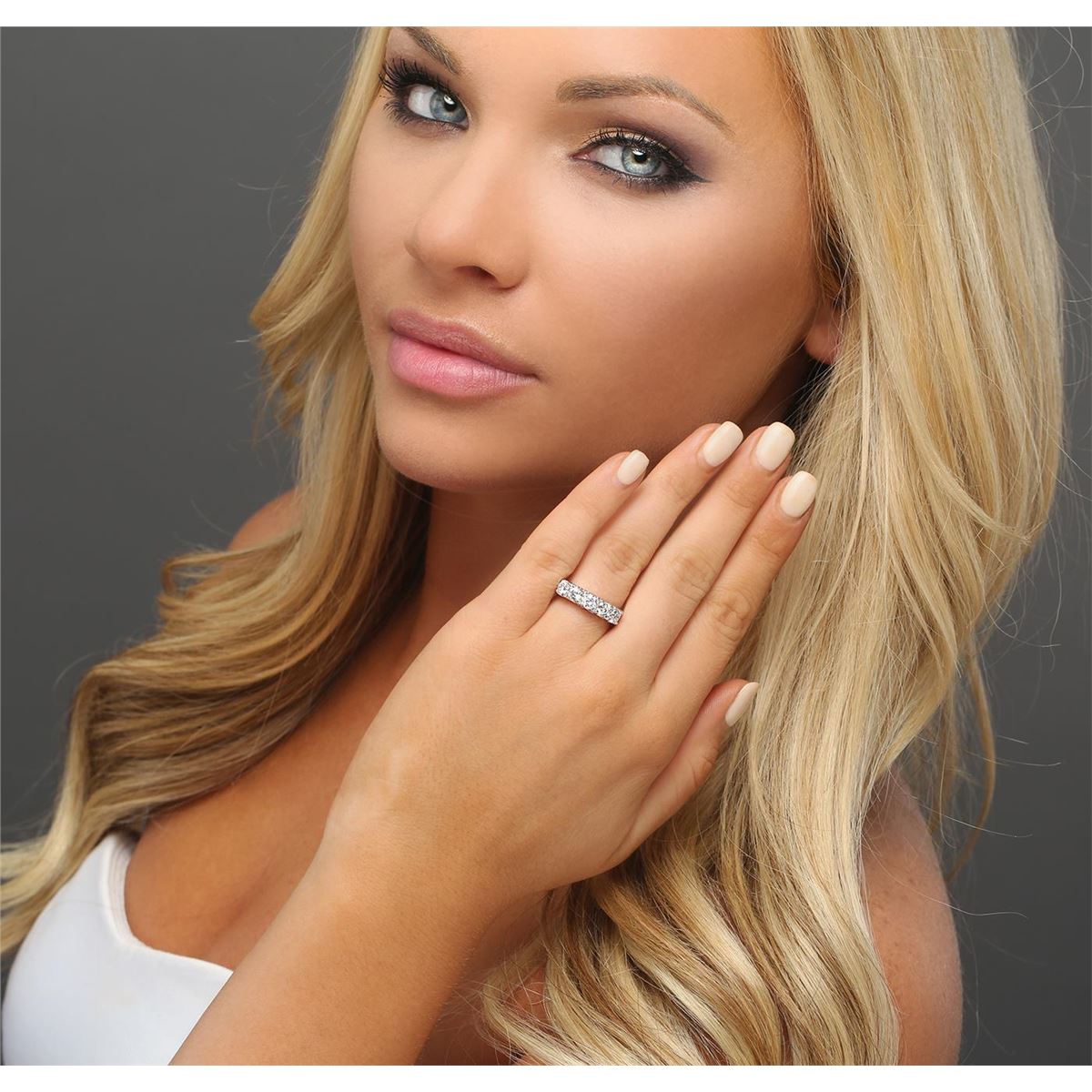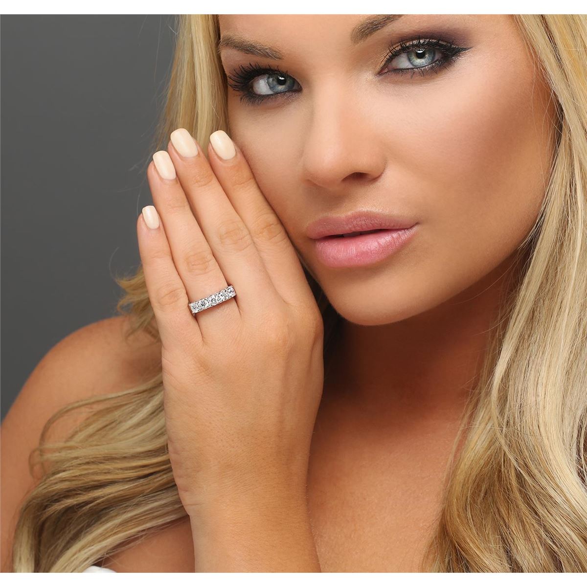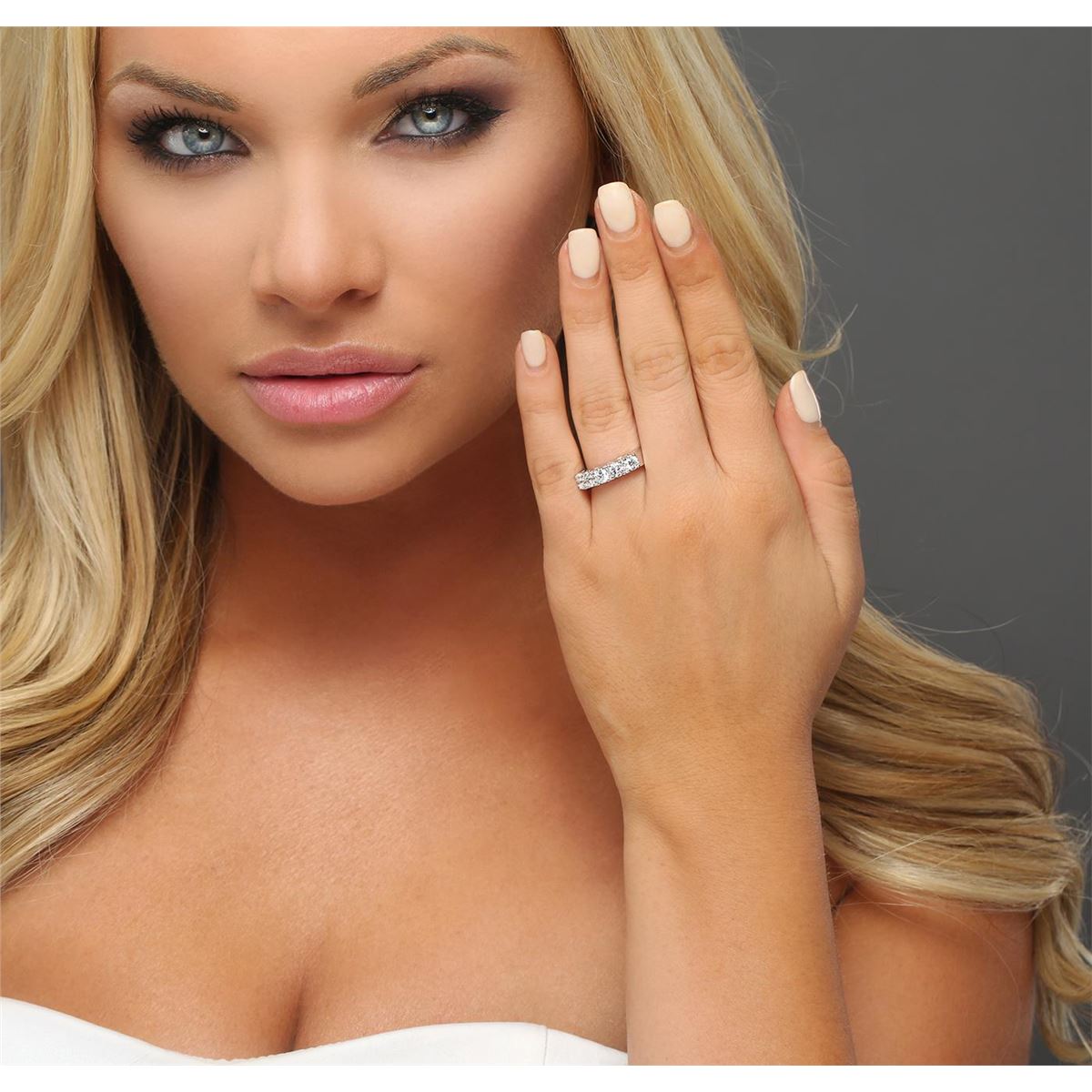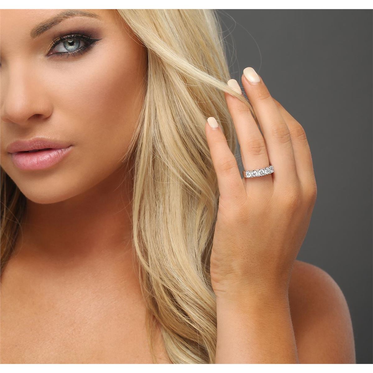 One electronically tested 14KT white gold ladies combination cast & assembled diamond ring with a flat shank with a bright polish finish. Identified with markings of "14K". Condition is new. Containing: Five prong set round brilliant cut diamonds, measuring 4.20 - 4.20 x 2.52mm (depth est.) approximate total weight of 5 Stones = 1.36ct. Clarity: SI-2 to I-1. Color: H - I, Cut is Good. All diamonds are graded in the mounting, unless otherwise stated. Total Weight of Diamonds 1.36ct. Total Weight of Ring 5.90 grams. GGL Appraised at $5,075.00.