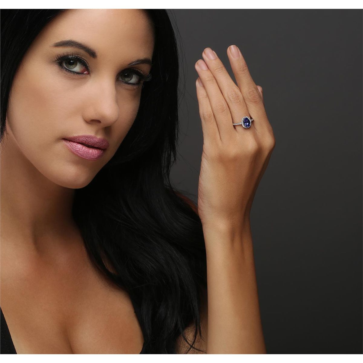 One electronically tested 14KT white gold ladies combination cast & assembled tanzanite and diamond ring with a flat shank with a bright polish finish. Identified with markings of "14K". Condition is new. Containing: One prong set oval modified brilliant cut natural tanzanite, measuring 8.52 x 5.96 x 3.87mm, approximate weight of 1.36ct., clarity is eye clean, type I, medium, moderately strong, bluish violet color, (GIA bV 5/4), cut is good. Forty prong set round brilliant cut diamonds, measuring 1.20 - 1.20 x 0.72mm (depth est.) approximate total weight of 40 Stones = 0.25ct. Clarity: I-1 to I-2. Color: I - J, Cut is Good. Colored gemstones are presumed to have been subjected to commonly used enhancement processes. All diamonds and colored gemstones are graded in the mounting, unless otherwise stated. Total Weight of Colored Stones 1.36ct. Total Weight of Diamonds 0.25ct. Total Weight of Ring 2.80 grams. GGL Appraised at $3,510.00.