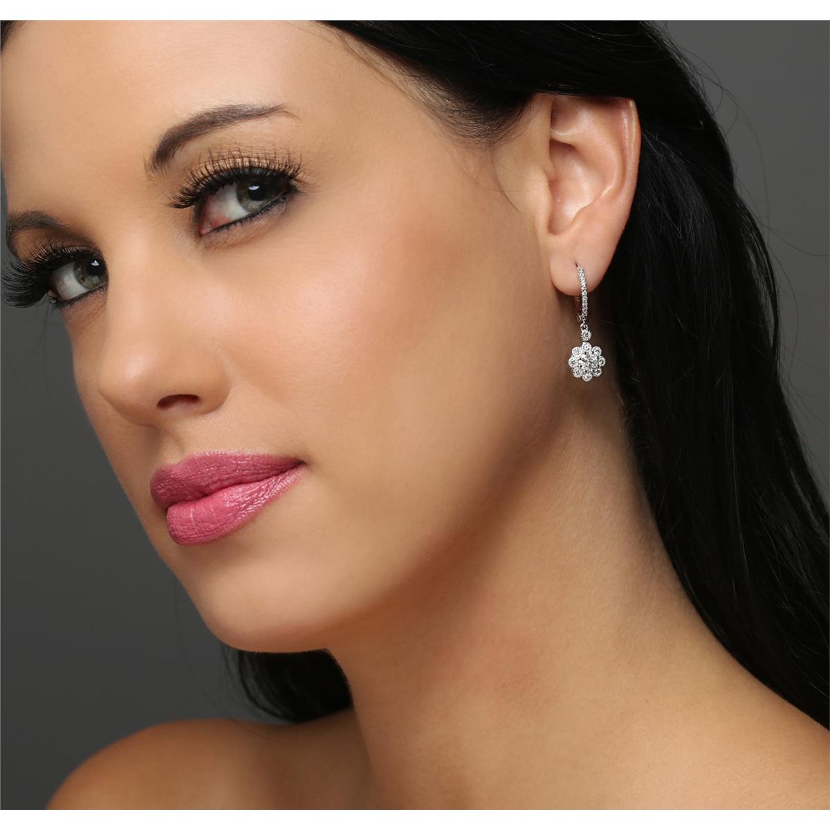 One pair electronically tested 14KT white gold Ladies combination cast & assembled earrings with hinged clip backs with a bright polish finish. Condition is new. Identified with markings of "K14". Containing: Two prong set round brilliant cut diamonds, measuring 5.00 - 5.00 x 3.00mm (depth est.) approximate total weight of 2 Stones = 0.92ct. Clarity: I-1 to I-2. Color: G - H, Cut is Good. Thirty-Six gypsy set round brilliant cut diamonds, measuring 1.50 - 1.50 x 0.90mm (depth est.) approximate total weight of 36 Stones = 0.44ct. Clarity: SI-1 to SI-2. Color: H - I, Cut is Good. All diamonds are graded in the mounting, unless otherwise stated. Total Weight of Diamonds 1.36ct. Total Weight of Earrings 4.60 grams. GGL Appraised at $6,750.00.