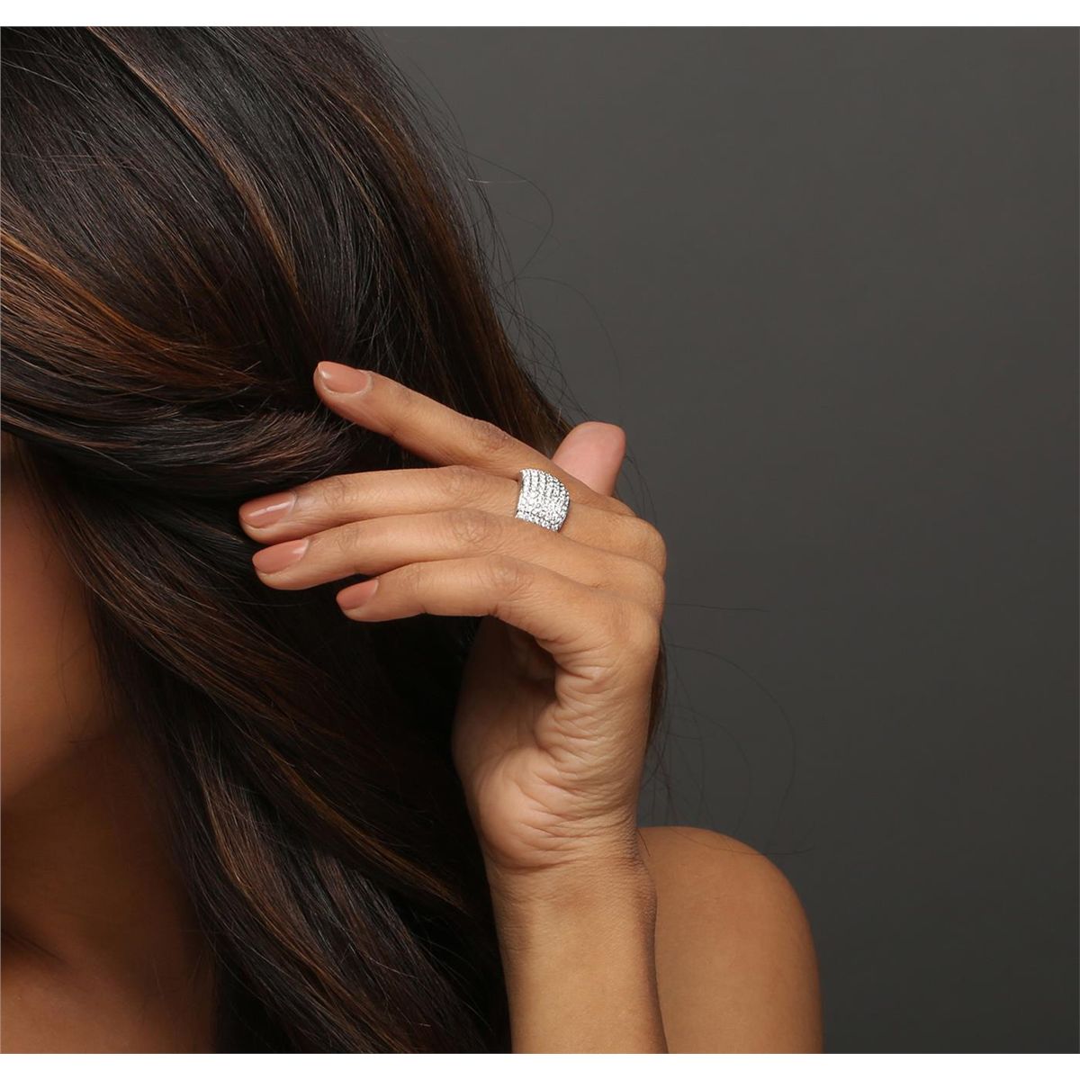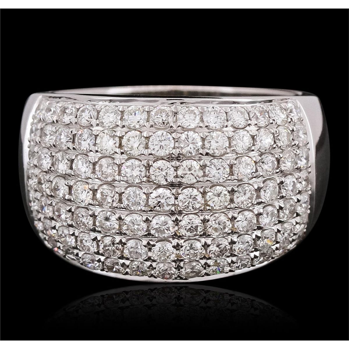 One electronically tested 14KT white gold ladies cast ring with a bright polish finish. Identified with markings of "14K". Condition is new. Containing: Ninety-One prong set round brilliant cut diamonds, measuring 1.60 - 1.60 x 0.96mm (depth est.) approximate total weight of 91 Stones = 1.36ct. Clarity: SI-1 to SI-2. Color: I - J, Cut is Good. All diamonds are graded in the mounting, unless otherwise stated. Total Weight of Diamonds 1.36ct. Total Weight of Ring 7.50 grams. GGL Appraised at $6,400.00.