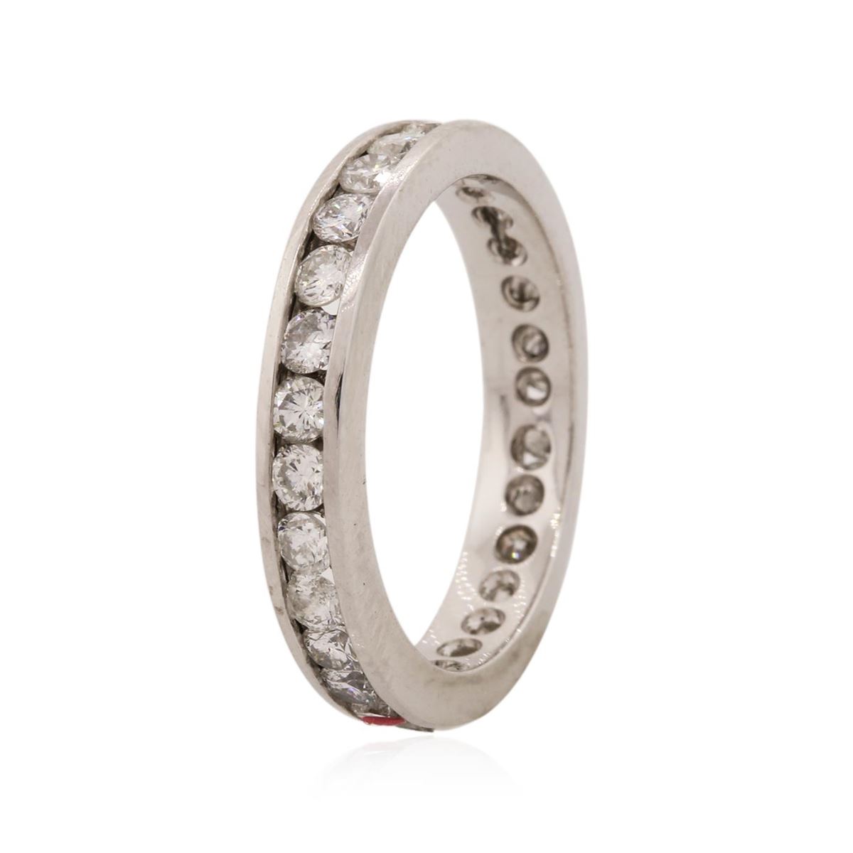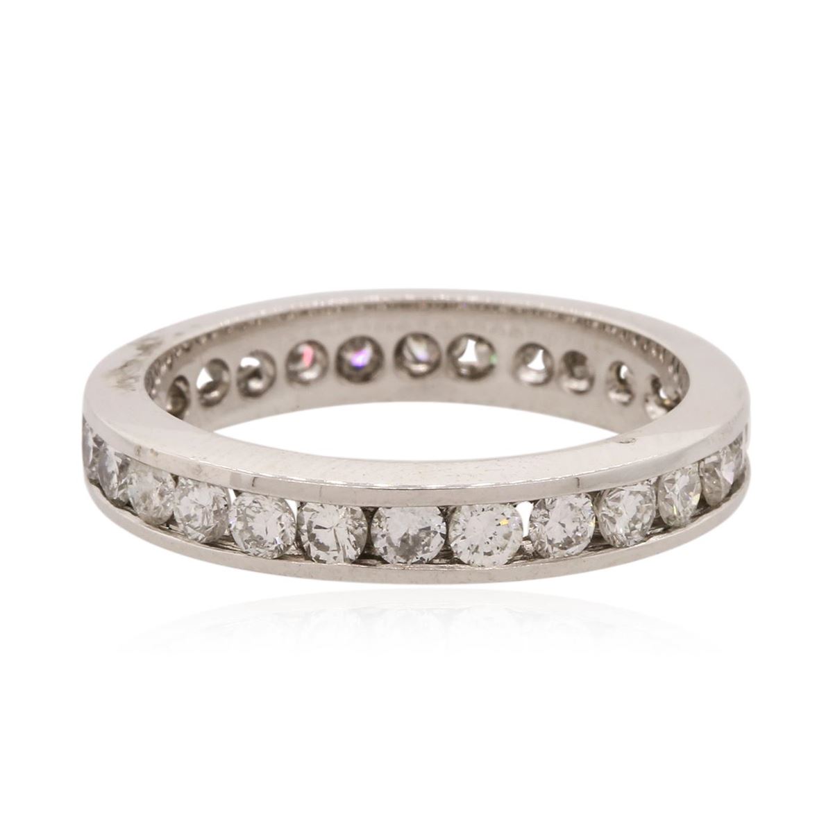 One electronically tested 14KT white gold Ladies combination cast & assembled wedding band with a bright polish finish. Condition is very good. Containing: Twenty-Seven channel set round brilliant cut diamonds, measuring 2.40 - 2.40 x 1.44mm (depth est.) approximate. Total Weight of 27 Stones = 1.37ct. Clarity: SI-1 to SI-2. Color: I - J, Cut is Very Good. All diamonds are graded in the mounting, unless otherwise stated. Total Weight of Diamonds 1.37ct. Total Weight of Wedding Band 3.90 grams.. GGL Appraised at $4,990.00.