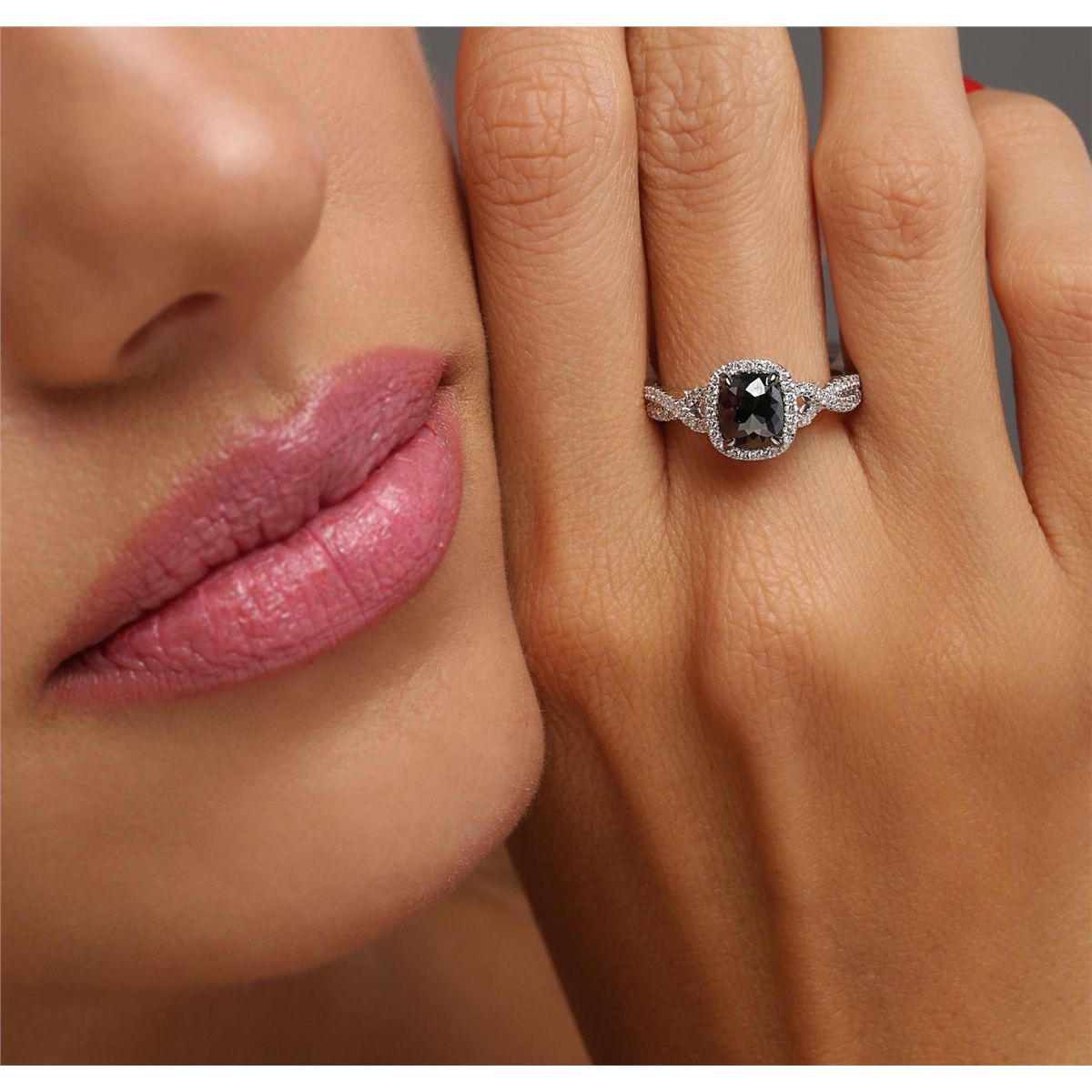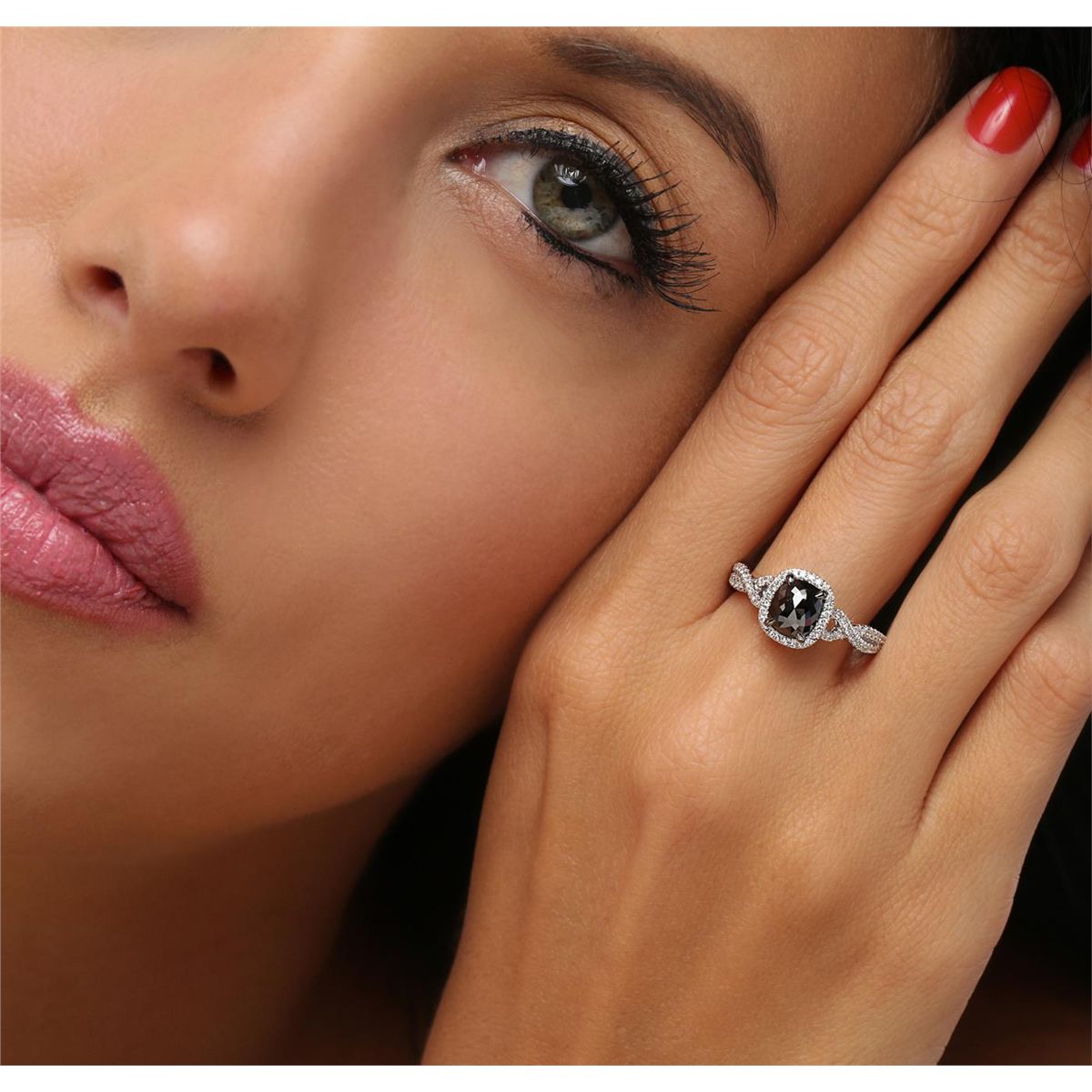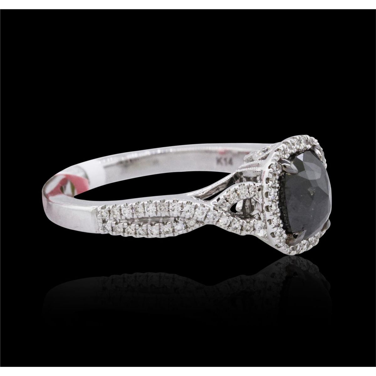 One 14KT white gold ring containing one natural cushion rose cut fancy black diamond, enhanced for color, with a total weight of 1.05ct. The ring also contains side stones graded F-G-H color, SI2-I1 clarity with a total weight of 0.32ct. Total weight of the ring is 4.30 grams. EGL Appraised at $2,630.00.
