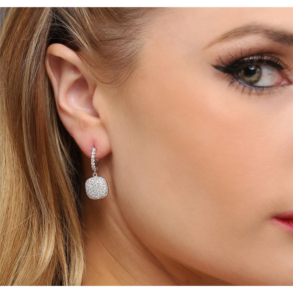 One pair electronically tested 14KT white gold ladies combination cast & assembled diamond earrings with hinged clip backs with a bright polish finish. Identified with markings of "K14". Condition is new. Containing: One Hundred Twelve prong set round brilliant cut diamonds, measuring 1.50 - 1.50 x 0.90mm (depth est.) approximate total weight of 112 Stones = 1.38ct. Clarity: SI-2 to I-1. Color: I - J, Cut is Good. All diamonds are graded in the mounting, unless otherwise stated. Total Weight of Diamonds 1.38ct. Total Weight of Earrings 6.00 grams. GGL Appraised at $5,430.00.