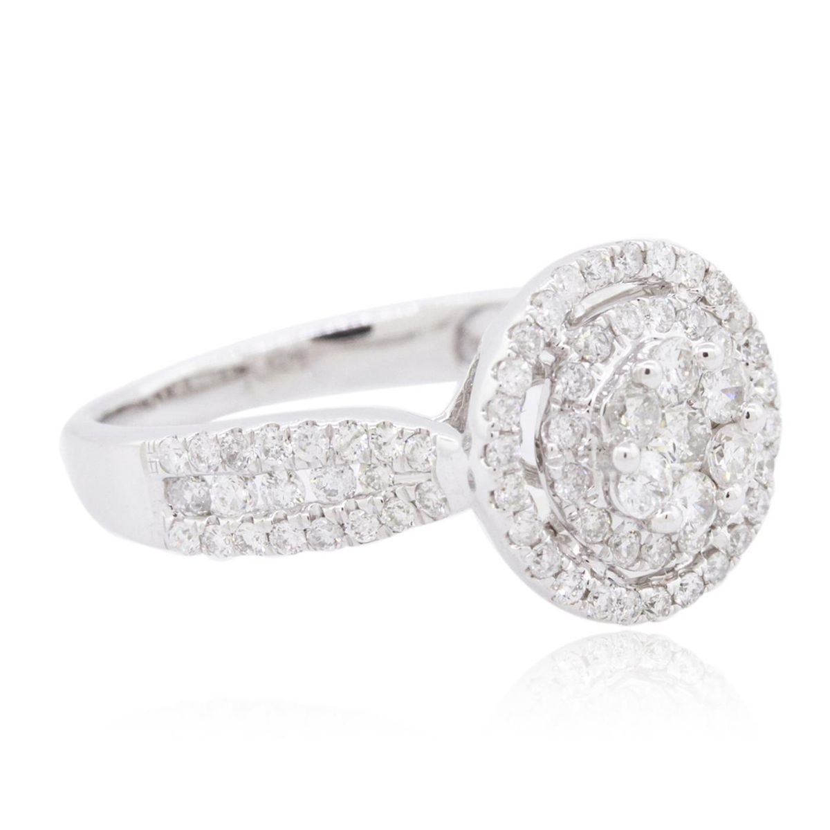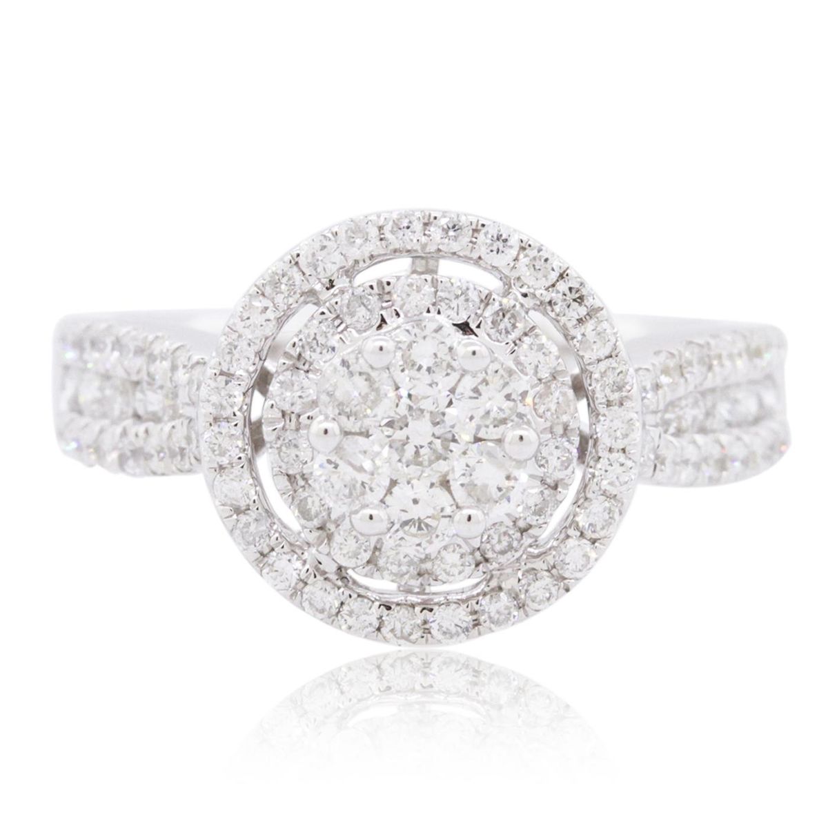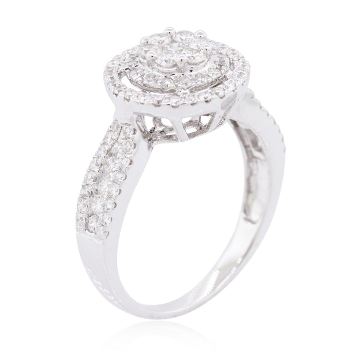 One electronically tested 14KT white gold ladies combination cast & assembled diamond ring with a bright polish finish. Identified with markings of "14K". Condition is new. Containing: Eighty-Five prong set round brilliant cut diamonds, measuring 2.00 - 1.30 x 0.99mm (depth est.) approximate total weight of 85 Stones = 1.39ct. Clarity: SI-2 to I-2. Color: I - J, Cut is Good. All diamonds are graded in the mounting, unless otherwise stated. Total Weight of Diamonds 1.39ct. Total Weight of Ring 4.10 grams. GGL Appraised at $4,200.00.