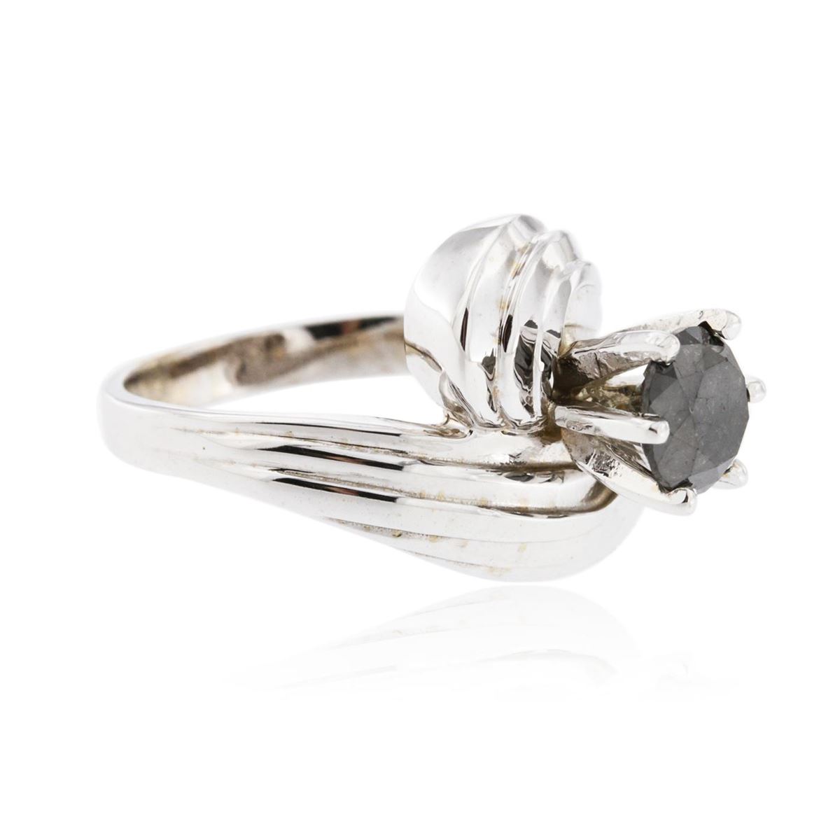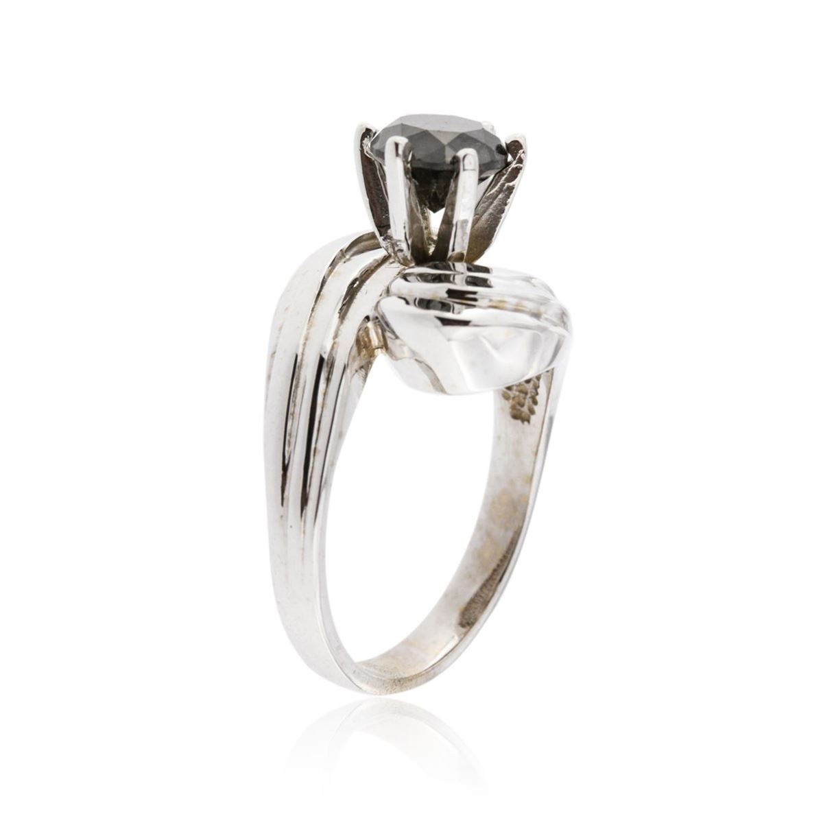 One polished, stamped, and electronically tested solid 14KT White Gold ring mounted with: 1 genuine round brilliant cut diamond, condition is new, workmanship is excellent. Featuring 8.0 grams of 14kt white gold, (1) black diamond with a total weight of 1.44ct. Total weight of diamonds 1.44ctw. AIGL Appraised at $4,100.00.