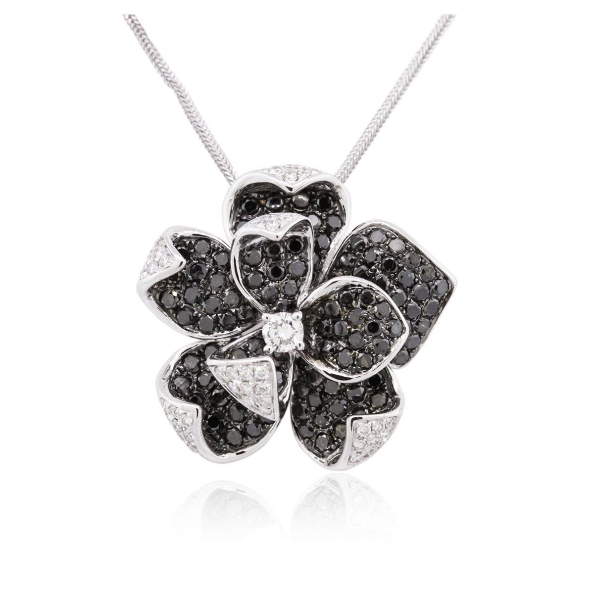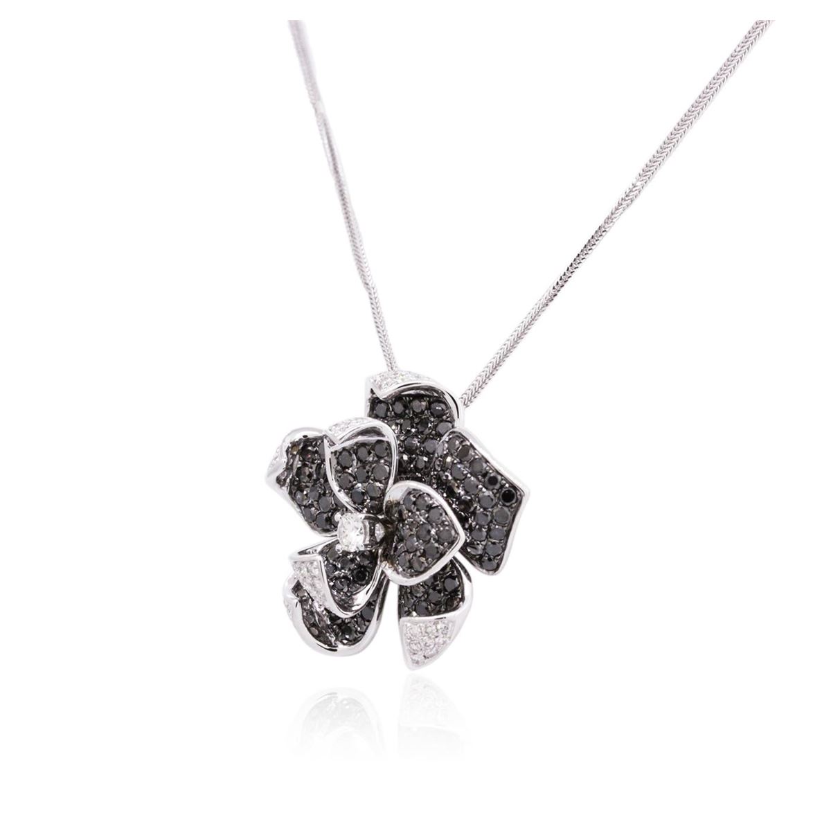 One electronically tested 14KT white gold ladies combination cast & assembled diamond pendant & chain 16.0" long, fancy link with a spring ring clasp with a bright polish finish. Identified with markings of "14K". Condition is new. Containing: One prong set round brilliant cut diamond, measuring 3.00. - 3.00. x 1.80mm (depth est.) approximate weight of 0.10ct. Clarity: SI-2. Color: J, Cut is Good. Forty-Four prong set round brilliant cut diamonds, measuring 1.30 - 1.30 x 0.78mm (depth est.) approximate total weight of 44 Stones = 0.35ct. Clarity: SI-1 to SI-2. Color: I - J, Cut is Good. One Hundred Twenty-Three prong set round brilliant cut diamonds, measuring 1.30 - 1.30 x 0.78mm (depth est.) approximate total weight of 123 Stones = 0.98ct. Cut is Good. All diamonds are graded in the mounting, unless otherwise stated. Total Weight of Diamonds 1.44ct. Total Weight of Pendant & Chain 9.10 grams. GGL Appraised at $4,945.00.