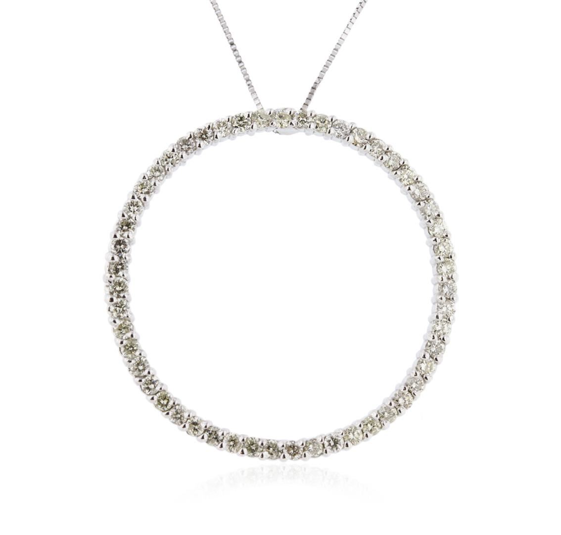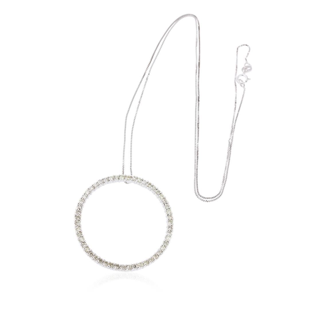 One pendant with chain featuring: 14KT white gold weighing 6.90 grams containing prong set round diamonds with a total weight of 1.45ct.