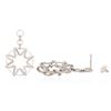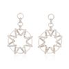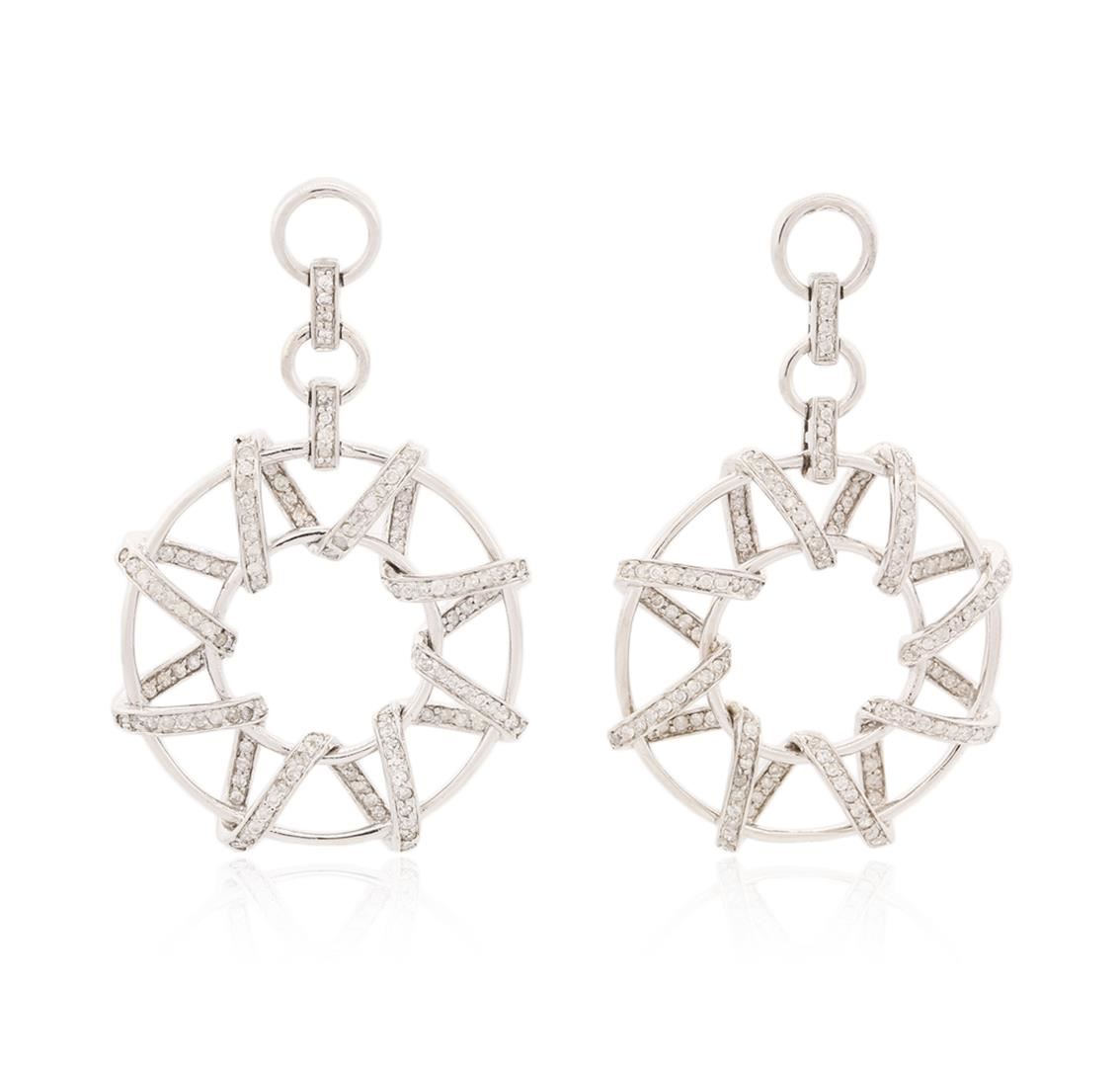 One pair electronically tested 14KT white gold ladies cast & assembled diamond dangle earrings with standard backs. Each earring features a dangle consisting of two white gold circles with intertwining diamond ribbons. Bright polish finish. Condition is new, good workmanship. Containing: Two Hundred Fifty-Four bead set round brilliant and single cut cut diamonds, measuring 1.20 x 1.10 x 0.69mm (depth est.) approximate total weight of 254 Stones = 1.49ct. Graded in the setting. Clarity: I-2 to I-3. Color: H - J. Total Weight of Diamonds 1.49ct. Total Weight of Earrings 15.47 grams. AIG Appraised at $6,055.00.