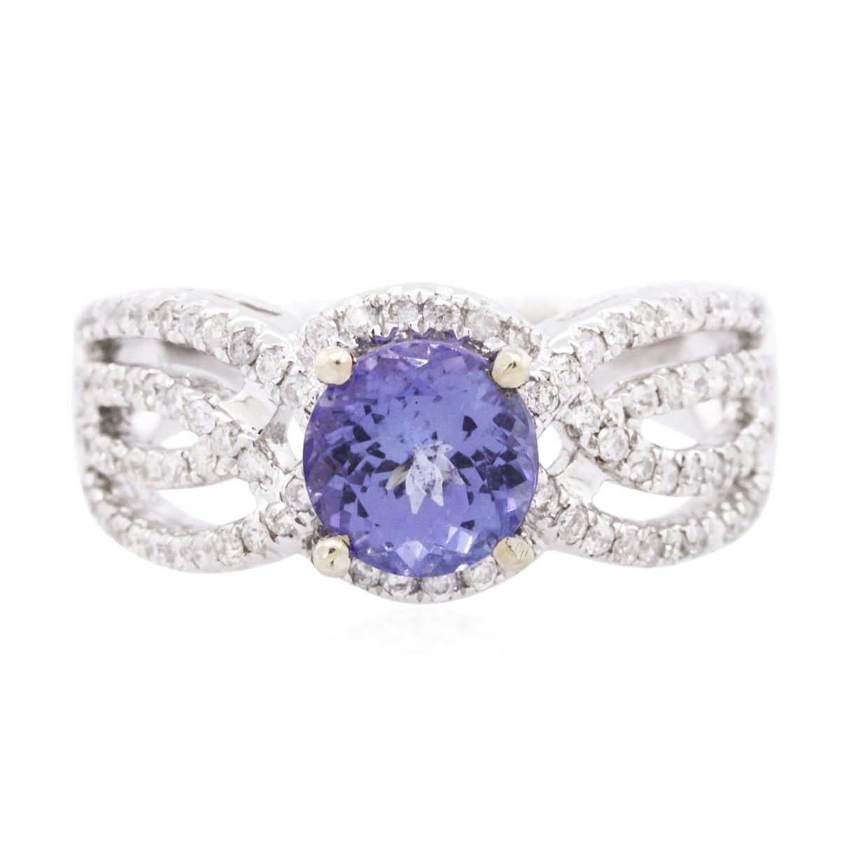 One electronically tested 14KT white gold ladies cast tanzanite & diamond ring with a bright finish. The featured tanzanite is set within a diamond bezel, transitioning to diamond set ribbon shoulders, completed by a three millimeter wide band. Trademark is Orianne. Identified with markings of "14K". Condition is good. Containing: One prong set round mixed cut natural tanzanite, measuring 6.80 - 6.80 x 4.65 mm, 4% bulge factor, approximate weight of 1.50ct., clarity is eye clean, type I, medium dark, slightly grayish, bluish violet color, (GIA bV 6/2), cut is good. Transmitting light with no distortion, transparent. Graded in the setting. Tanzanite is a very rare gemstone that is only found in the country of Tanzania. Tanzanite was originally discovered in 1967. Tiffany & Company, named the stone "Tanzanite" after the country of origin. Tanzanite is found in the Usumburu Mountains that border the Umba Valley of northern Tanzania. This region is inhabited by the Masai tribes-people. The mining area is located just south of the Kenya border near Mt. Kilimanjaro. Tanzanite occurs in colors of gray, brown, violet, blue, reddish-purple, & green. The gem is interesting because of its exceptional pleochroism. Rotated in different directions a tanzanite will exhibit multiple changes of color. Tanzanite has a low tolerance to ultrasonic cleaning, and should not be cleaned using this method. Ninety-Six prong set round brilliant cut diamonds, measuring 1.00 - 1.00 x 0.60mm (depth est.) approximate total weight of 96 Stones = 0.36ct. Graded in the setting. Clarity: I-1 to I-2. Color: G - I. Total Weight of Colored Stones 1.50ct. Total Weight of Diamonds 0.36ct. Total Weight of Ring 5.87 grams. AIG Appraised at $4,450.00.