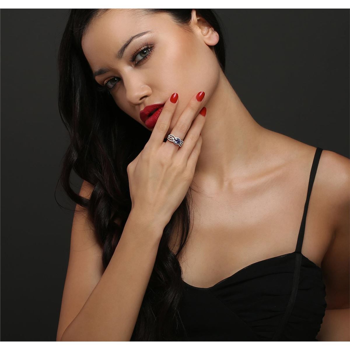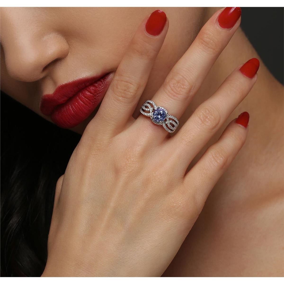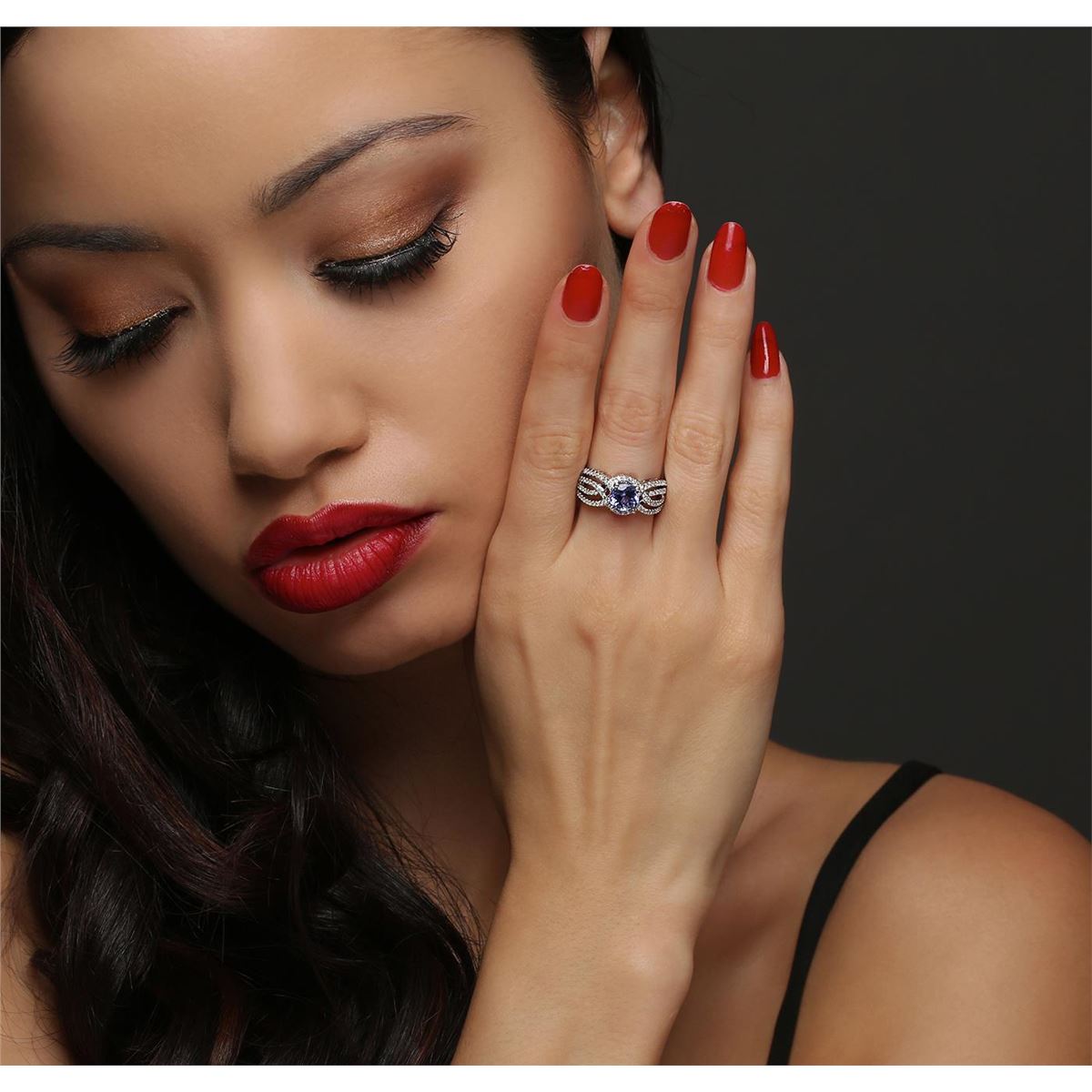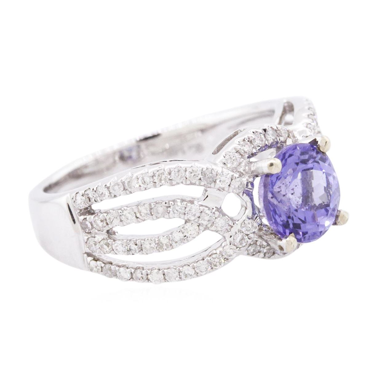 One electronically tested 14KT white gold ladies cast tanzanite & diamond ring with a bright finish. The featured tanzanite is set within a diamond bezel, transitioning to diamond set ribbon shoulders, completed by a three millimeter wide band. Trademark is Orianne. Identified with markings of "14K". Condition is good. Containing: One prong set round mixed cut natural tanzanite, measuring 6.80 - 6.80 x 4.65 mm, 4% bulge factor, approximate weight of 1.50ct., clarity is eye clean, type I, medium dark, slightly grayish, bluish violet color, (GIA bV 6/2), cut is good. Transmitting light with no distortion, transparent. Graded in the setting. Tanzanite is a very rare gemstone that is only found in the country of Tanzania. Tanzanite was originally discovered in 1967. Tiffany & Company, named the stone "Tanzanite" after the country of origin. Tanzanite is found in the Usumburu Mountains that border the Umba Valley of northern Tanzania. This region is inhabited by the Masai tribes-people. The mining area is located just south of the Kenya border near Mt. Kilimanjaro. Tanzanite occurs in colors of gray, brown, violet, blue, reddish-purple, & green. The gem is interesting because of its exceptional pleochroism. Rotated in different directions a tanzanite will exhibit multiple changes of color. Tanzanite has a low tolerance to ultrasonic cleaning, and should not be cleaned using this method. Ninety-Six prong set round brilliant cut diamonds, measuring 1.00 - 1.00 x 0.60mm (depth est.) approximate total weight of 96 Stones = 0.36ct. Graded in the setting. Clarity: I-1 to I-2. Color: G - I. Total Weight of Colored Stones 1.50ct. Total Weight of Diamonds 0.36ct. Total Weight of Ring 5.87 grams. AIG Appraised at $4,450.00.