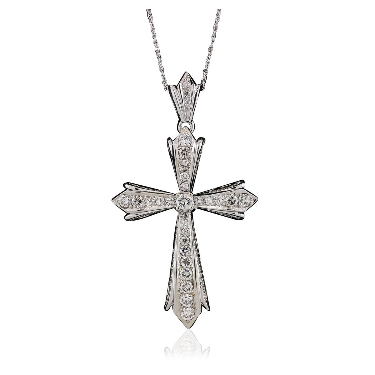 One pendant with chain featuring: 14KT white gold with a total weight of 7.47 grams, diamond with a total weight of 0.10ct, and diamonds with a total weight of 1.40ctw.
