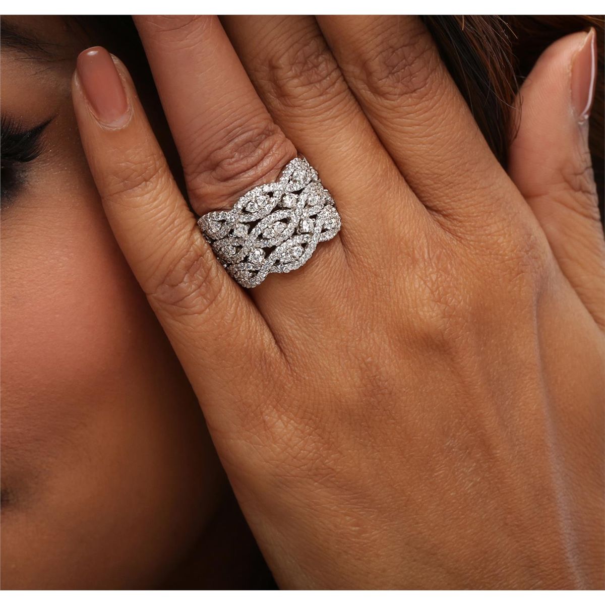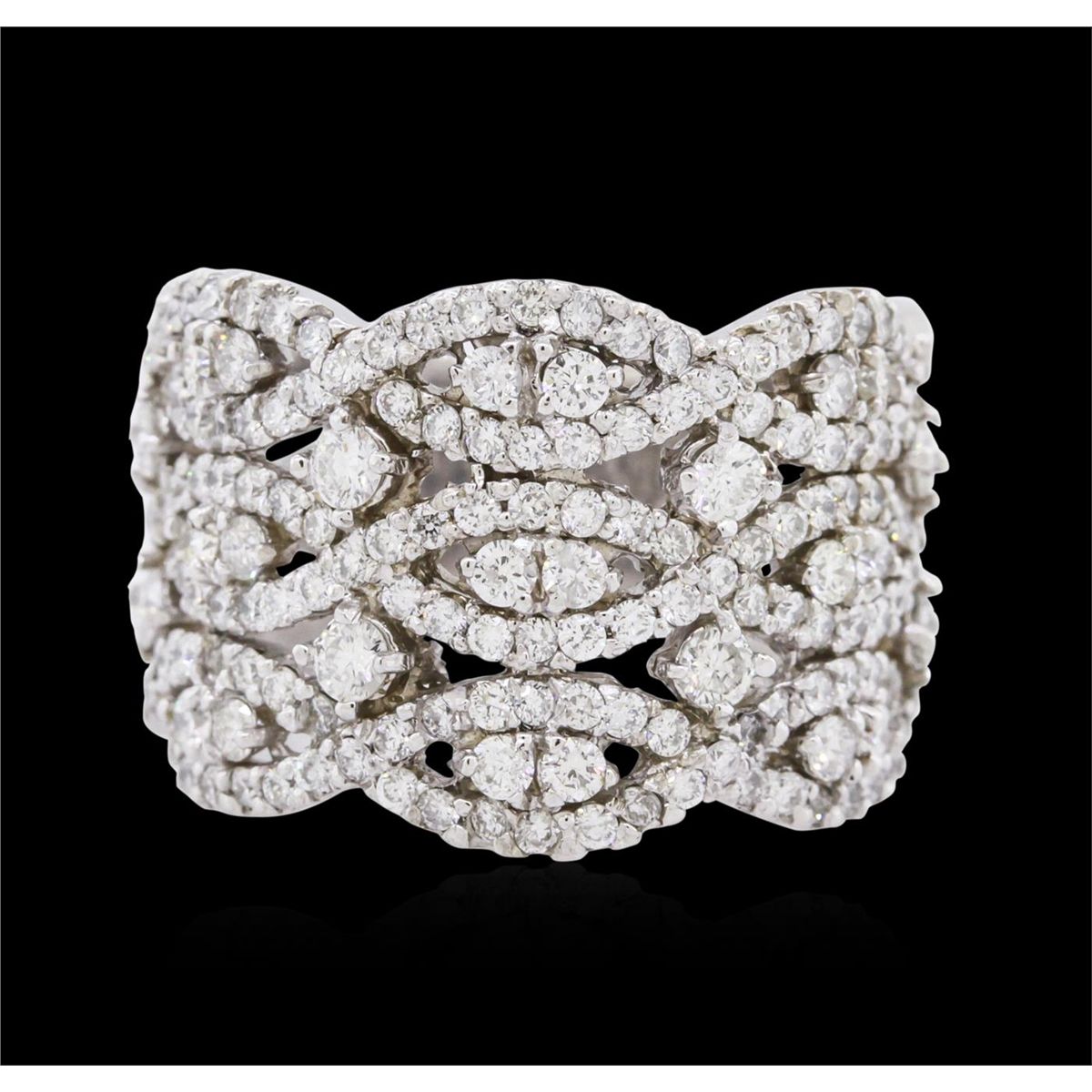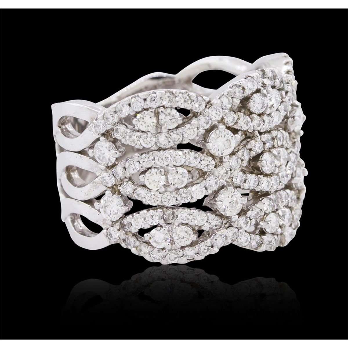 One electronically tested 14KT white gold ladies combination cast & assembled diamond ring with a split shank with a bright polish finish. Identified with markings of 14K. Condition is new. Containing: One Hundred Sixty-Four prong set round brilliant cut diamonds, measuring 2.00 - 1.20 x 0.96mm (depth est.) approximate total weight of 164 Stones = 1.50ct. Clarity: SI-1 to I-1. Color: I - J, Cut is Good. All diamonds are graded in the mounting, unless otherwise stated. Total Weight of Diamonds 1.50ct. Total Weight of Ring 10.30 grams. GGL Appraised at $6,150.00.