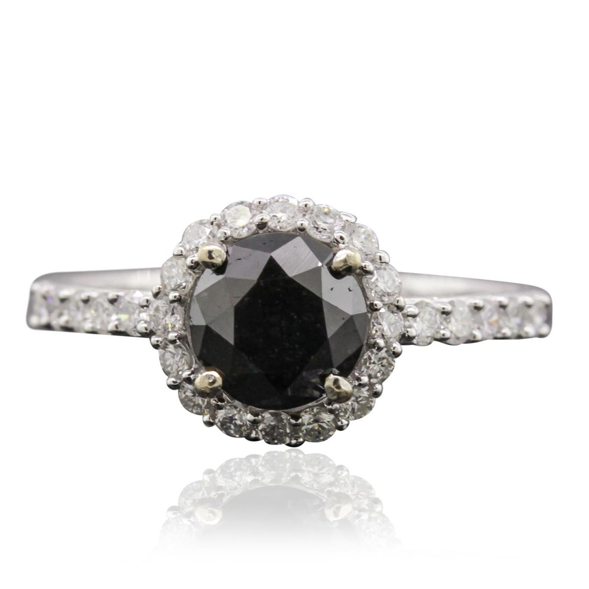 One electronically tested 14KT white gold Ladies combination cast & assembled engagement ring with a bright polish finish. Condition is new. Identified with markings of "14K". Containing: One prong set round brilliant cut diamond, measuring 6.67 - 6.67 x 4.00mm (depth est.) approximate weight of 1.09ct. Cut is Good. Twenty-Six prong set round brilliant cut diamonds, measuring 1.80 - 1.50 x 0.99mm (depth est.) approximate. Total Weight of 26 Stones = 0.43ct. Clarity: SI-2 to I-2. Color: I - J, Cut is Good. All grading of diamonds and colored gemstones in this piece of jewelry are graded in the mounting, unless otherwise stated. Total Weight of Diamonds 1.51ct. Total Weight of Engagement Ring 2.20 grams. GGL Appraised at $3,720.00.
