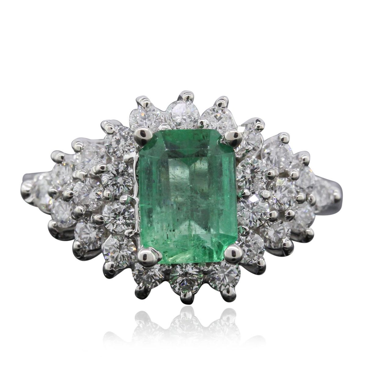 Great Condition! One electronically tested 14KT white gold Ladies combination cast & assembled ring with a bright polish finish. Condition is new. Identified with markings of "14K". Containing: One prong set emerald standard step cut natural emerald, measuring 8.00 x 5.80 x 4.20mm, approximate weight of 1.52ct., clarity is slightly included, type III, medium light, very slightly grayish, very slightly bluish green color, (GIA vslbG 4/3), cut is good. Colored gemstones are presumed to have been subjected to commonly used and possible undetectable color/clarity enhancement processes. Twenty-Six prong set round brilliant cut diamonds, measuring 2.00 - 2.00 x 1.20mm (depth est.) approximate total weight of 26 Stones = 0.89ct. Clarity of I-1 to I-2, Color of H - I, Cut is Good. Total Weight of Colored Stones 1.52ct. Total Weight of Diamonds 0.89ct. Total Weight of Ring 4.90 grams. GGL Appraised at $6,075.00.