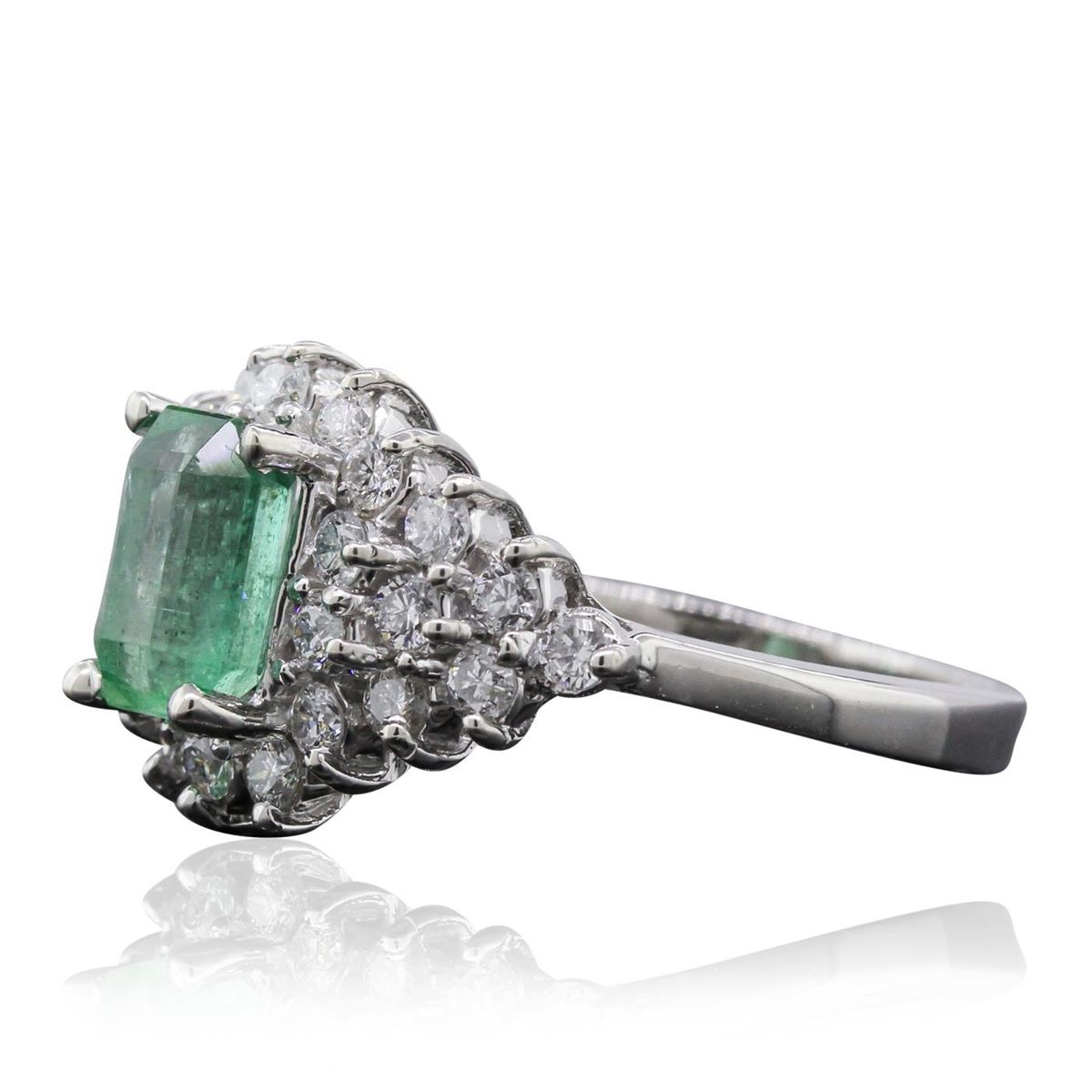 Great Condition! One electronically tested 14KT white gold Ladies combination cast & assembled ring with a bright polish finish. Condition is new. Identified with markings of "14K". Containing: One prong set emerald standard step cut natural emerald, measuring 8.00 x 5.80 x 4.20mm, approximate weight of 1.52ct., clarity is slightly included, type III, medium light, very slightly grayish, very slightly bluish green color, (GIA vslbG 4/3), cut is good. Colored gemstones are presumed to have been subjected to commonly used and possible undetectable color/clarity enhancement processes. Twenty-Six prong set round brilliant cut diamonds, measuring 2.00 - 2.00 x 1.20mm (depth est.) approximate total weight of 26 Stones = 0.89ct. Clarity of I-1 to I-2, Color of H - I, Cut is Good. Total Weight of Colored Stones 1.52ct. Total Weight of Diamonds 0.89ct. Total Weight of Ring 4.90 grams. GGL Appraised at $6,075.00.