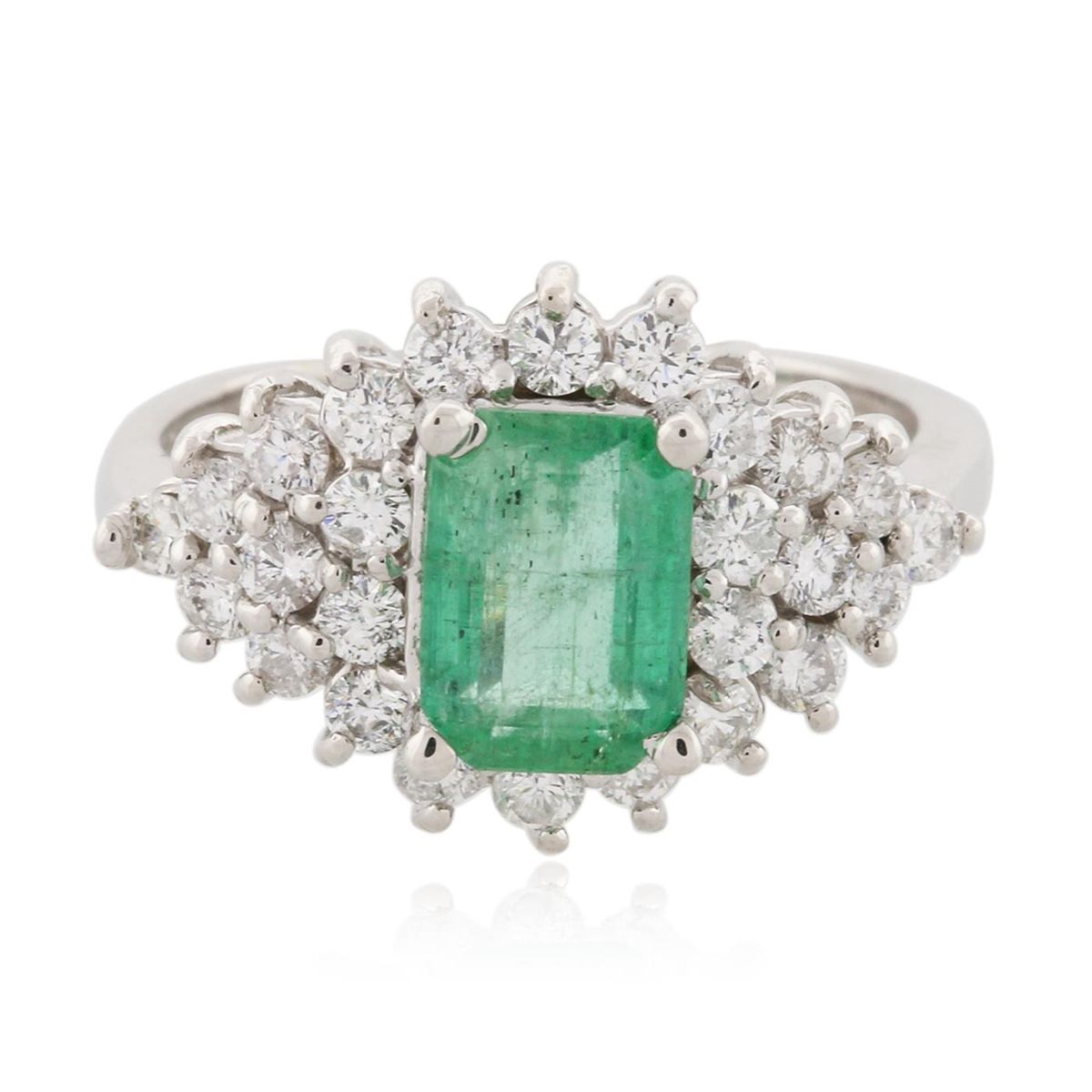 Great Condition! One electronically tested 14KT white gold Ladies combination cast & assembled ring with a bright polish finish. Condition is new. Identified with markings of "14K". Containing: One prong set emerald standard step cut natural emerald, measuring 8.00 x 5.80 x 4.20mm, approximate weight of 1.52ct., clarity is slightly included, type III, medium light, very slightly grayish, very slightly bluish green color, (GIA vslbG 4/3), cut is good. Colored gemstones are presumed to have been subjected to commonly used and possible undetectable color/clarity enhancement processes. Twenty-Six prong set round brilliant cut diamonds, measuring 2.00 - 2.00 x 1.20mm (depth est.) approximate total weight of 26 Stones = 0.89ct. Clarity of I-1 to I-2, Color of H - I, Cut is Good. Total Weight of Colored Stones 1.52ct. Total Weight of Diamonds 0.89ct. Total Weight of Ring 4.90 grams. GGL Appraised at $6,075.00.