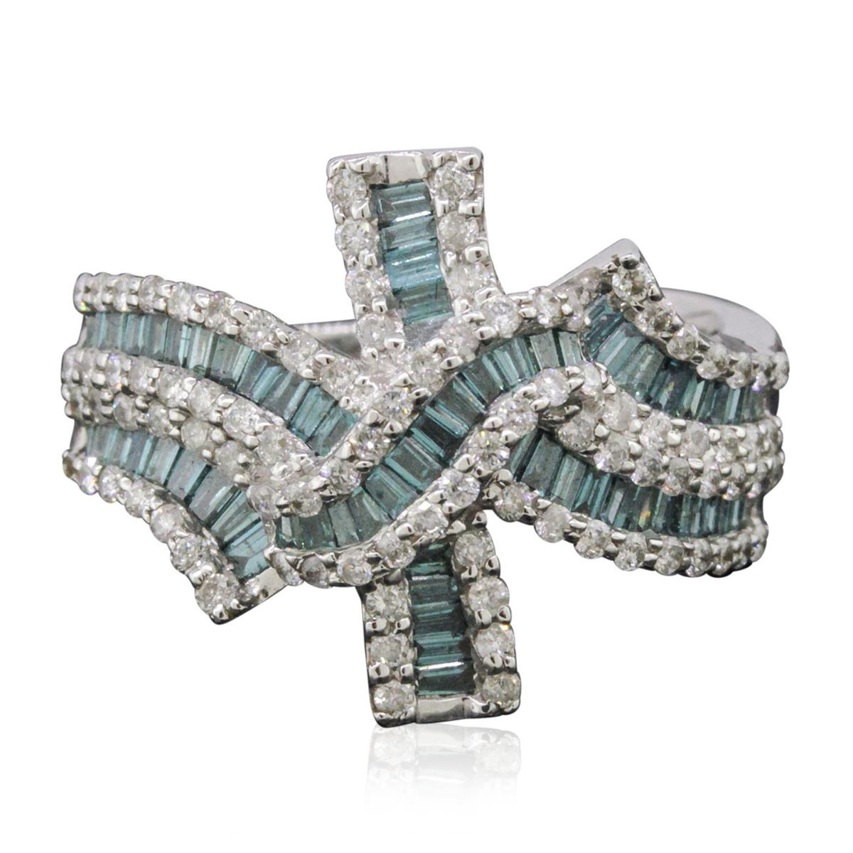 One ring featuring: 14KT white gold weighing 8.38 grams containing 66 blue diamonds with a total weight of 0.86cts and 94 round cut diamonds with a total weight of 0.67cts.