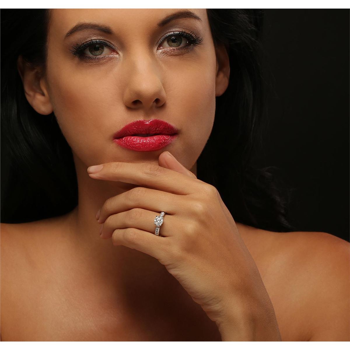 One electronically tested 14KT white gold Ladies combination cast & assembled engagement ring with a bright polish finish. Condition is new. Identified with markings of "14K". Containing: One prong set round brilliant cut diamond, measuring 6.53 - 6.51 x 4.17mm (depth est.) approximate weight of 1.10ct. Clarity: I-1. Color: G, Cut is Good. Twenty-Nine prong set round brilliant cut diamonds, measuring 1.60 - 1.60 x 0.96mm (depth est.) approximate. Total Weight of 29 Stones = 0.43ct. Clarity: SI-1 to SI-2. Color: F - G, Cut is Good. EGL USA GEM ID# US 911348411D. All diamonds are graded in the mounting, unless otherwise stated. Total Weight of Diamonds 1.53ct. Total Weight of Engagement Ring 3.20 grams. GGL Appraised at $20,635.00.