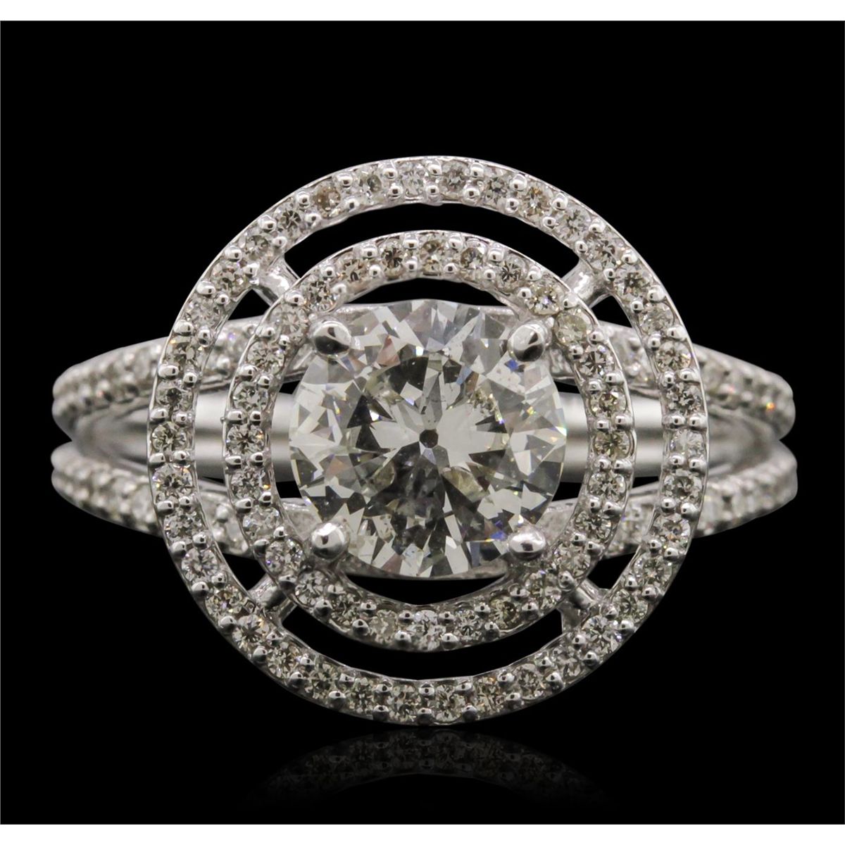 One electronically tested 14KT white gold Ladies combination cast & assembled engagement ring with a bright polish finish. Condition is new. Identified with markings of "14K". Containing: One prong set round brilliant cut diamond, measuring 7.00 - 6.98 x 3.50mm (depth est.) approximate. Total Weight of 1.09ct. Clarity: SI-2. Color: G, Cut is Good. One Hundred Two prong set round brilliant cut diamonds, measuring 1.00 - 1.00 x 0.60mm (depth est.) approximate. Total Weight of 102 Stones = 0.45ct. Clarity: SI-1 to SI-2. Color: H - I, Cut is Good. EGL USA GEM ID# US 911348439D. All diamonds are graded in the mounting, unless otherwise stated. Total Weight of Diamonds 1.54ct. Total Weight of Engagement Ring 4.50 grams. GGLAppraised at $27,135.00.