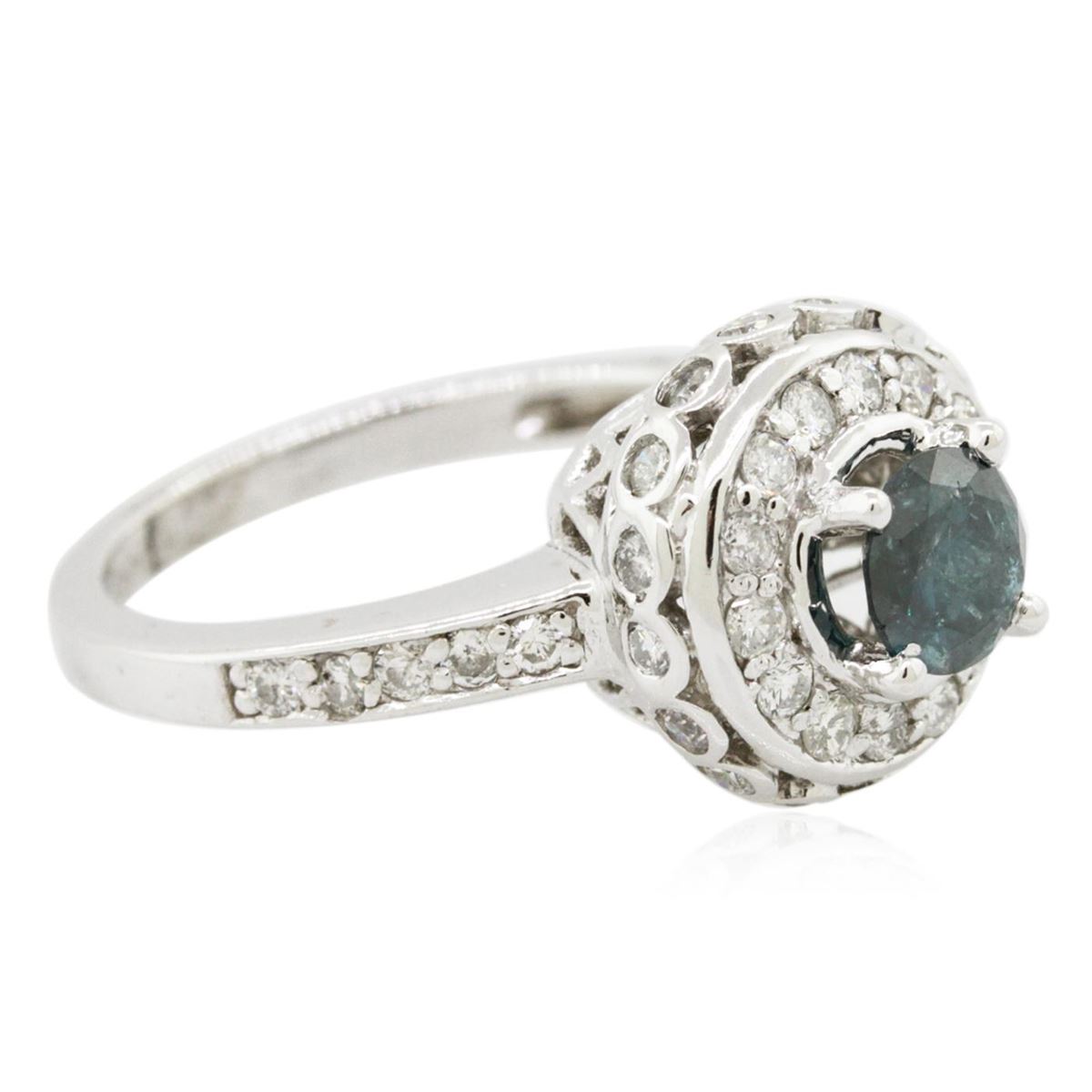 One ring featuring: 14KT white gold weighing 5.20 grams containing one blue diamond center stone with a total weight of 0.75ct and 40 round diamonds with a total weight of 0.82ct.