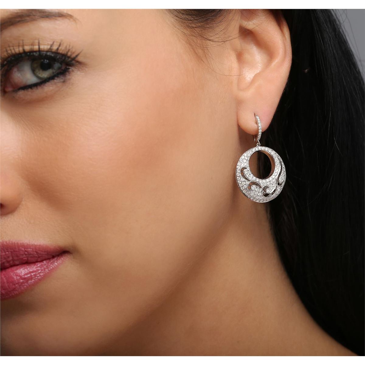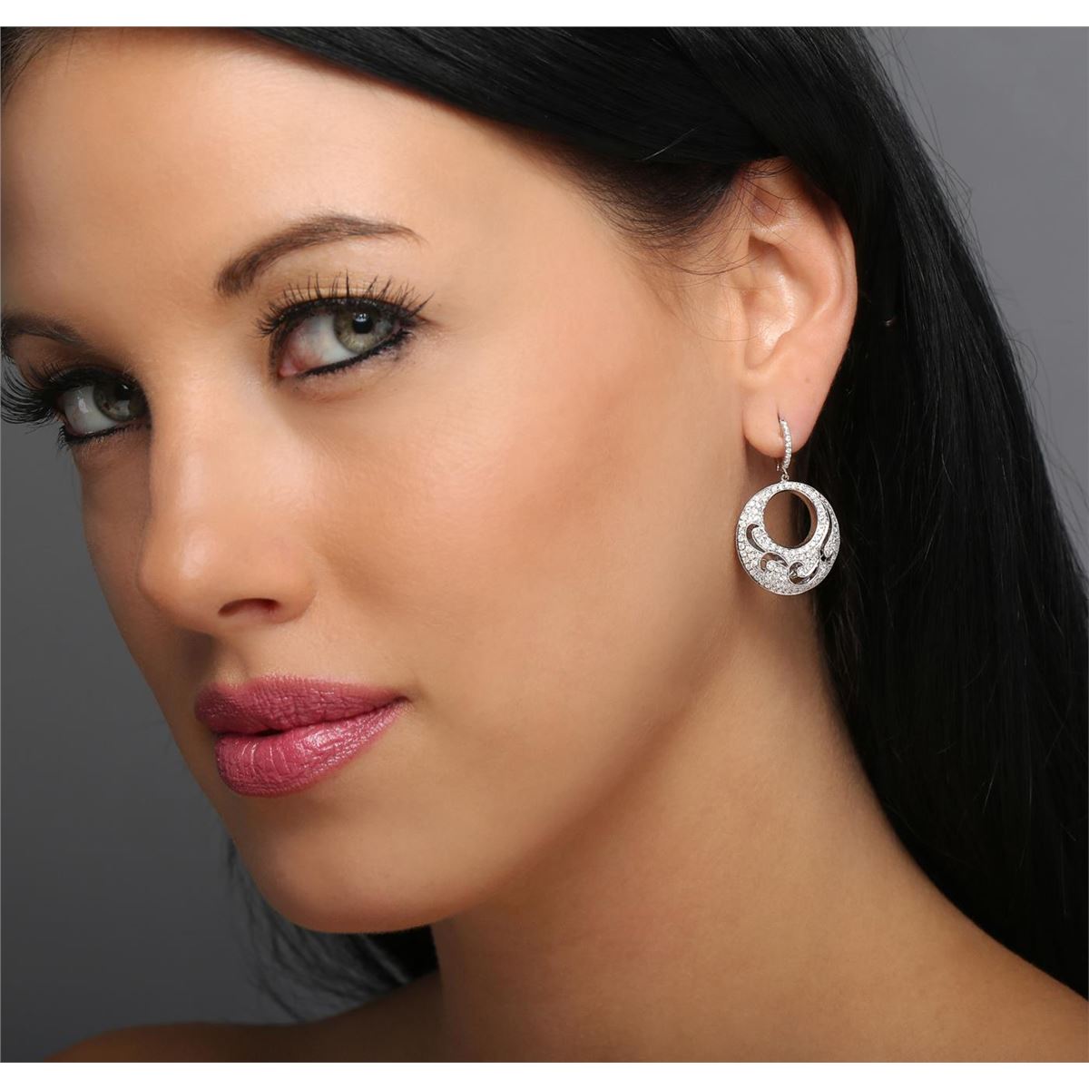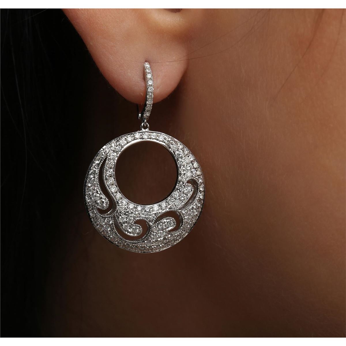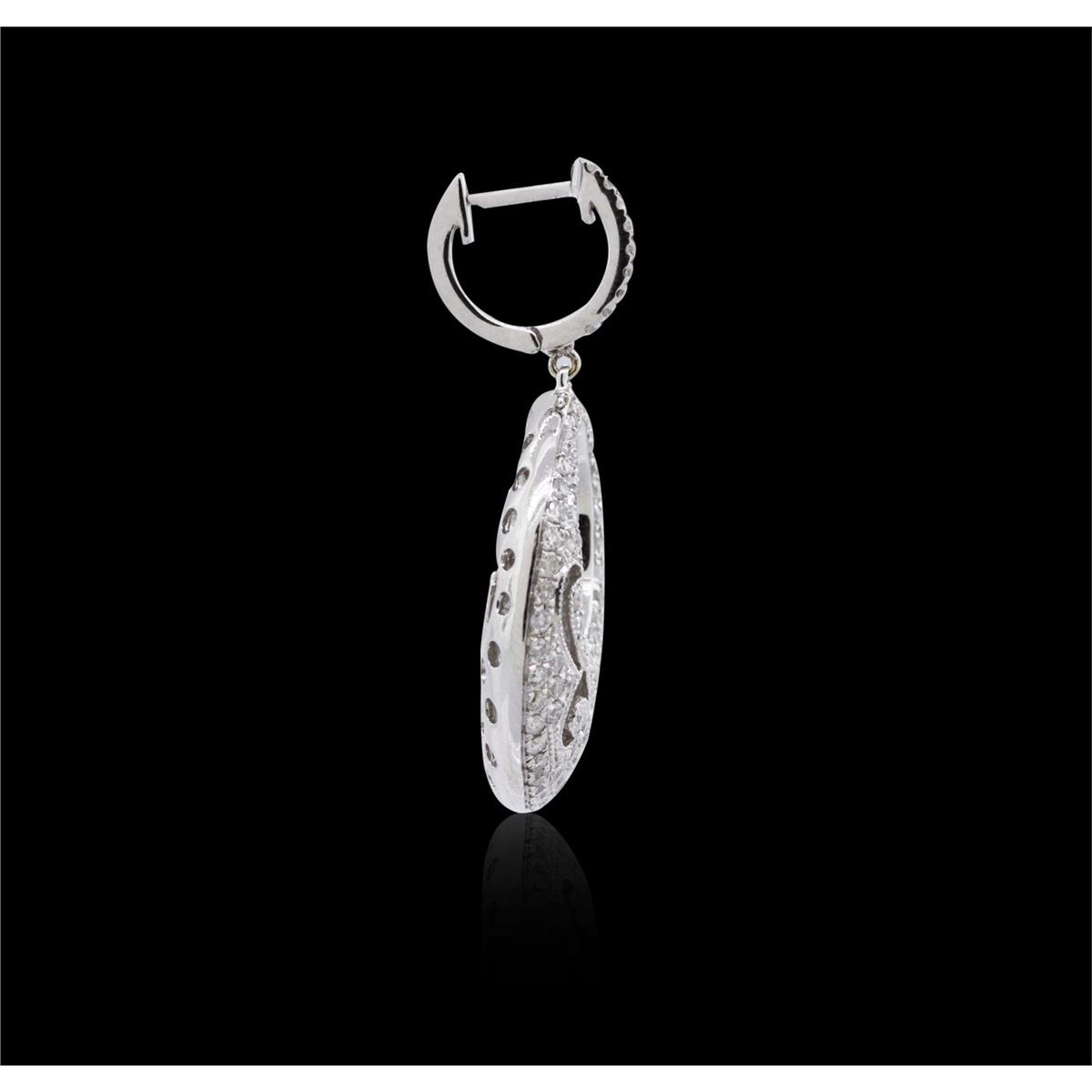 One pair of earrings featuring: 14KT white gold weighing 10.00 grams containing round cut diamonds with a total weight of 1.57cts.