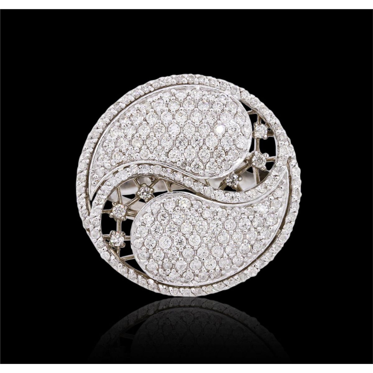 One electronically tested 14KT white gold ladies combination cast & die struck diamond ring with a split shoulder shank with a bright polish finish. Identified with markings of "K14". Condition is new. Containing: One Hundred Ninety-Six prong set round brilliant cut diamonds, measuring 1.30 - 1.30 x 0.78mm (depth est.) approximate total weight of 196 Stones = 1.57ct. Clarity: SI-1 to SI-2. Color: I - J, Cut is Good. All diamonds are graded in the mounting, unless otherwise stated. Total Weight of Diamonds 1.57ct. Total Weight of Ring 10.60 grams. GGL Appraised at $6,390.00.