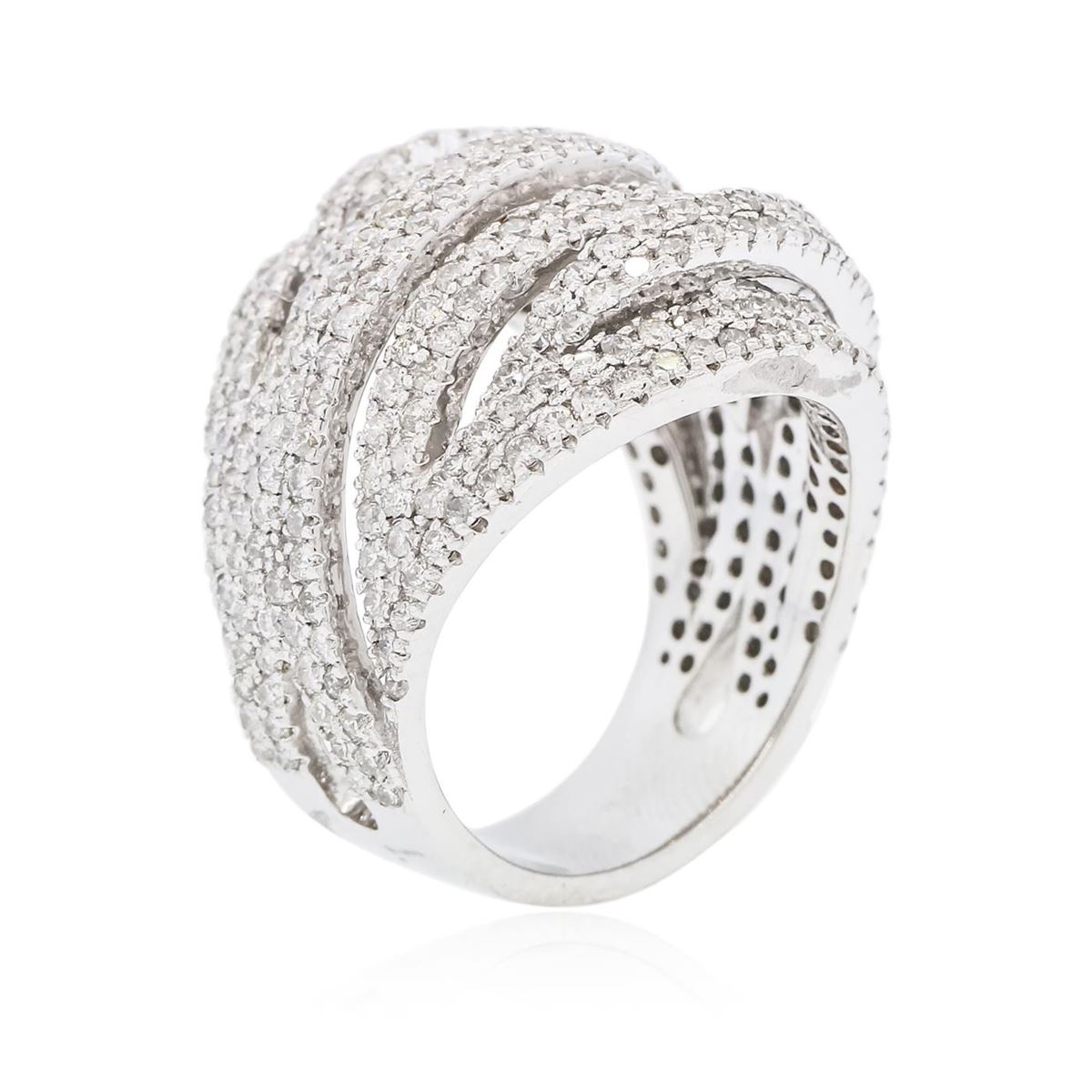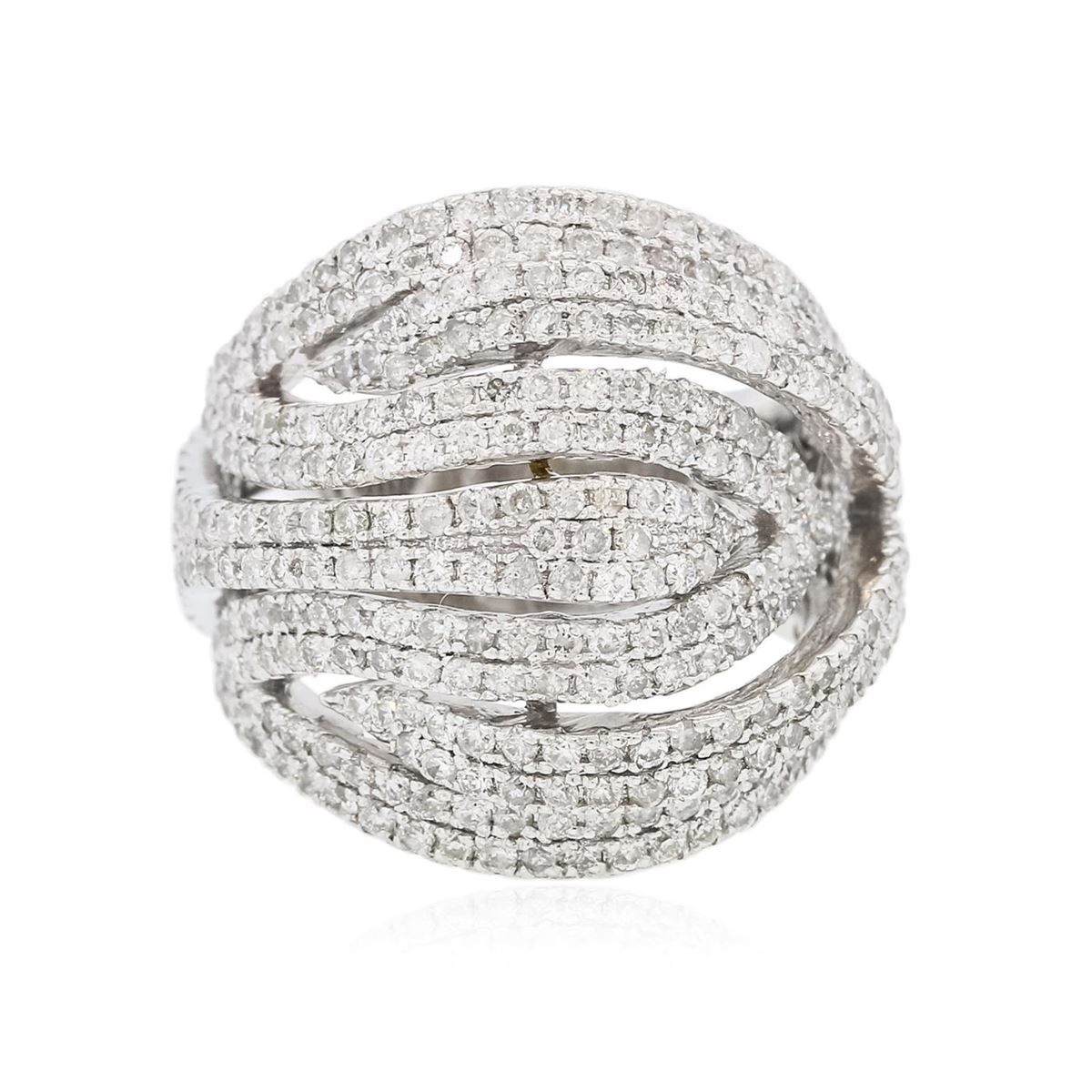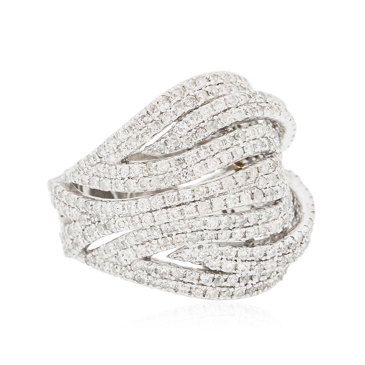 One electronically tested 14KT white gold ladies combination cast & assembled ring with a bright polish finish. Condition is new. Identified with markings of "K14". Containing: Three Hundred Thirty bead set round brilliant cut diamonds, measuring 1.10 - 1.10 x 0.66mm (depth est.) approximate total weight of 330 Stones = 1.58ct. Clarity: I-1 to I-3. Color: H - I. All diamonds are graded in the mounting, unless otherwise stated. Total Weight of Diamonds 1.58ct. Total Weight of Ring 12.30 grams. GGL Appraised at $8,605.00.