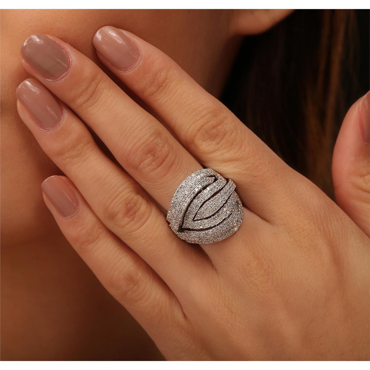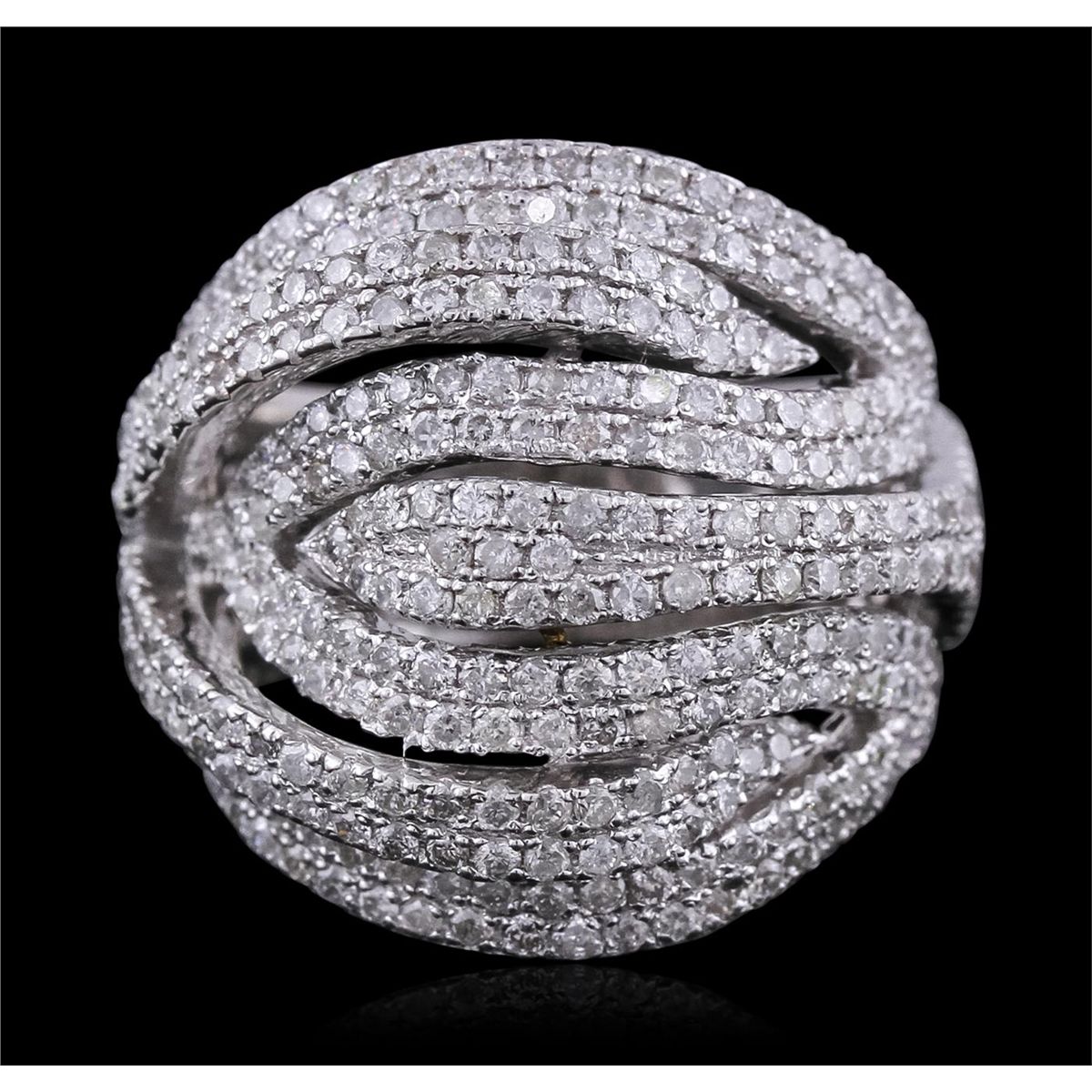 One electronically tested 14KT white gold ladies combination cast & assembled ring with a bright polish finish. Condition is new. Identified with markings of "K14". Containing: Three Hundred Thirty bead set round brilliant cut diamonds, measuring 1.10 - 1.10 x 0.66mm (depth est.) approximate total weight of 330 Stones = 1.58ct. Clarity: I-1 to I-3. Color: H - I. All diamonds are graded in the mounting, unless otherwise stated. Total Weight of Diamonds 1.58ct. Total Weight of Ring 12.30 grams. GGL Appraised at $8,605.00.