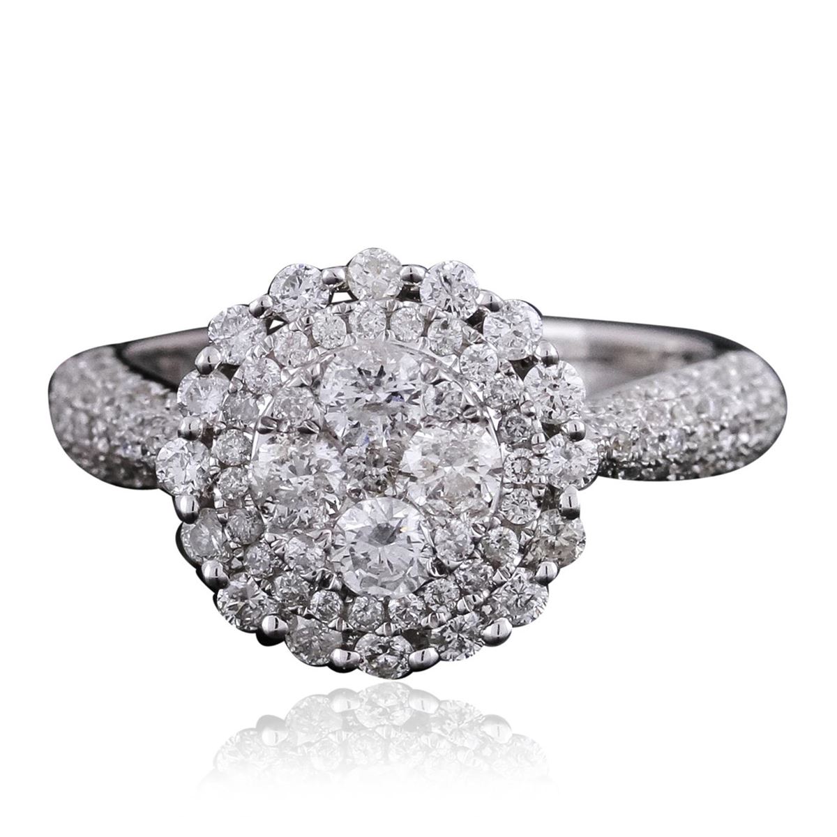 One electronically tested 14KT white gold ladies combination cast & assembled engagement ring with a bright polish finish. Identified with markings of "14K". Condition is new. Containing: Four prong set round brilliant cut diamonds, measuring 3.00 - 3.00 x 1.80mm (depth est.) approximate total weight of 4 Stones = 0.40ct. Clarity: I-1 to I-2. Color: I - J, Cut is Good. One Hundred Thirty-Three prong set round brilliant cut diamonds, measuring 1.50 - 1.20 x 0.81mm (depth est.) approximate total weight of 133 Stones = 1.20ct. Clarity: I-1 to I-2. Color: H - I, Cut is Good. All diamonds are graded in the mounting, unless otherwise stated. Total Weight of Diamonds 1.59ct. Total Weight of Ring 4.20 grams. GGL Appraised at $4,625.00.