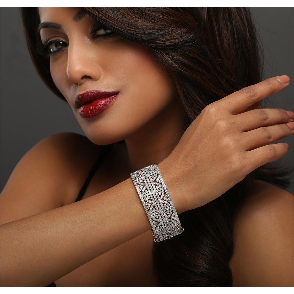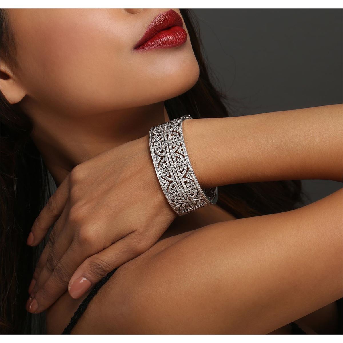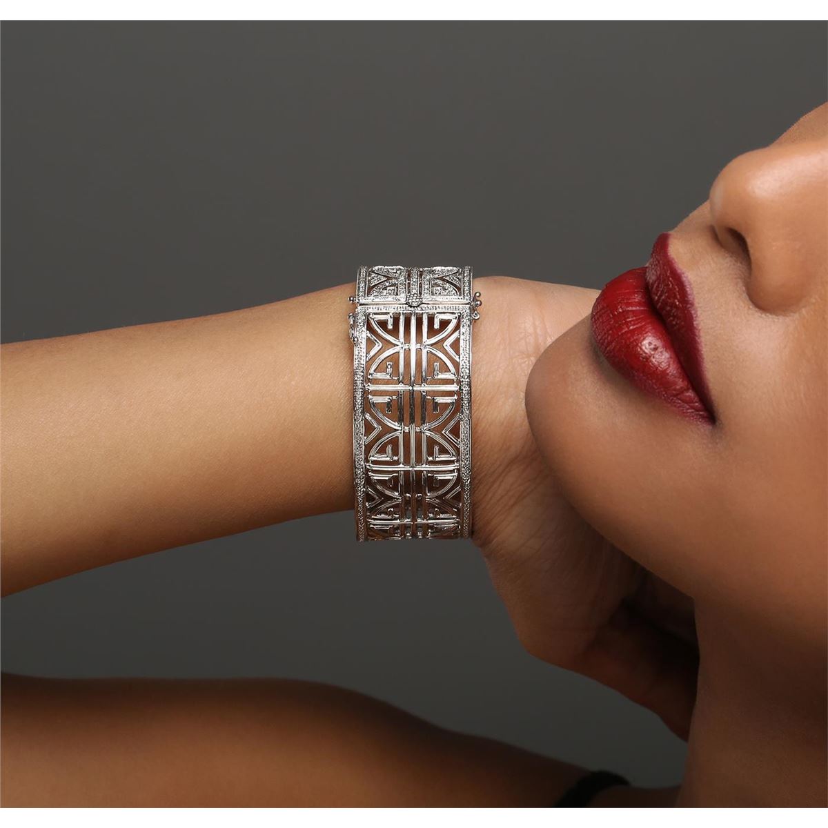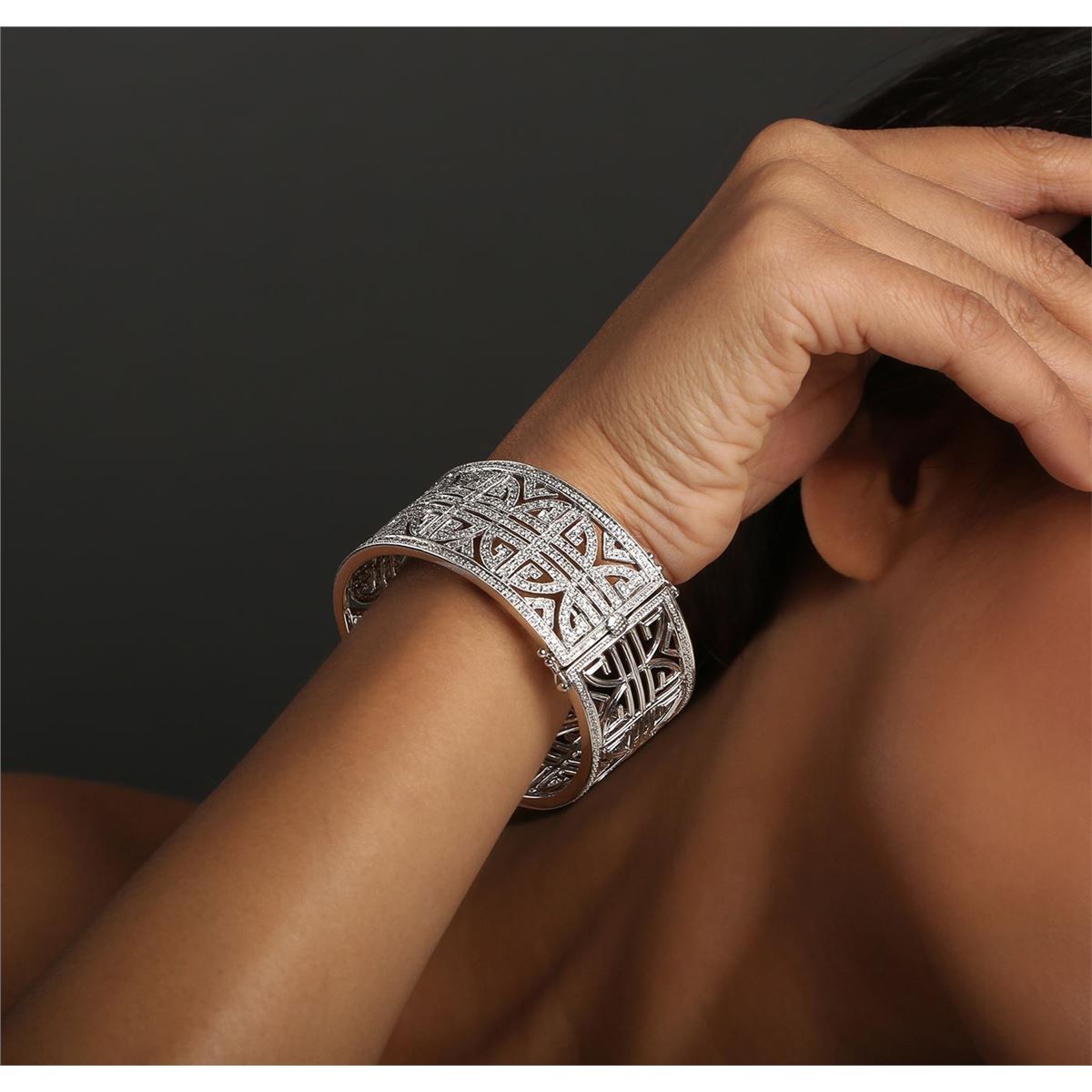 One electronically tested 14KT white gold ladies combination cast & assembled bangle bracelet with a bright polish finish. Identified with markings of "14K 585". Condition is new. Containing: Four Hundred Forty-One prong set round brilliant cut diamonds, measuring 1.00 - 1.00 x 0.60mm (depth est.) approximate total weight of 441 Stones = 1.59ct. Clarity: I-1 to I-2. Color: I - J, Cut is Good. All diamonds are graded in the mounting, unless otherwise stated. Total Weight of Diamonds 1.59ct. Total Weight of Bracelet 52.70 grams. GGL Appraised at $9,430.00.