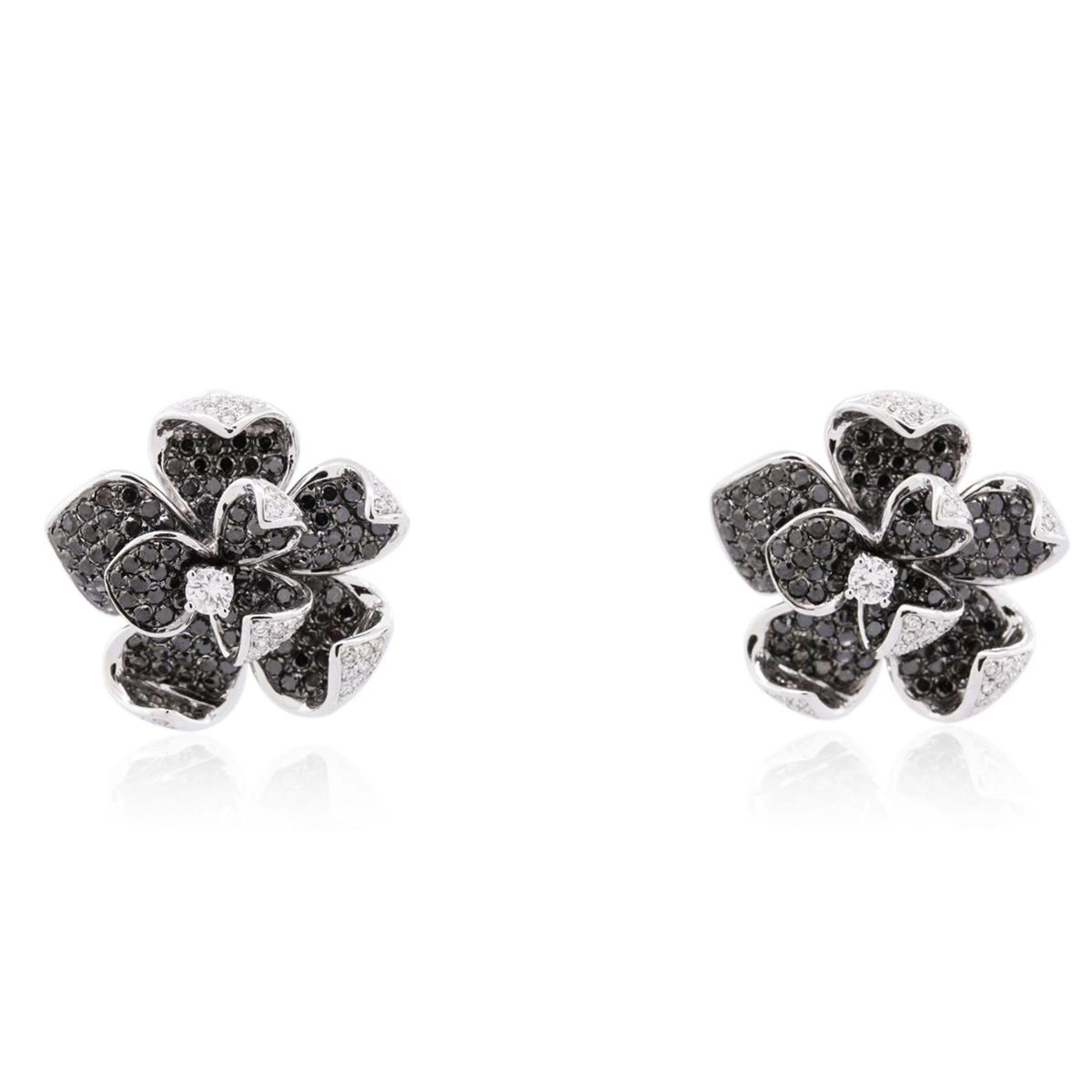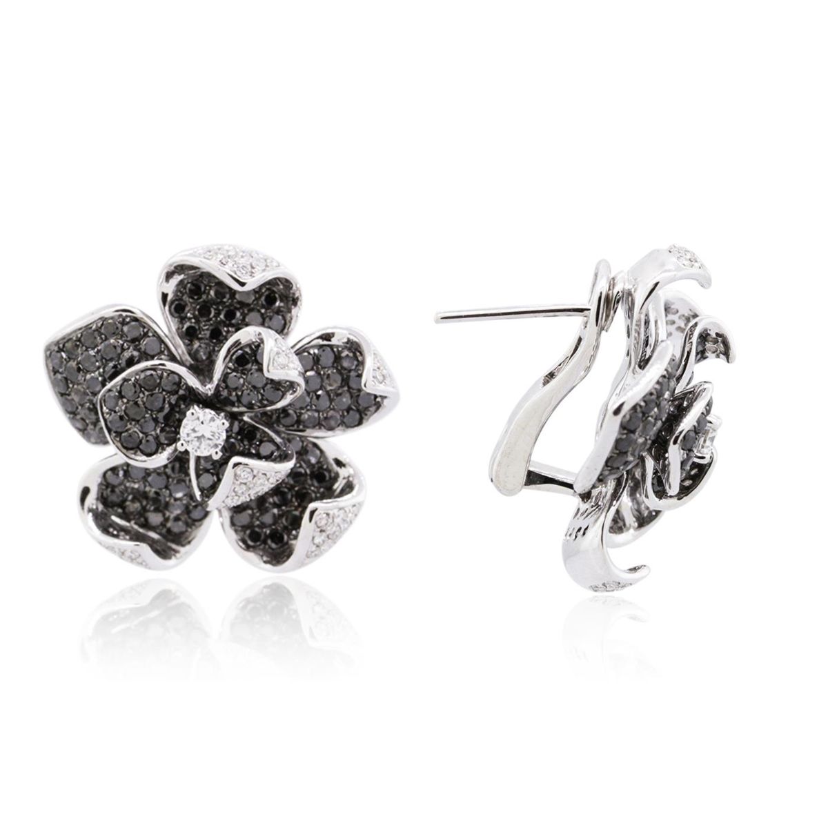 One pair electronically tested 14KT white gold ladies cast diamond earrings with Omega clip backs with posts with a bright polish finish. Identified with markings of "14K". Condition is new. Containing: Two prong set round brilliant cut diamonds, measuring 3.00 - 3.00 x 1.80mm (depth est.) approximate total weight of 2 Stones = 0.20ct. Clarity: SI-1. Color: J, Cut is Good. Fifty-Two prong set round brilliant cut diamonds, measuring 1.00 - 1.00 x 0.60mm (depth est.) approximate total weight of 52 Stones = 0.19ct. Clarity: SI-1 to SI-2. Color: I - J, Cut is Good. One Hundred Fifty prong set round brilliant cut diamonds, measuring 1.30 - 1.30 x 0.78mm (depth est.) approximate total weight of 150 Stones = 1.20ct. Cut is Good. All diamonds are graded in the mounting, unless otherwise stated. Total Weight of Diamonds 1.59ct. Total Weight of Earrings 14.80 grams. GGL Appraised at $7,960.00.