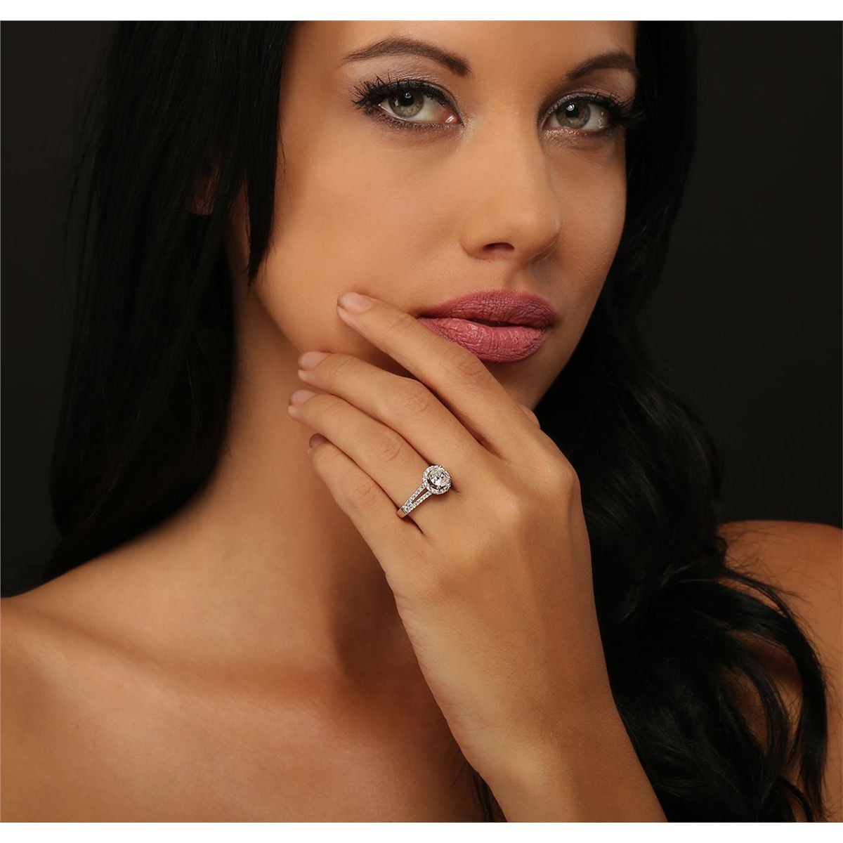 One electronically tested 14KT white gold Ladies combination cast & assembled engagement ring with a bright polish finish. Condition is new. Identified with markings of "14K". Containing: One prong set round brilliant cut diamond, measuring 6.17 - 6.13 x 4.20mm (depth est.) approximate weight of 1.05ct. Clarity: I-1. Color: E, Cut is Good. Sixty prong set round brilliant cut diamonds, measuring 1.30 - 1.30 x 0.78mm (depth est.) approximate. Total Weight of 60 Stones = 0.54ct. Clarity: SI-2 to SI-3. Color: G - H, Cut is Good. EGL USA GEM ID# US 911348401D. All diamonds are graded in the mounting, unless otherwise stated. Total Weight of Diamonds 1.59ct. Total Weight of Engagement Ring 4.20 grams. GGL Appraised at $21,550.00.