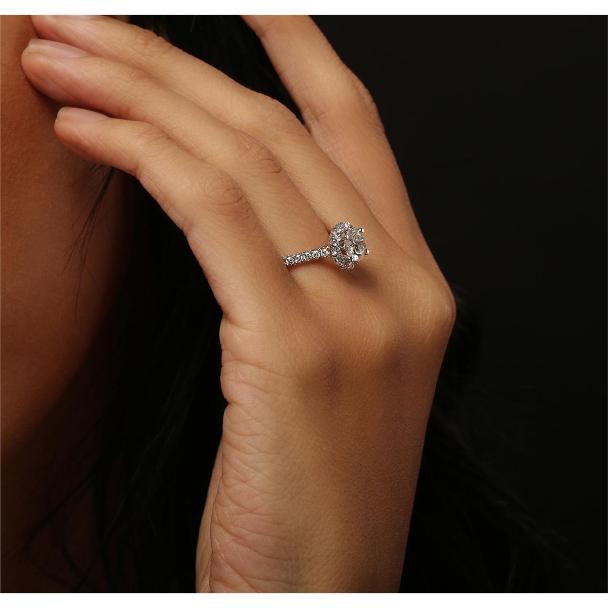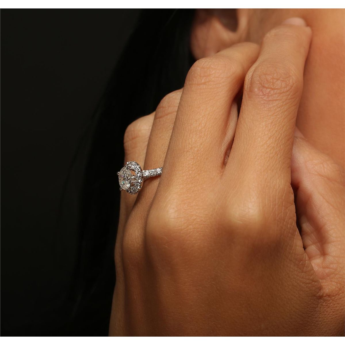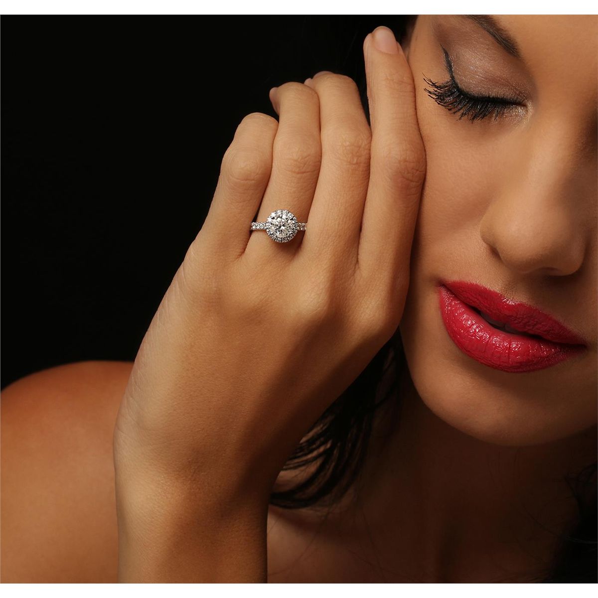 One electronically tested 14KT white gold Ladies combination cast & assembled engagement ring with a bright polish finish. Condition is new. Identified with markings of "14K". Containing: One prong set round brilliant cut diamond, measuring 6.51 - 6.51 x 4.00mm (depth est.) approximate weight of 1.07ct. Clarity: I-1. Color: F, Cut is Good. Thirty prong set round brilliant cut diamonds, measuring 1.70 - 1.70 x 1.02mm (depth est.) approximate. Total Weight of 30 Stones = 0.52ct. Clarity: VS-2 to SI-2. Color: F - G, Cut is Good. EGL USA GEM ID# US 911348412D. All diamonds are graded in the mounting, unless otherwise stated. Total Weight of Diamonds 1.59ct. Total Weight of Engagement Ring 3.20 grams. GGL Appraised at $20,920.00.