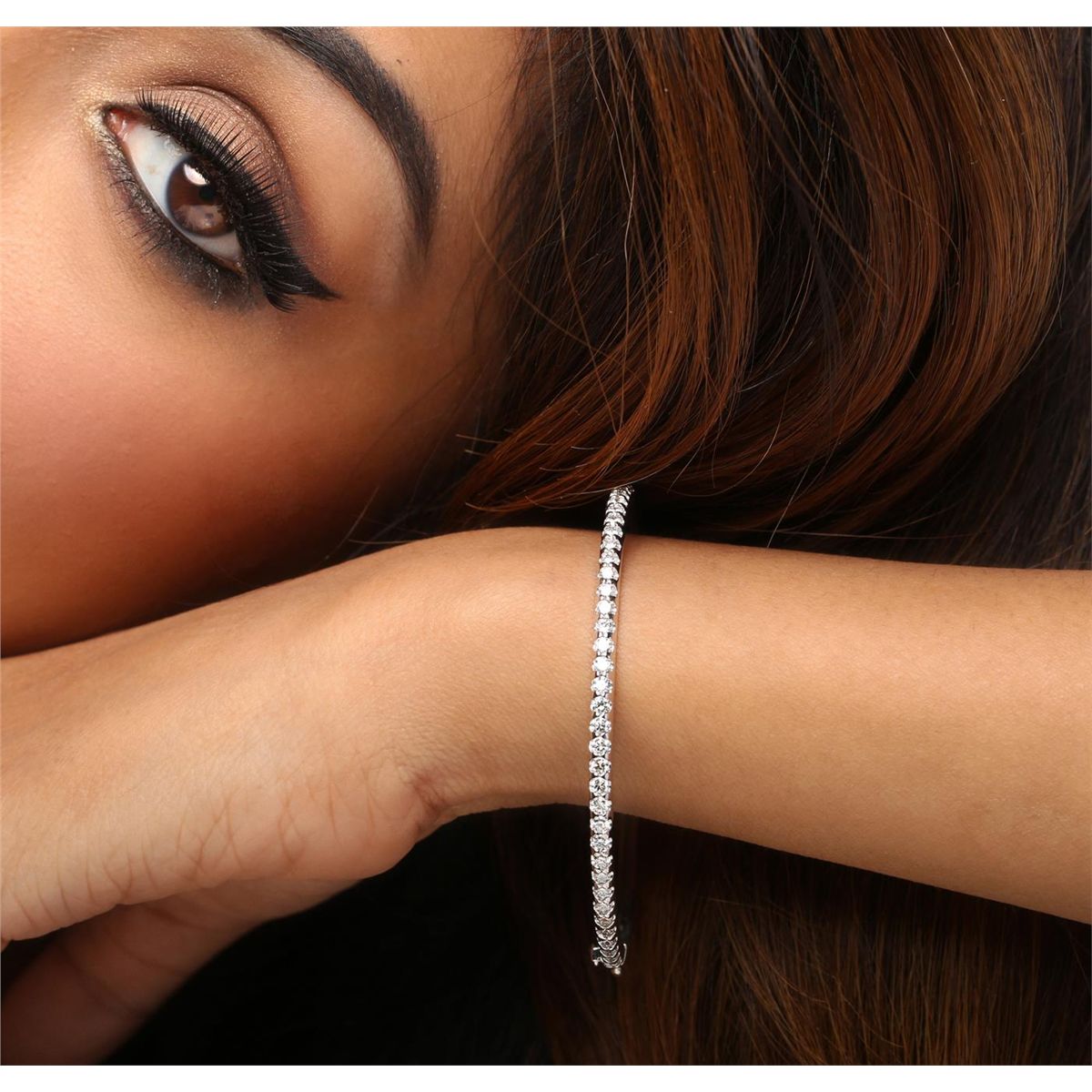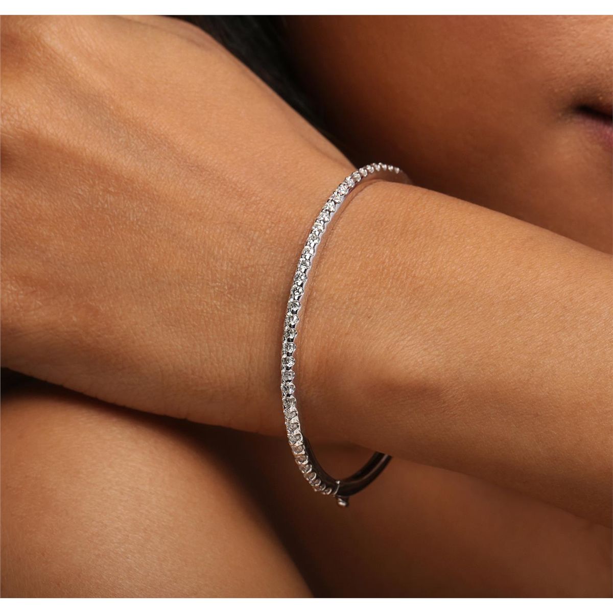 One electronically tested 14KT white gold ladies combination cast & assembled bangle bracelet with a hidden box clasp with safety closer with a bright polish finish. Measurements: 2.50 x 2.00. Condition is new. Containing: Thirty-Six prong set round brilliant cut diamonds, measuring 2.30 - 2.30 x 1.38mm (depth est.) approximate total weight of 36 Stones = 1.60ct. Clarity: SI-2 to I-1. Color: J - K, Cut is Good. All diamonds are graded in the mounting, unless otherwise stated. Total Weight of Diamonds 1.60ct. Total Weight of Bracelet 12.60 grams. GGL Appraised at $6,000.00.