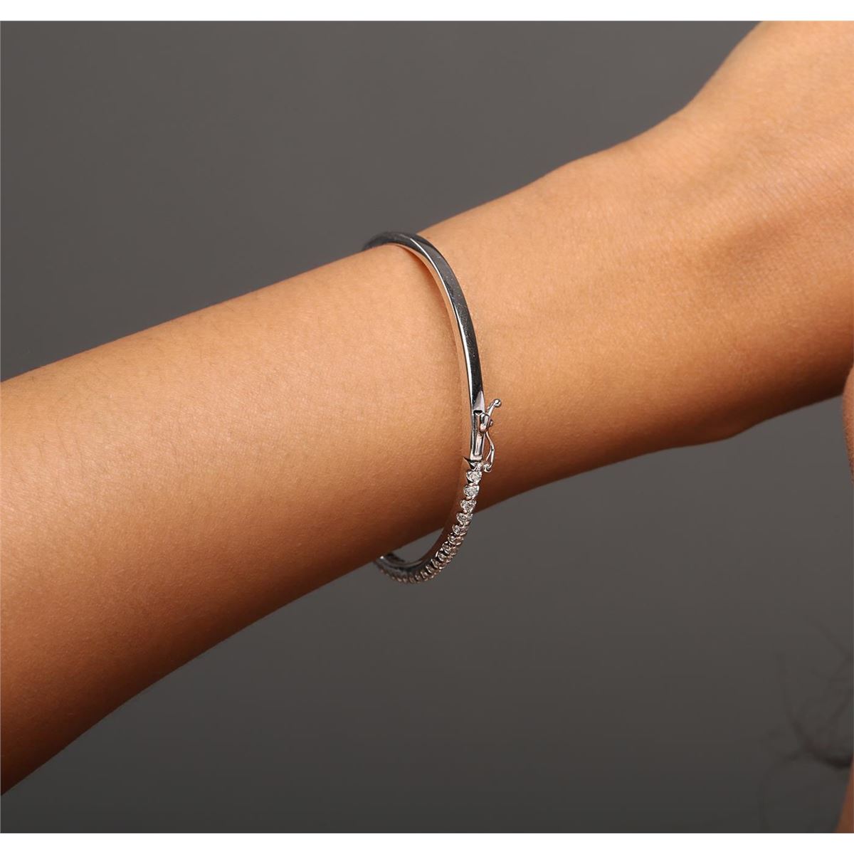 One electronically tested 14KT white gold ladies combination cast & assembled bangle bracelet with a hidden box clasp with safety closer with a bright polish finish. Measurements: 2.50 x 2.00. Condition is new. Containing: Thirty-Six prong set round brilliant cut diamonds, measuring 2.30 - 2.30 x 1.38mm (depth est.) approximate total weight of 36 Stones = 1.60ct. Clarity: SI-2 to I-1. Color: J - K, Cut is Good. All diamonds are graded in the mounting, unless otherwise stated. Total Weight of Diamonds 1.60ct. Total Weight of Bracelet 12.60 grams. GGL Appraised at $6,000.00.