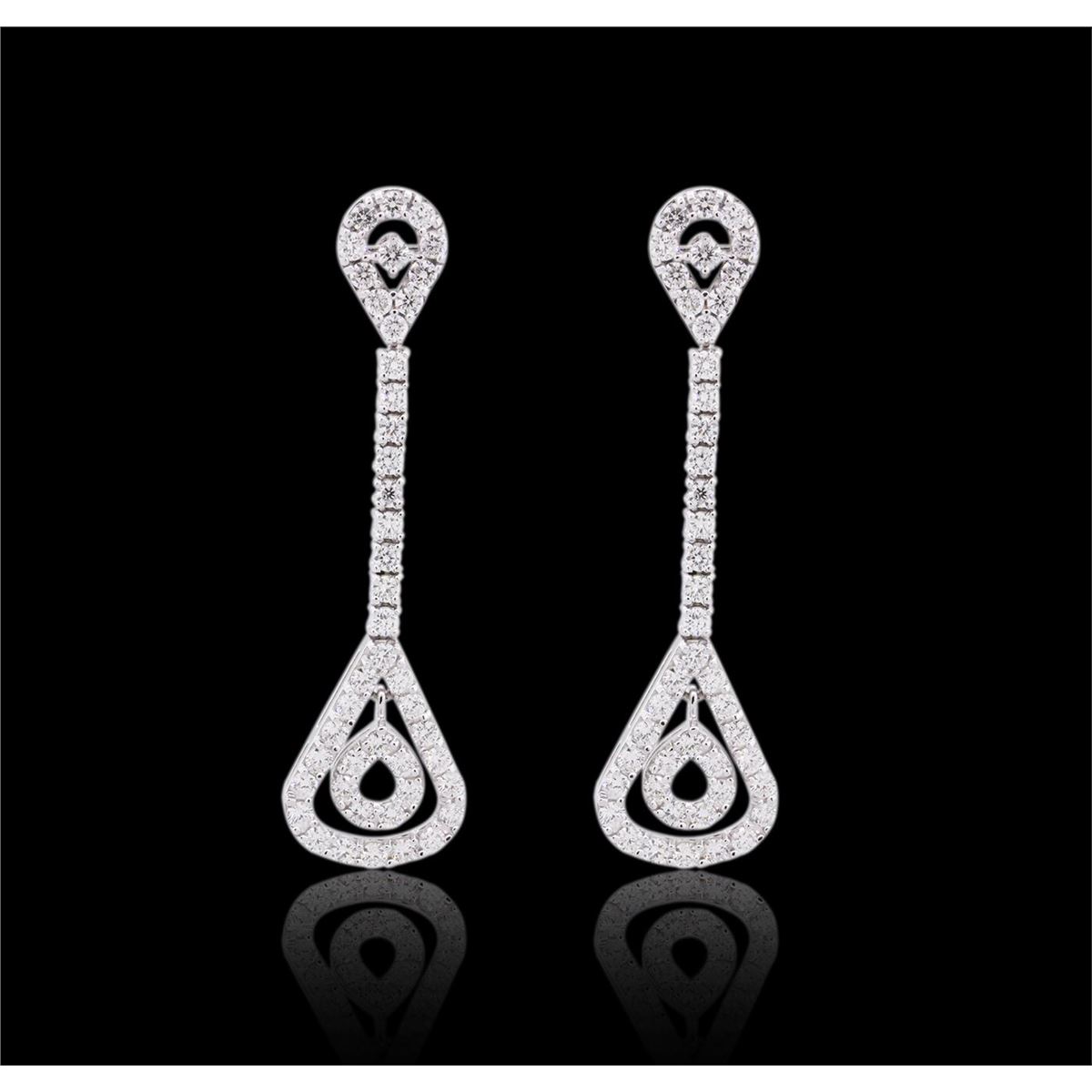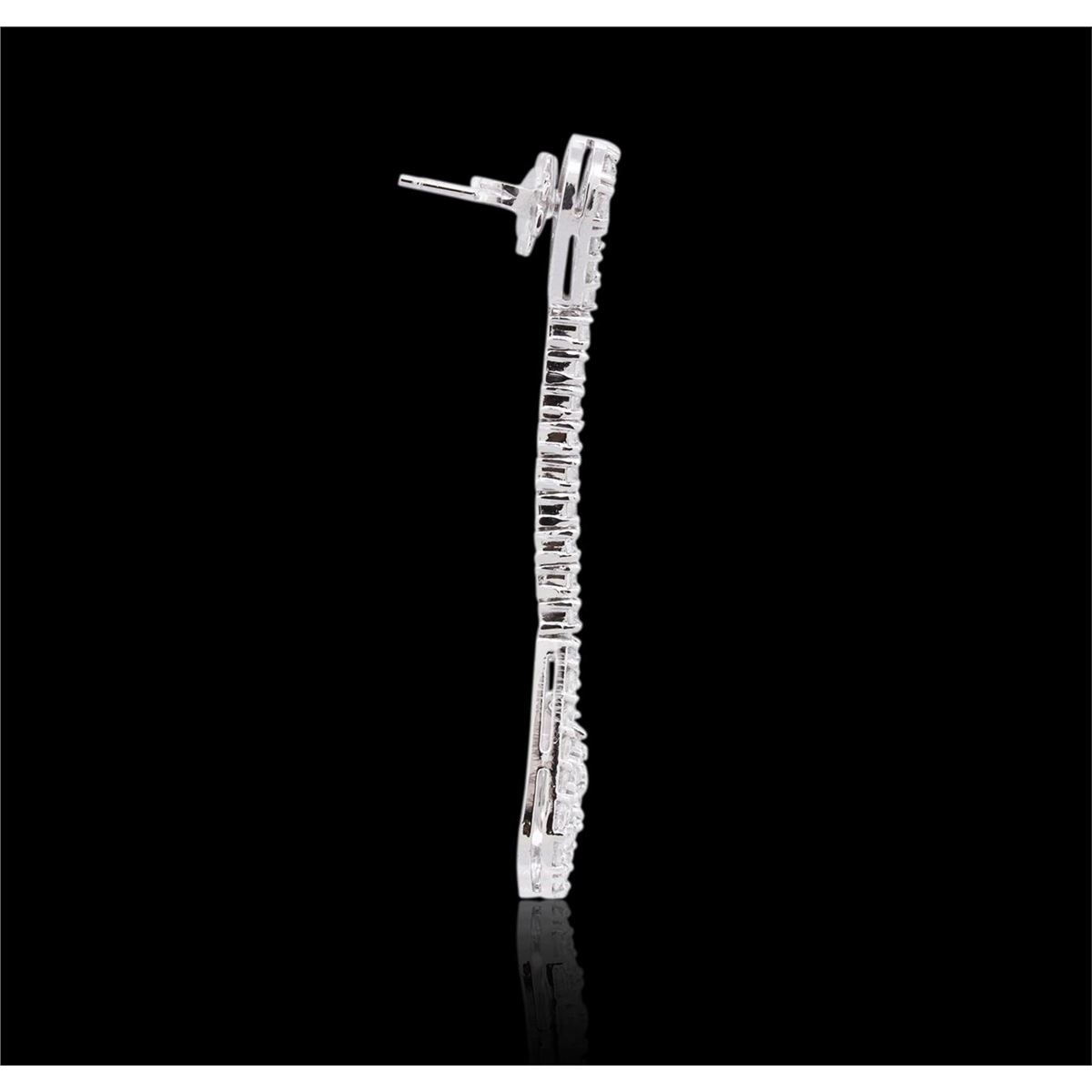 One pair electronically tested 14KT white gold ladies combination cast & assembled dangle diamond earrings with friction posts with a bright polish finish. Condition is new. Containing: Ninety prong set round brilliant cut diamonds, measuring 1.70 - 1.70 x 1.02mm (depth est.) approximate total weight of 90 Stones = 1.61ct. Clarity: SI-2 to I-1. Color: I - J, Cut is Good. All diamonds are graded in the mounting, unless otherwise stated. Total Weight of Diamonds 1.61ct. Total Weight of Earrings 7.20 grams. GGL Appraised at $5,945.00.