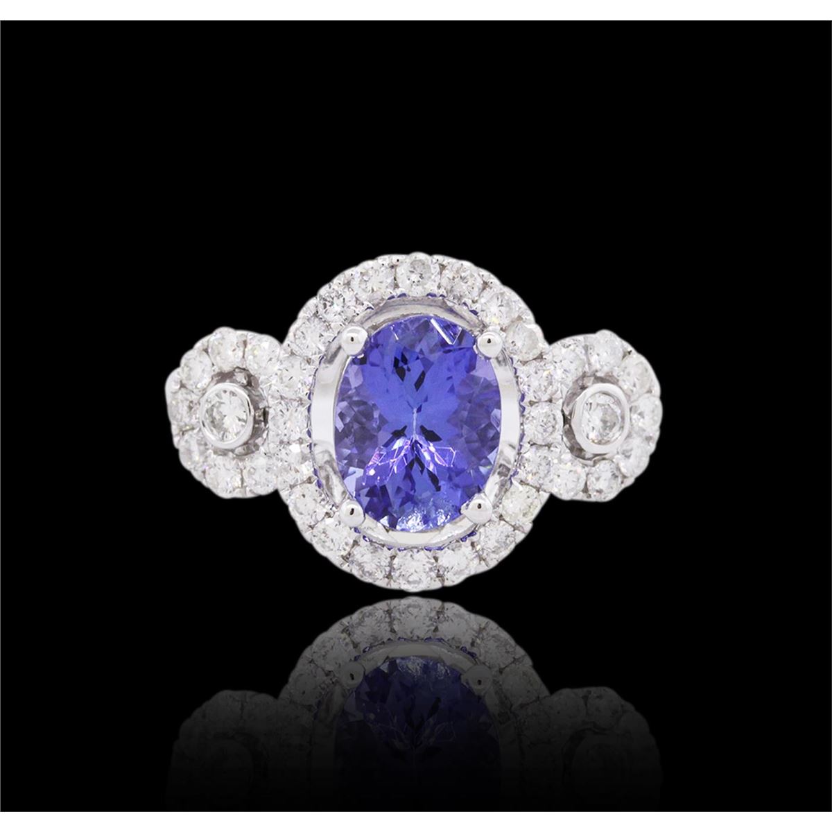 One ring featuring: 14KT white gold weighing 2.70 grams containing one tanzanite center stone with a total weight of 1.63ct and 36 round cut diamonds with a total weight of 0.73cts.