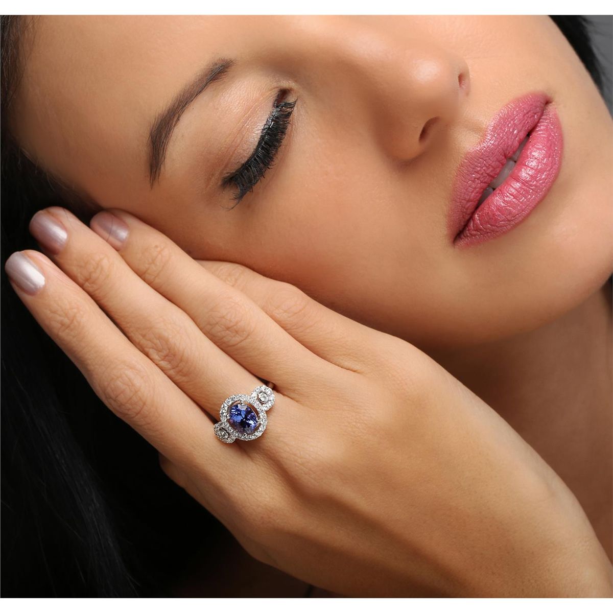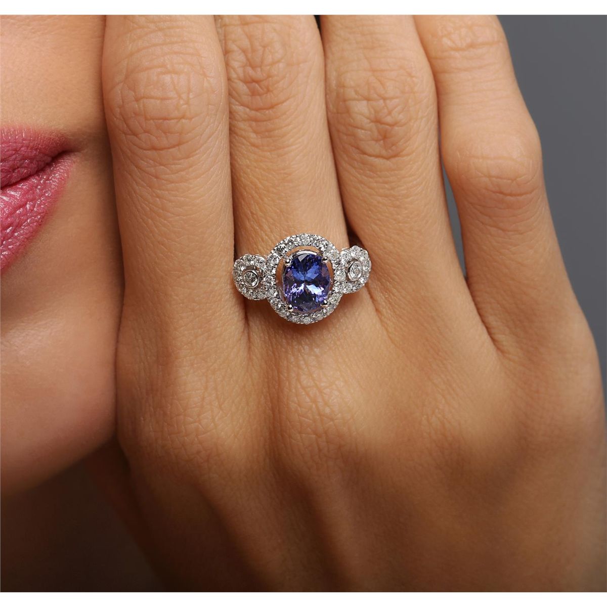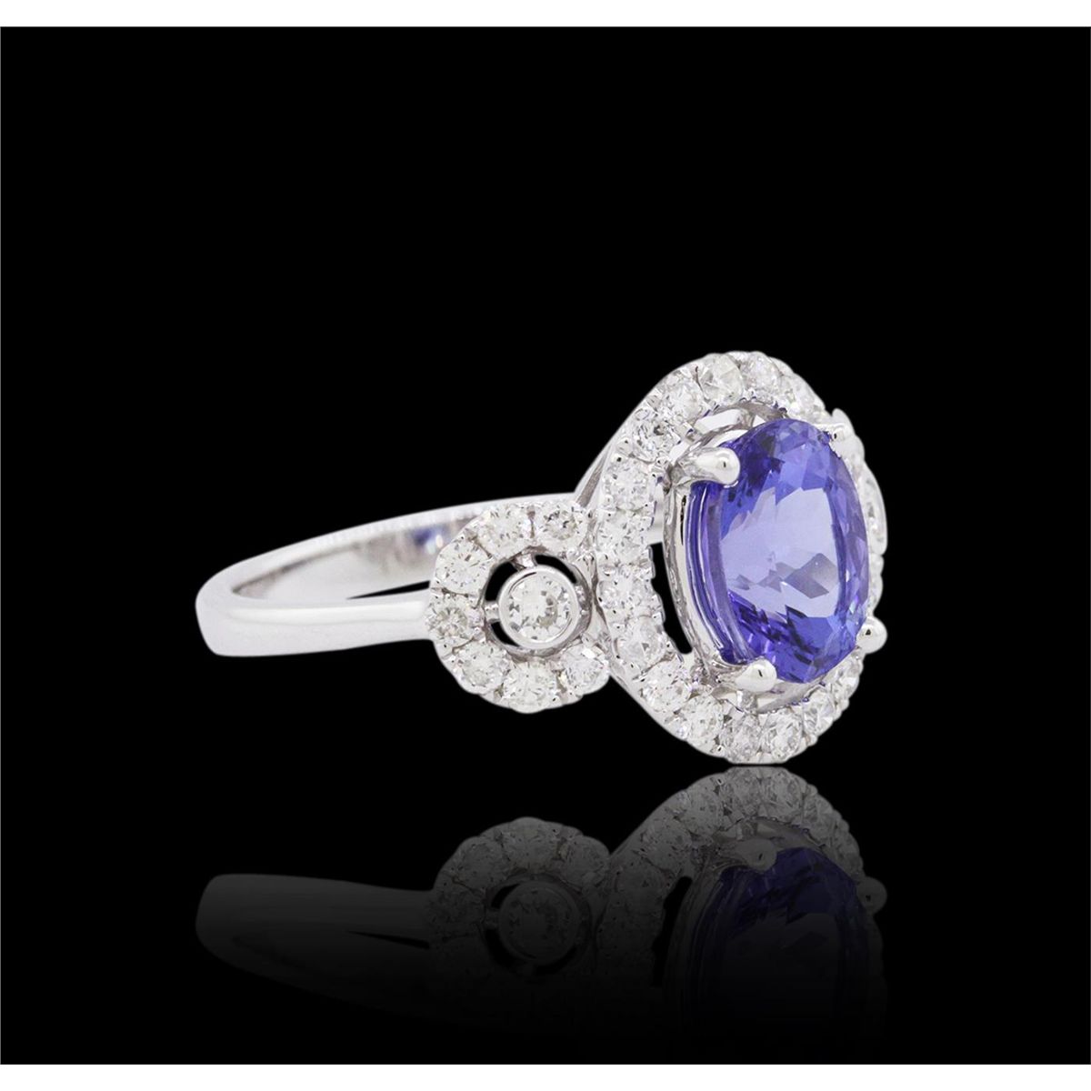 One ring featuring: 14KT white gold weighing 2.70 grams containing one tanzanite center stone with a total weight of 1.63ct and 36 round cut diamonds with a total weight of 0.73cts.