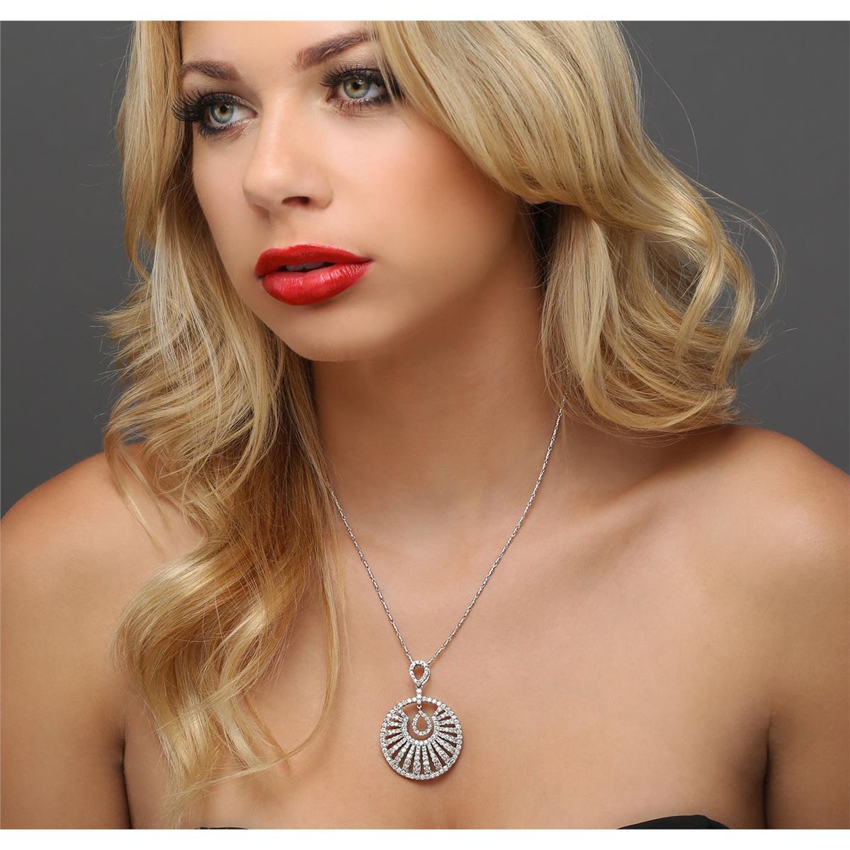 One electronically tested 14KT white gold Ladies combination cast & assembled pendant & chain 17.0" long, medium fancy link with a lobster claw clasp with a bright polish finish. Condition is new. Identified with markings of "14K". Containing: Ninety-One prong set round brilliant cut diamonds, measuring 1.90 - 1.50 x 1.02mm (depth est.) approximate. Total Weight of 91 Stones = 1.63ct. Clarity: I-1 to I-2. Color: I - J, Cut is Good. All grading of diamonds and colored gemstones in this piece of jewelry are graded in the mounting, unless otherwise stated. Total Weight of Diamonds 1.63ct. Total Weight of Pendant & Chain 21.60 grams. GGL Appraised at $10,100.00.