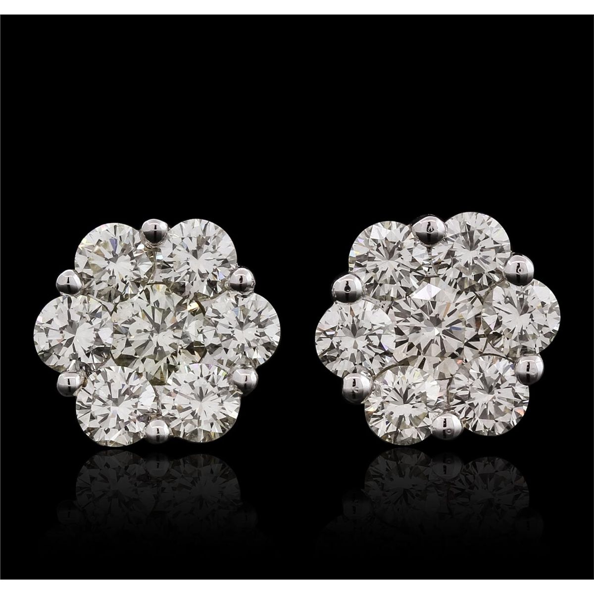 One pair electronically tested 14KT white gold ladies combination cast & assembled diamond stud earrings with friction posts with a bright polish finish. Identified with markings of "14K 585". Condition is new. Containing: Two prong set round brilliant cut diamonds, measuring 4.00 - 4.00 x 2.40mm (depth est.) approximate total weight of 2 Stones = 0.47ct. Clarity: SI-1. Color: K, Cut is Very Good. Twelve prong set round brilliant cut diamonds, measuring 3.00 - 3.00 x 1.80mm (depth est.) approximate total weight of 12 Stones = 1.19ct. Clarity: SI-1. Color: J, Cut is Very Good. All diamonds are graded in the mounting, unless otherwise stated. Total Weight of Diamonds 1.65ct. Total Weight of Earrings 2.90 grams. GGL Appraised at $5,830.00.