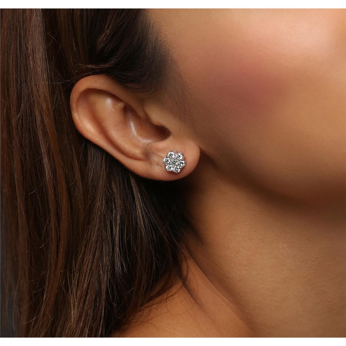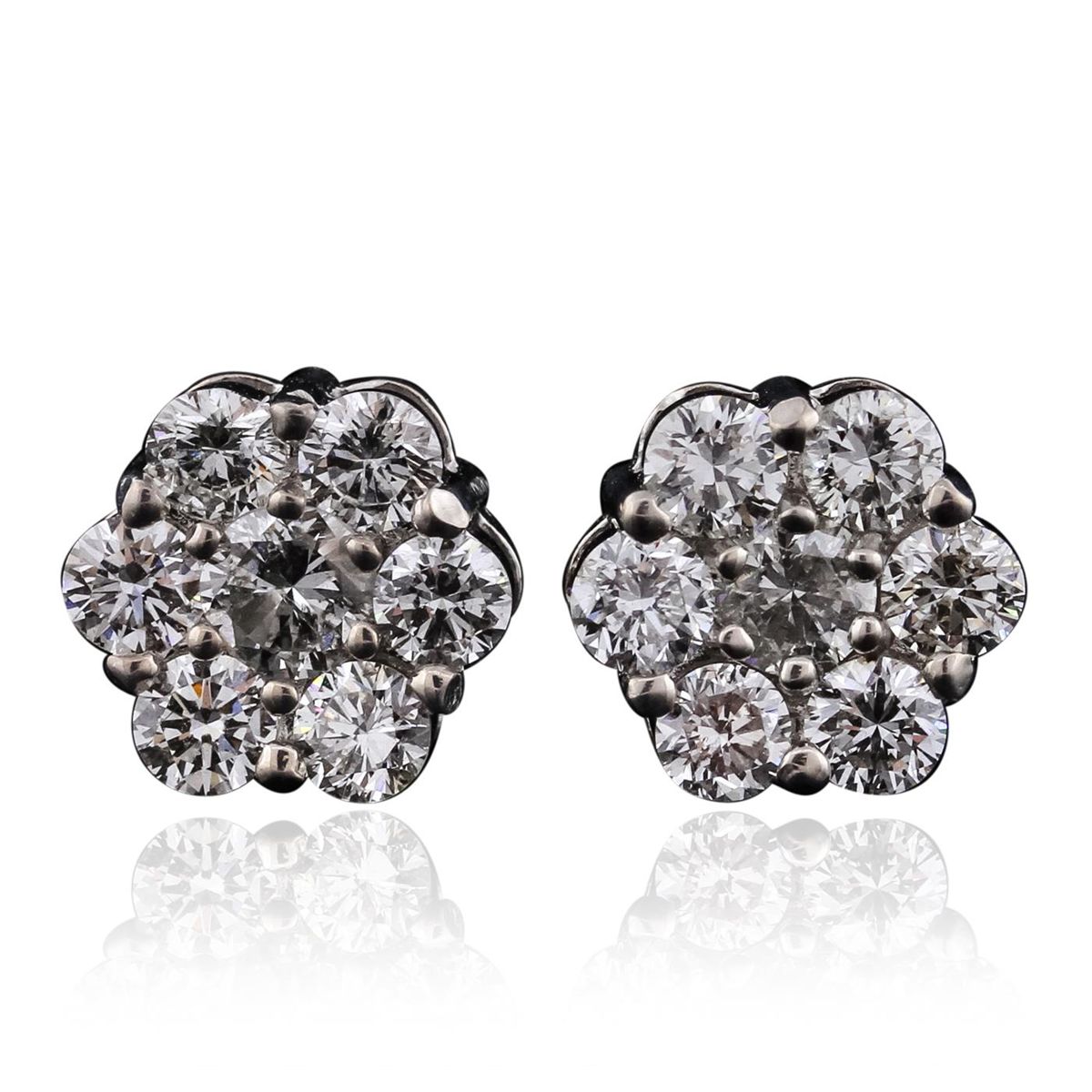 One pair electronically tested 14KT white gold ladies combination cast & assembled stud earrings with friction posts with a bright polish finish. Condition is new. Identified with markings of "14K". Containing: Two prong set round brilliant cut diamonds, measuring 4.00 - 4.00 x 2.40mm (depth est.) approximate. Total Weight of 2 Stones = 0.47ct. Clarity: SI-2. Color: J, Cut is Good. Twelve prong set round brilliant cut diamonds, measuring 3.00 - 3.00 x 1.80mm (depth est.) approximate. Total Weight of 12 Stones = 1.19ct. Clarity: SI-1 to SI-2. Color: I - J, Cut is Good. All diamonds are graded in the mounting, unless otherwise stated. Total Weight of Diamonds 1.65ct. Total Weight of Earrings 3.00 grams. GGL Appraised at $5,640.00.