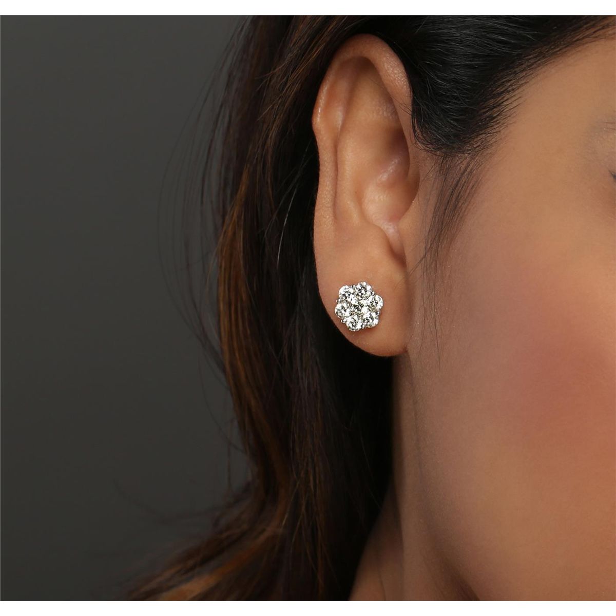 One pair electronically tested 14KT white gold ladies combination cast & assembled diamond stud earrings with friction posts with a bright polish finish. Identified with markings of "14K 585". Condition is new. Containing: Two prong set round brilliant cut diamonds, measuring 4.00 - 4.00 x 2.40mm (depth est.) approximate total weight of 2 Stones = 0.47ct. Clarity: SI-1. Color: K, Cut is Very Good. Twelve prong set round brilliant cut diamonds, measuring 3.00 - 3.00 x 1.80mm (depth est.) approximate total weight of 12 Stones = 1.19ct. Clarity: SI-1. Color: J, Cut is Very Good. All diamonds are graded in the mounting, unless otherwise stated. Total Weight of Diamonds 1.65ct. Total Weight of Earrings 2.90 grams. GGL Appraised at $5,830.00.