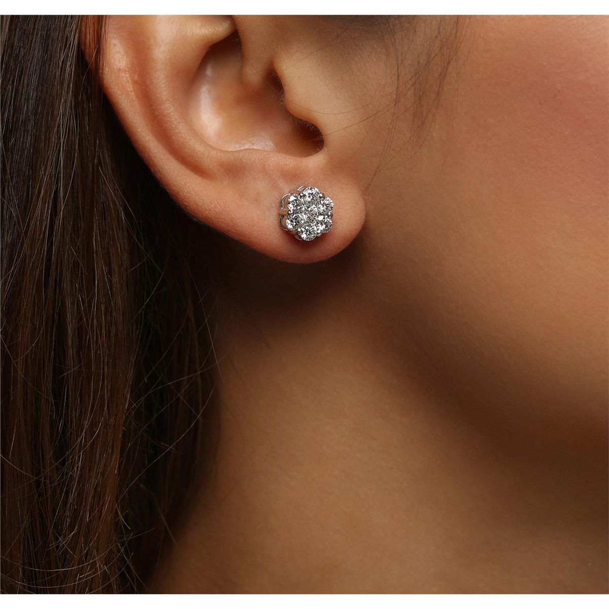 One pair electronically tested 14KT white gold ladies combination cast & assembled stud earrings with friction posts with a bright polish finish. Condition is new. Identified with markings of "14K". Containing: Two prong set round brilliant cut diamonds, measuring 4.00 - 4.00 x 2.40mm (depth est.) approximate. Total Weight of 2 Stones = 0.47ct. Clarity: SI-2. Color: J, Cut is Good. Twelve prong set round brilliant cut diamonds, measuring 3.00 - 3.00 x 1.80mm (depth est.) approximate. Total Weight of 12 Stones = 1.19ct. Clarity: SI-1 to SI-2. Color: J, Cut is Good. All diamonds are graded in the mounting, unless otherwise stated. Total Weight of Diamonds 1.65ct. Total Weight of Earrings 3.10 grams.