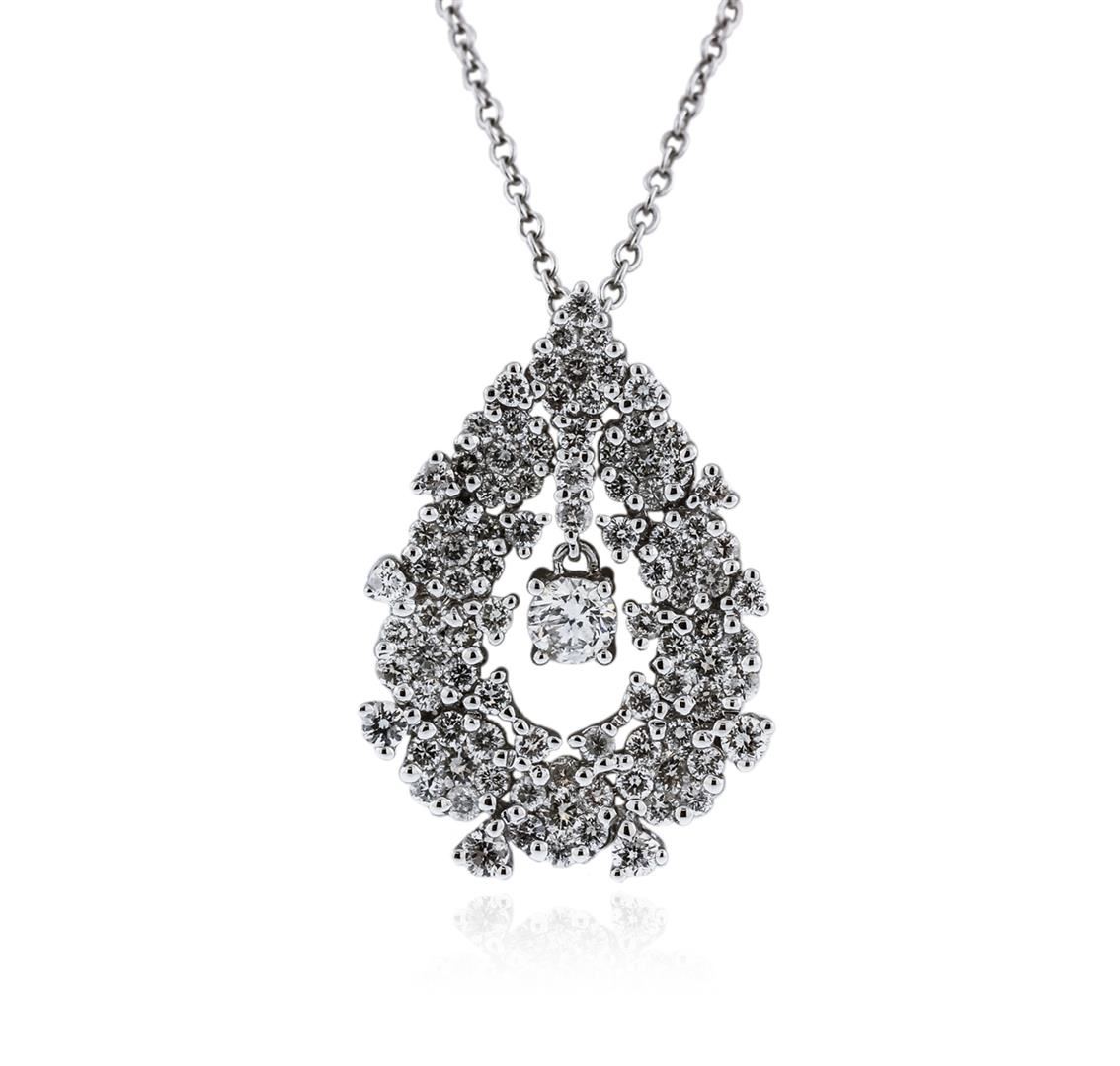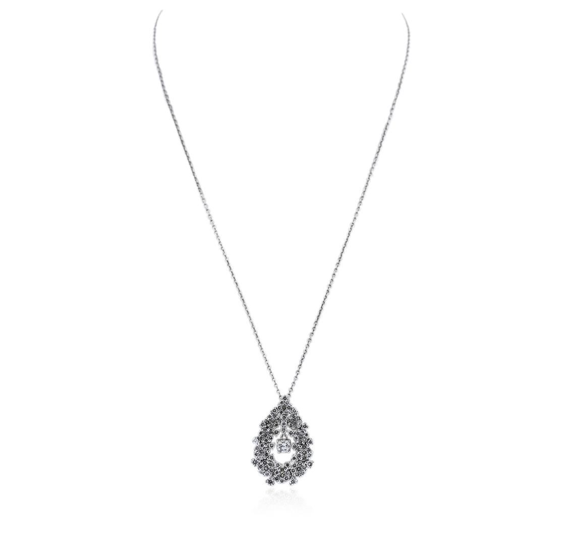 One pendant with chain featuring: 14KT white gold weighing 3.10 grams containing one round diamond center weighing 0.20 carats and diamonds weighing a total of 1.47 carats.