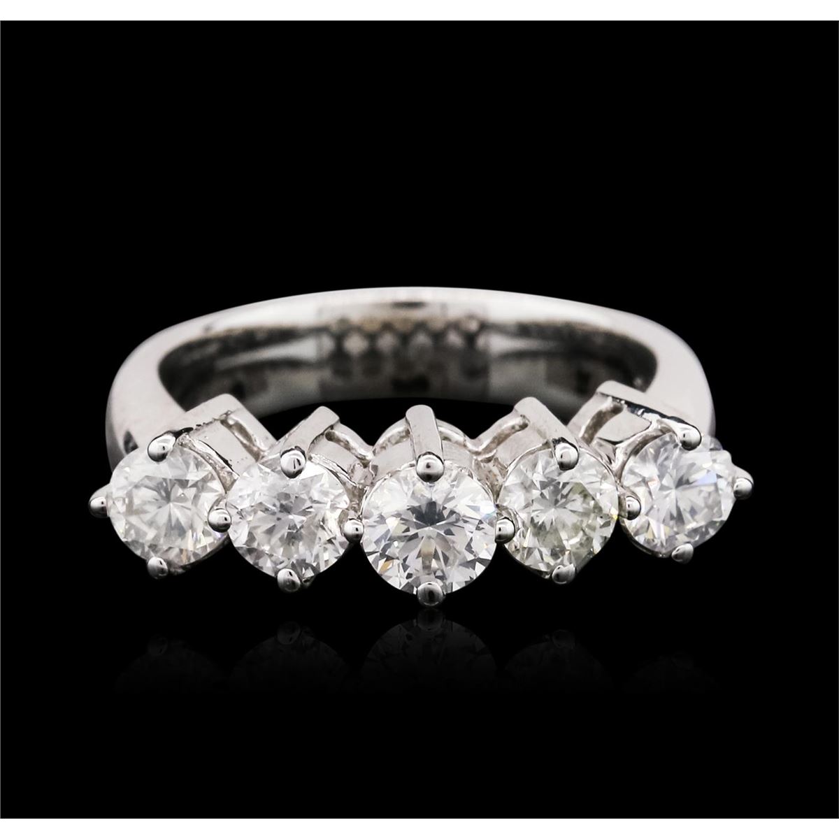 One electronically tested 14KT white gold ladies combination cast & assembled diamond ring with a bright polish finish. Identified with markings of "14K". Condition is new. Containing: Five prong set round brilliant cut diamonds, measuring 4.50 - 4.50 x 2.70mm (depth est.) approximate total weight of 5 Stones = 1.67ct. Clarity: SI-2 to I-1. Color: I - J, Cut is Good. All diamonds are graded in the mounting, unless otherwise stated. Total Weight of Diamonds 1.67ct. Total Weight of Ring 5.70 grams. GGL Appraised at $7,310.00.