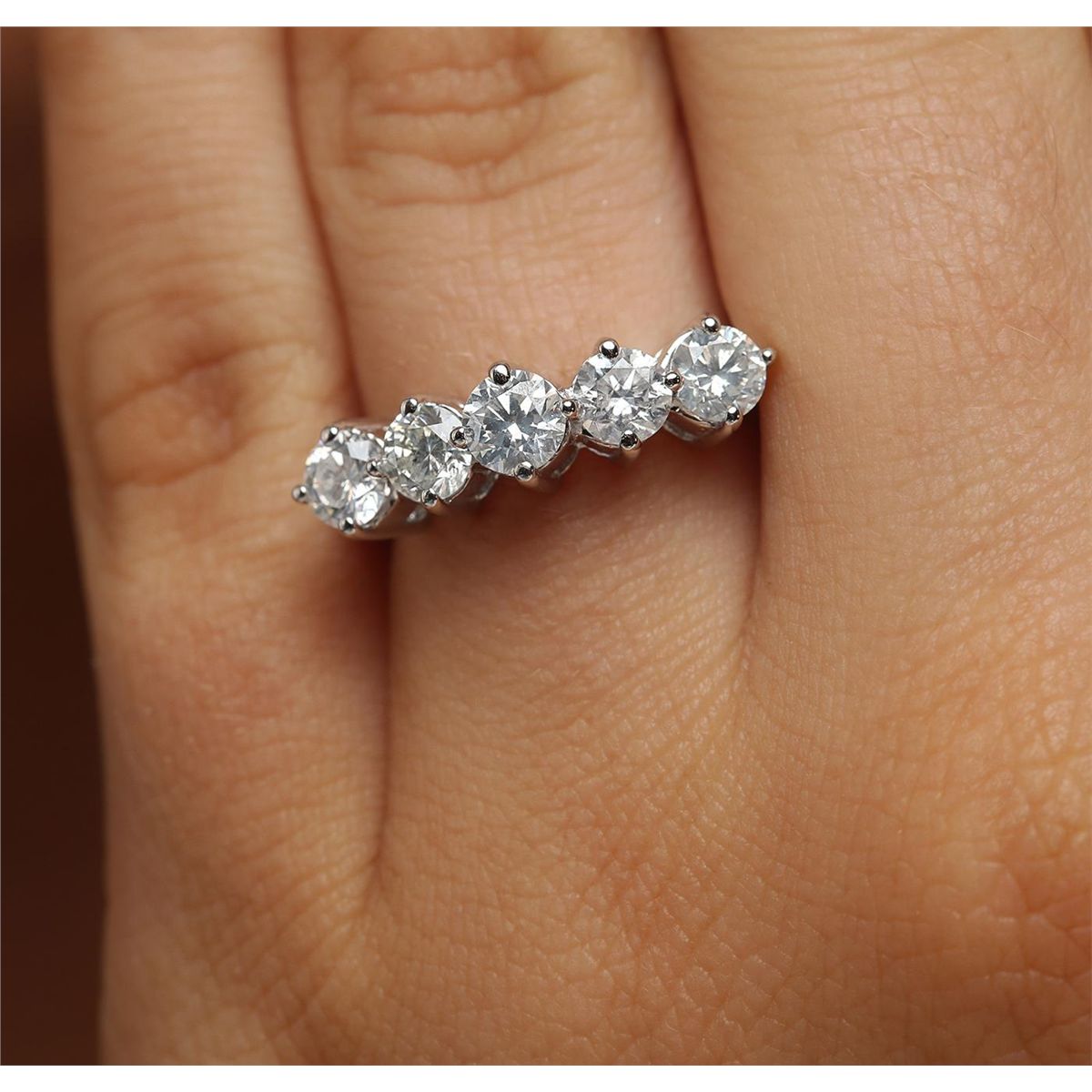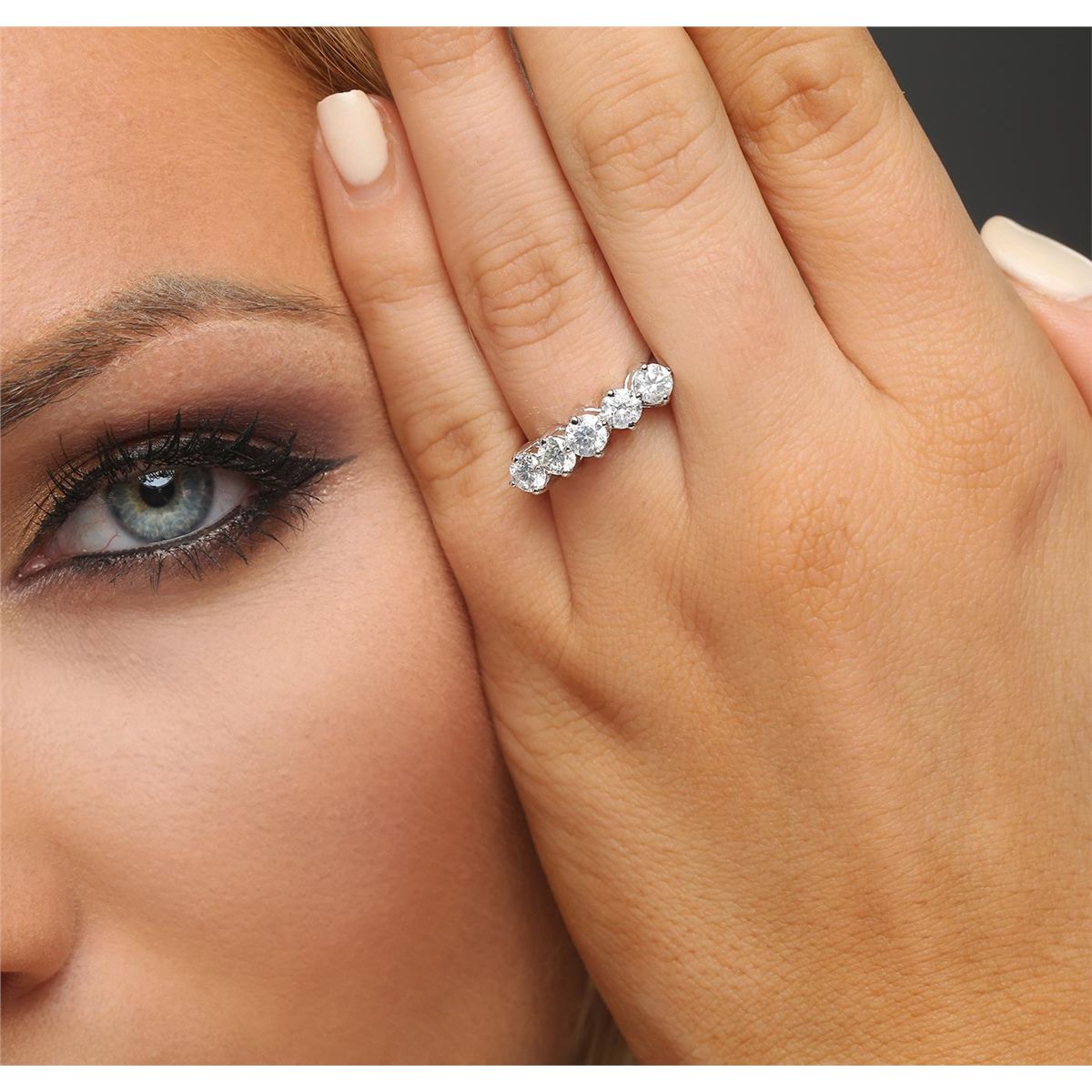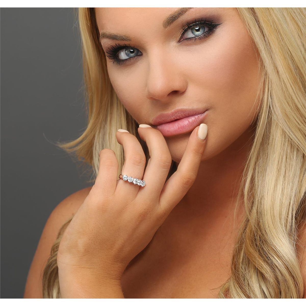 One electronically tested 14KT white gold ladies combination cast & assembled diamond ring with a bright polish finish. Identified with markings of "14K". Condition is new. Containing: Five prong set round brilliant cut diamonds, measuring 4.50 - 4.50 x 2.70mm (depth est.) approximate total weight of 5 Stones = 1.67ct. Clarity: SI-2 to I-1. Color: I - J, Cut is Good. All diamonds are graded in the mounting, unless otherwise stated. Total Weight of Diamonds 1.67ct. Total Weight of Ring 5.70 grams. GGL Appraised at $7,310.00.